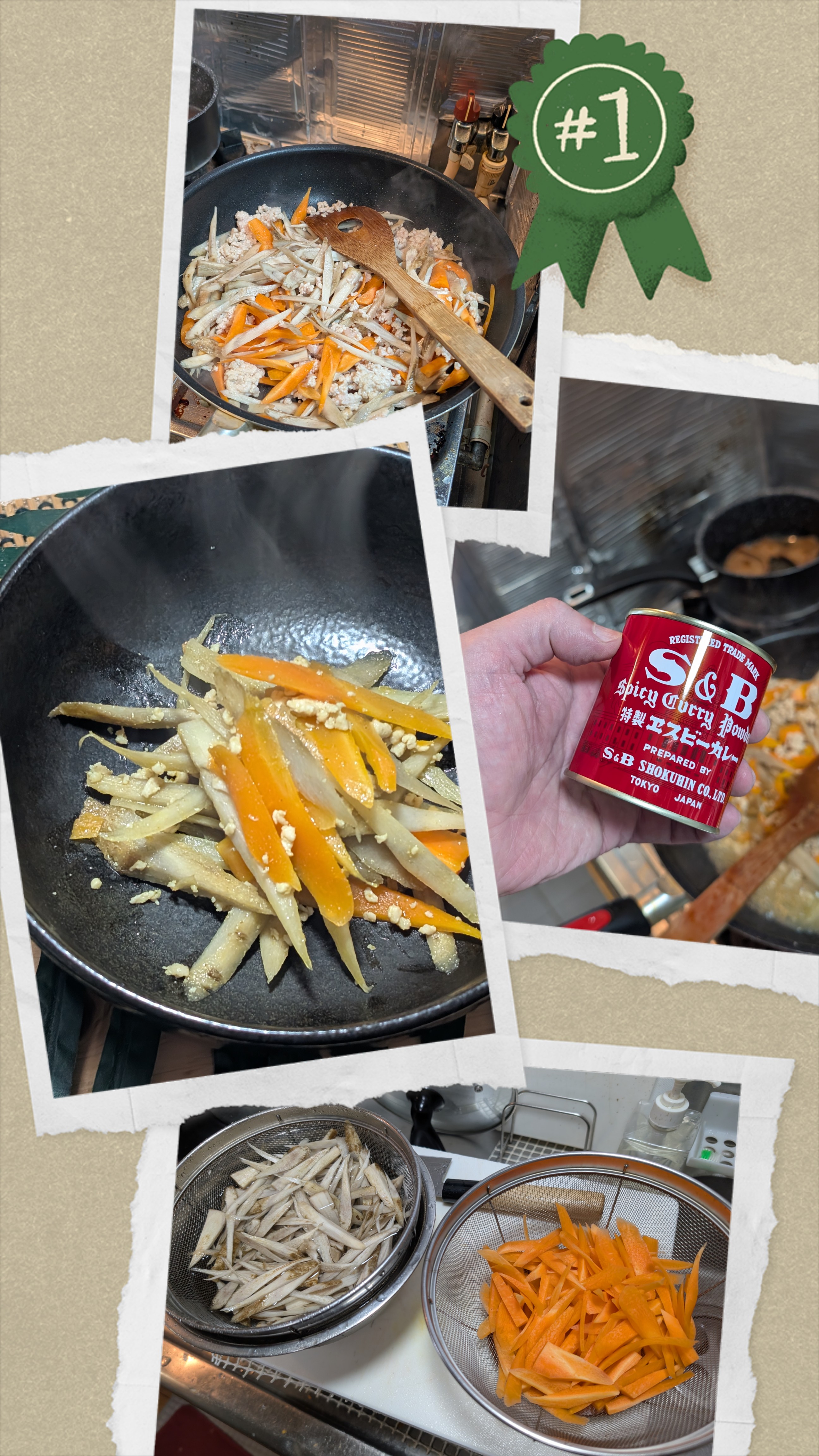 お久しぶりにきんぴらごぼう普通にスーパーで購入、後🐔むね挽肉もちょっとごぼうが硬いかも🤔で、他のお料理にも使えるので干し椎茸を一晩😴で戻してサラダ油とごま油で🐔むね挽肉を炒めてささがきしたごぼうと人参🥕を投入全体に油を馴染ませて椎茸の戻し汁を少々投入、1/3浸る程度白だしと薄口醤油で味付け、煮焼きする様な感じで水分をある程度飛ばしていきます。ごぼうが柔らかく仕上がりますよ。仕上げにカレー粉少々でカレー風味のきんぴらごぼうの完成です✨うっすらカレー風味でイメージは蕎麦屋のカレー🍛な感じです✨で、、、椎茸戻しすぎたので水、酒、醤油、ザラメ糖でコトコト煮込んで結構煮たので色が濃いですが味は素材重視仕上げ