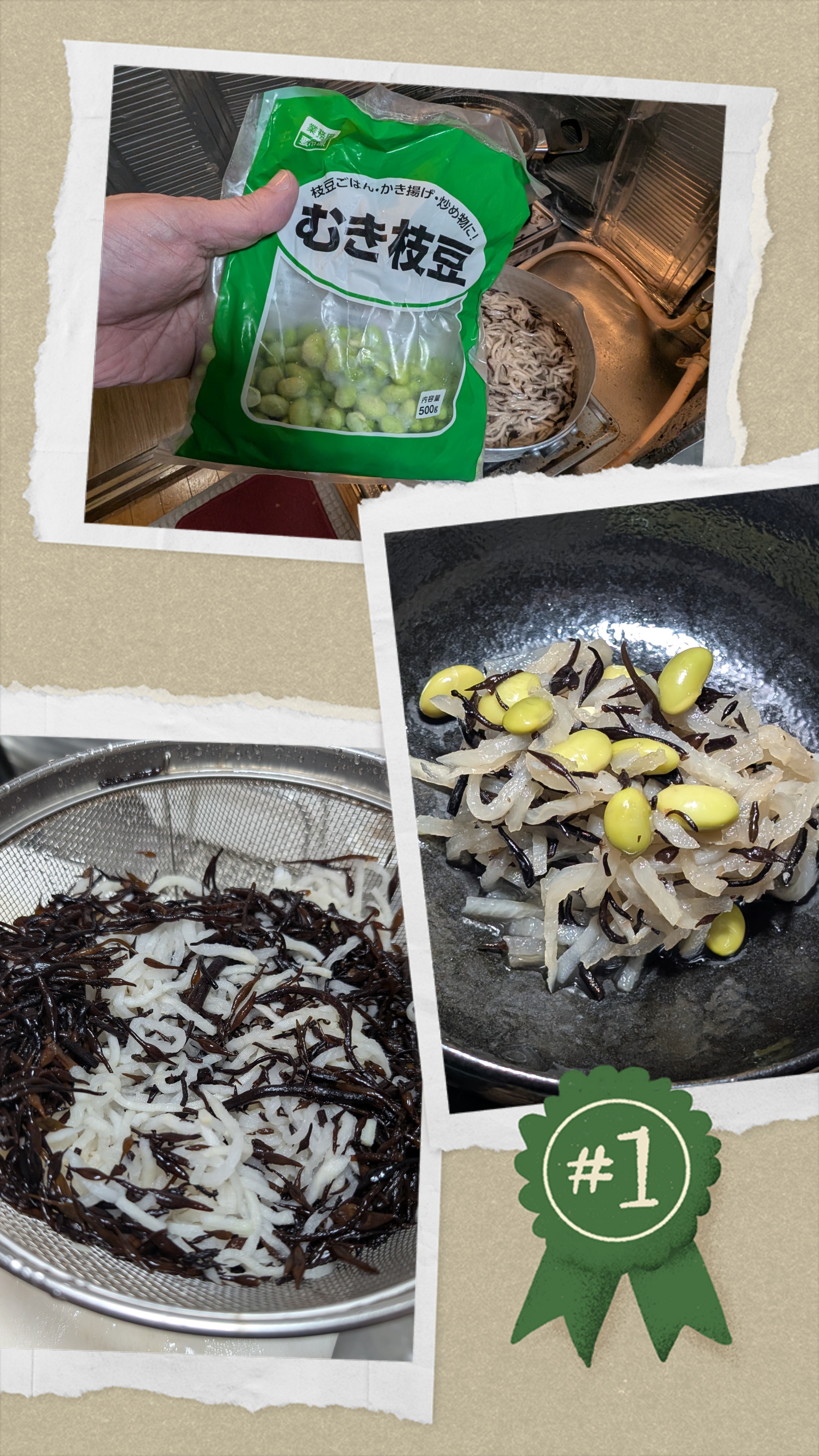 業務スーパー他、激安材料です✨業務スーパーの激安切り干し大根&ひじきを戻してお鍋に移して煮ていきます✨お手軽簡単BASEなので顆粒だし、鶏ガラ、上湯、中華 等で業務スーパーの激安冷凍枝豆🫛投入サクッと煮て激安材料で変わり種🤯中華🇨🇳風切り干し大根ひじき煮の完成です✨