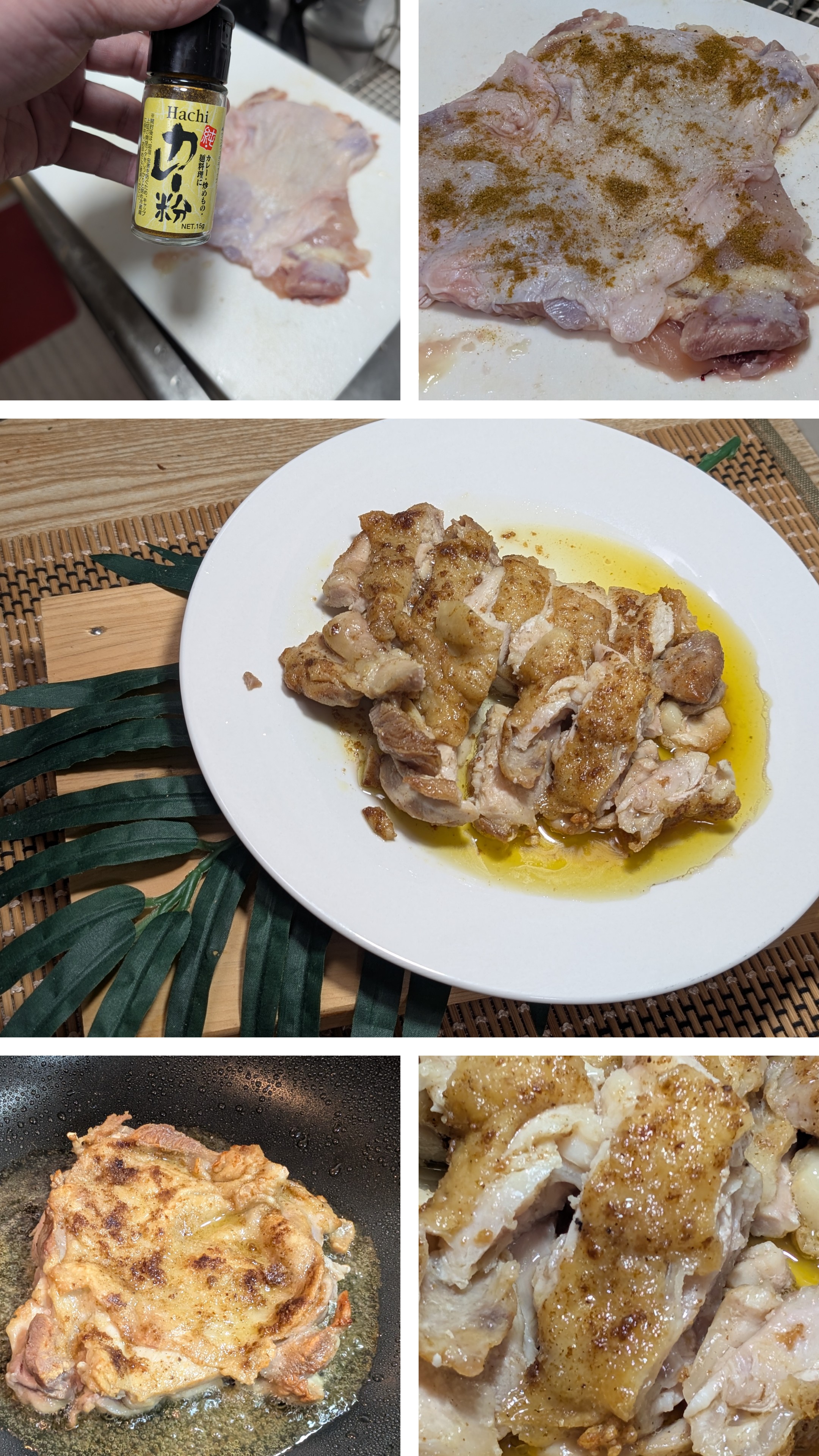 オッサンの冷凍庫常備品の🐔もも肉クッキング肉のハナマサで定期的に購入2kgブラジル🇧🇷産の鶏もも肉を小分け冷凍ストック😁常温解凍して開いて、塩コショウと業務スーパーの激安カレー粉を散布😜ちょっと強めにしっかり味付けちょっと多めのオリーブオイルで皮目から焼いてこんがりパリッと皮目が焼けたらちょっと火を中火強位で蓋して蒸らし焼き良き焼き上がり残ったオリーブオイルと肉汁にバター🧈を入れて一煮立て食べやすいようにカットして、バターソースかけて最近の物価高、、、しょうがないとして😭創意工夫で激安クッキング🥳なんちゃって🐔もも肉のバター🧈カレー🍛ソテーでした~😋お味は、、、想像通りの美味しゅうございます✨