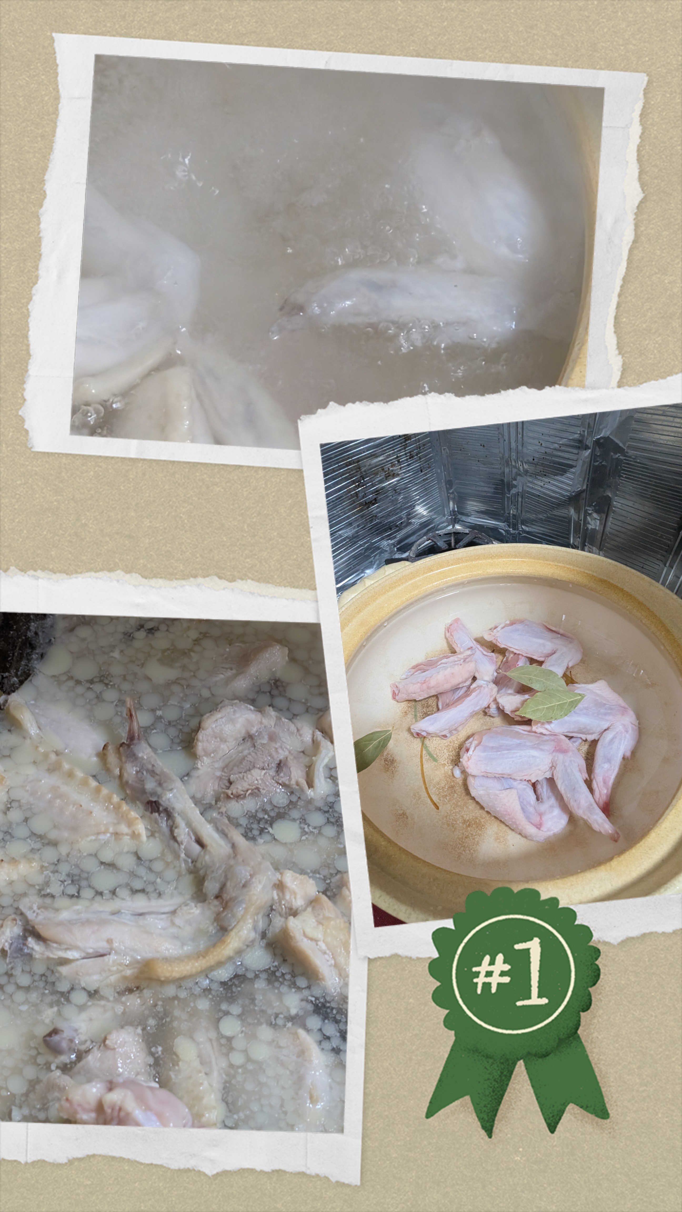 スーパーコラーゲンスープ💪近所のスーパーで2パックで¥500以下😲お安い材料で🥰土鍋で水煮していきます😤ほぼ水満タン強火🔥でガッツリ煮ていきます💪塩少々追加、アクは適度に取ります90分程煮込んで、半分程の水位鶏ももぶつ切り追加更にグツグツ40分程煮込んで水位は1/3以下に😲鶏油もたっぷり一晩寝かし😴ます🤗一晩冷蔵庫で😴、、、コラーゲンゼリーの完成です✨後は、鍋もよし僕は野菜たっぷりラーメン🍜作りました😋