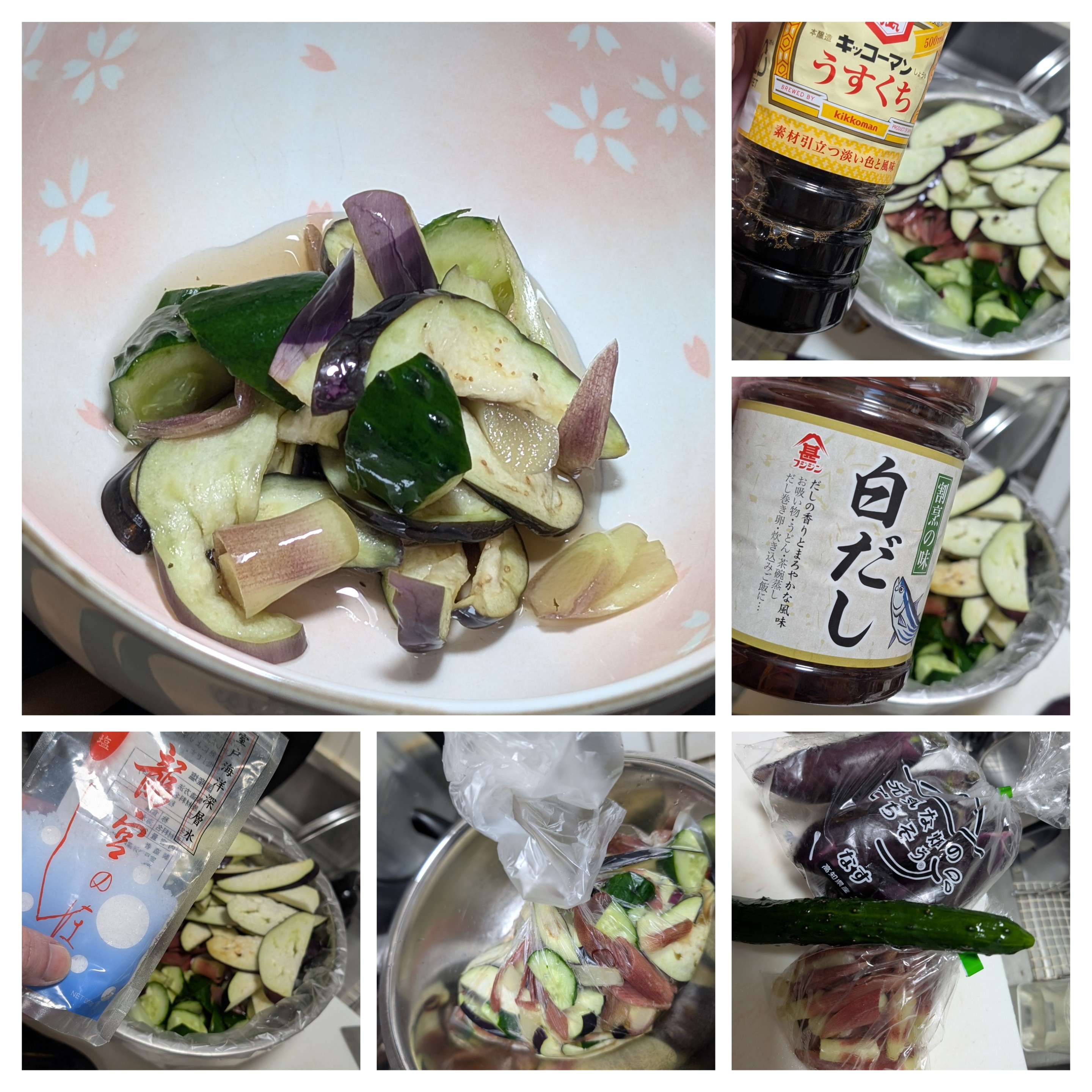 あっさり出汁漬物です✨いや〜🥒きゅうり¥38😲(2025/4/19近所のスーパー現在) 茗荷さん¥100最近、さっぱりサラダ系🥗浅漬好きなもんで、、、いつものよ〜うにビニール袋に気持ちちょろっと薄口醤油今回、白だし、顆粒のお好みでも大丈夫😁ここ大事かも🦆、、、食卓塩以外で😰粗塩とか色々ありますお塩って🤗お塩って「美味しい」んですよ🥳食卓塩はしょっぱいだけで「味」が無い😱ここで浸かる半量程の水投入😲簡易浅漬の素の完成です✨ギュッと縛って冷蔵庫で一晩🛌仕上げにゆかりを少々足して😁夏野菜のサラダ🥗出汁漬物の完成です✨出汁香るなので塩分控えめでも大丈夫😋