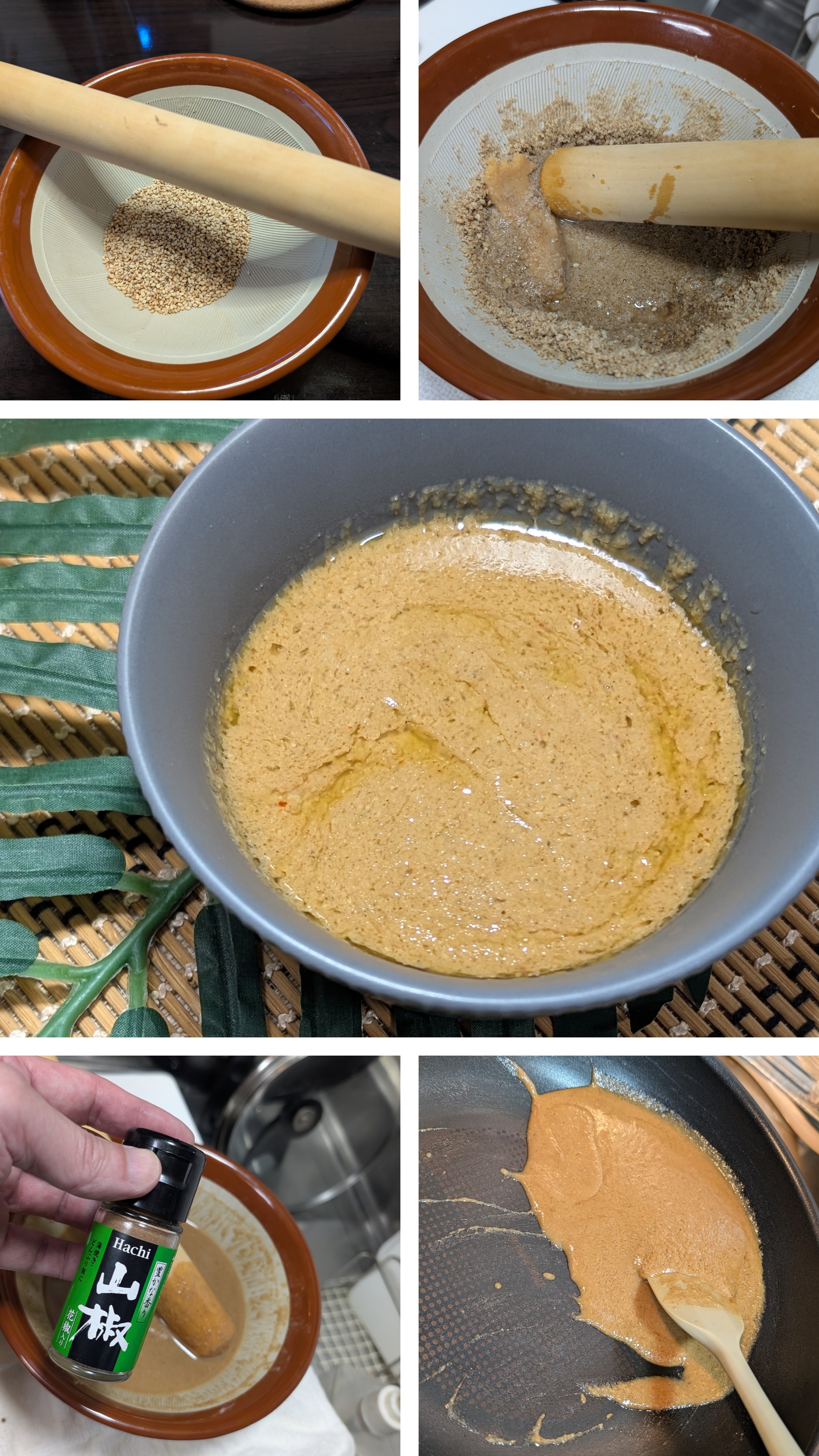 急に、、、🐷しゃぶしゃぶが食べたくなってお家🏠に白ごまとすり鉢が、、、じゃあすりましょう😤♬ゴマを〜スリましょう 陽気にゴマをね〜😜ホイホイ、、、陽気なオッサンです✨スリとネリの間位で初🔰胡麻ダレなので、、、ま〜見様見真似➕️想像で、、、醤油、味噌󠄀、味醂、酒、焼酎、水を🫡スリスリして味見、甘さとちょっと塩味が欲しくて粗塩と黒糖を投入何か違うで、胡麻油ときび砂糖追加辛味が欲しい😲で山椒、一味唐辛子追加ちょっと白だしも🤗取り敢えず出来たけど、、、何か、、、コクが、、、ちょいと🔥入れて詰めよう😎軽く🔥を入れて濃厚オッサンのオリジナル胡麻ダレの完成です✨いつもの如く、、、思いつきクッキングなので二度と出来ません🥳明日は🐷しゃぶしゃぶ😋