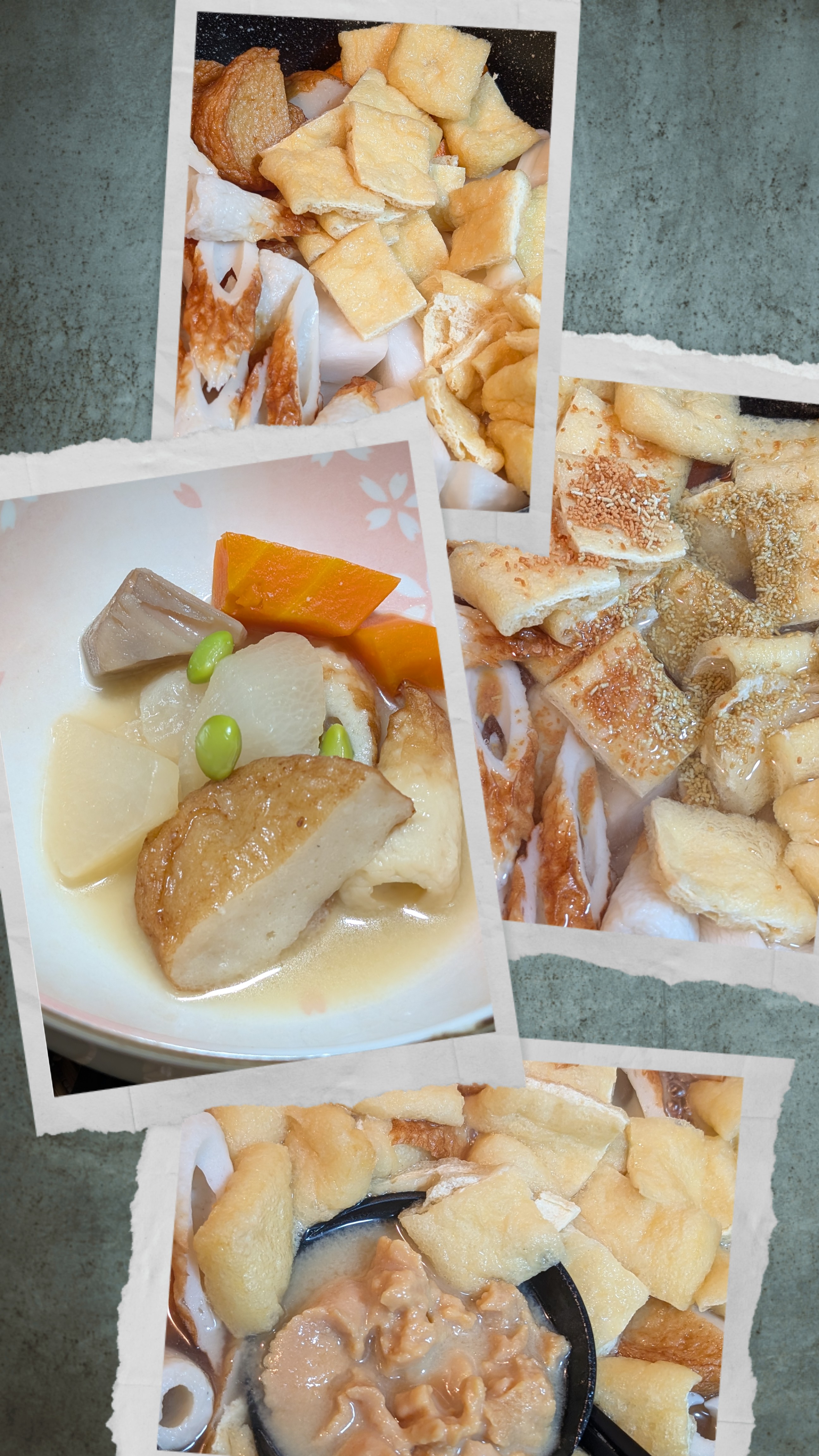大根と人参が、、、冷蔵庫にいた😲冷凍保存の油揚げと冷凍蓮根もあったので煮物だなと、、、スーパーに🚲️でちくわとさつま揚げ調達水を張って、顆粒だし「あご」と「こんぶ」で煮ていくだけ沸騰してきたら白味噌追加グツグツしてきたらちょいと火🔥を弱めて落し蓋をして更にお好み加減まで煮込んで茶飯なので、お家🏠にあった冷凍枝豆🫛追加ありそうで🤔なさそうな🤔、、、味噌󠄀で煮物作ってみた😋