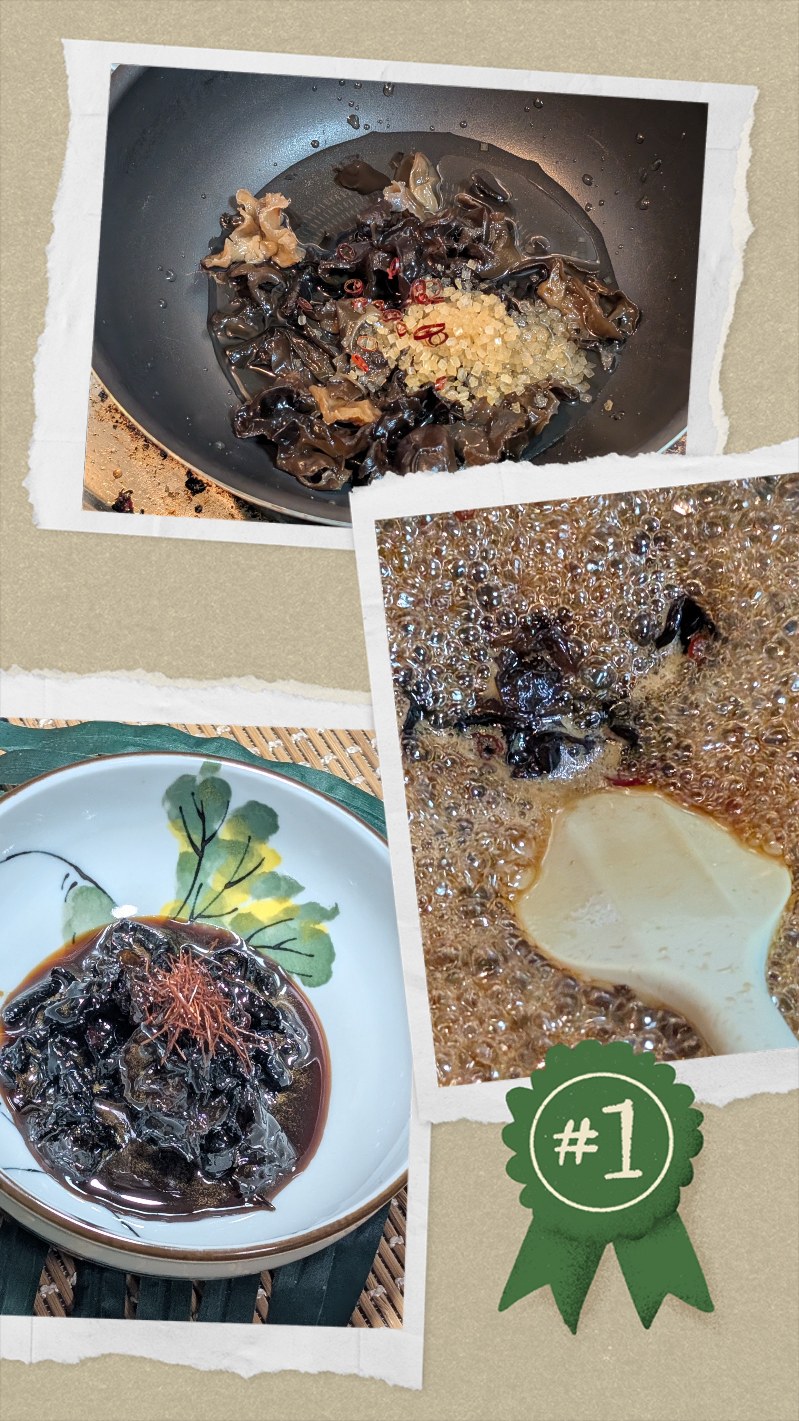 業務スーパーの激安 乾燥木耳です✨まずは一手間、戻しながら良く洗います、ちょっと洗うとこんなに濁る😰でも、この一手間で🎊鍋に戻した木耳投入、テフロン加工鍋がおすすめです水、酒、味醂、ザラメ糖、唐辛子🌶️で煮込んでいきます✨強火🔥で混ぜながら一気に😤10分程度でグツグツに、焦がさないように😅煮詰まったら完成ピカピカ黒光り🎊以前、小豆島のつくだ煮屋さんの木耳の佃煮が美味しくて再現🫡🍚🍻🍶が進みすぎる1品です✨