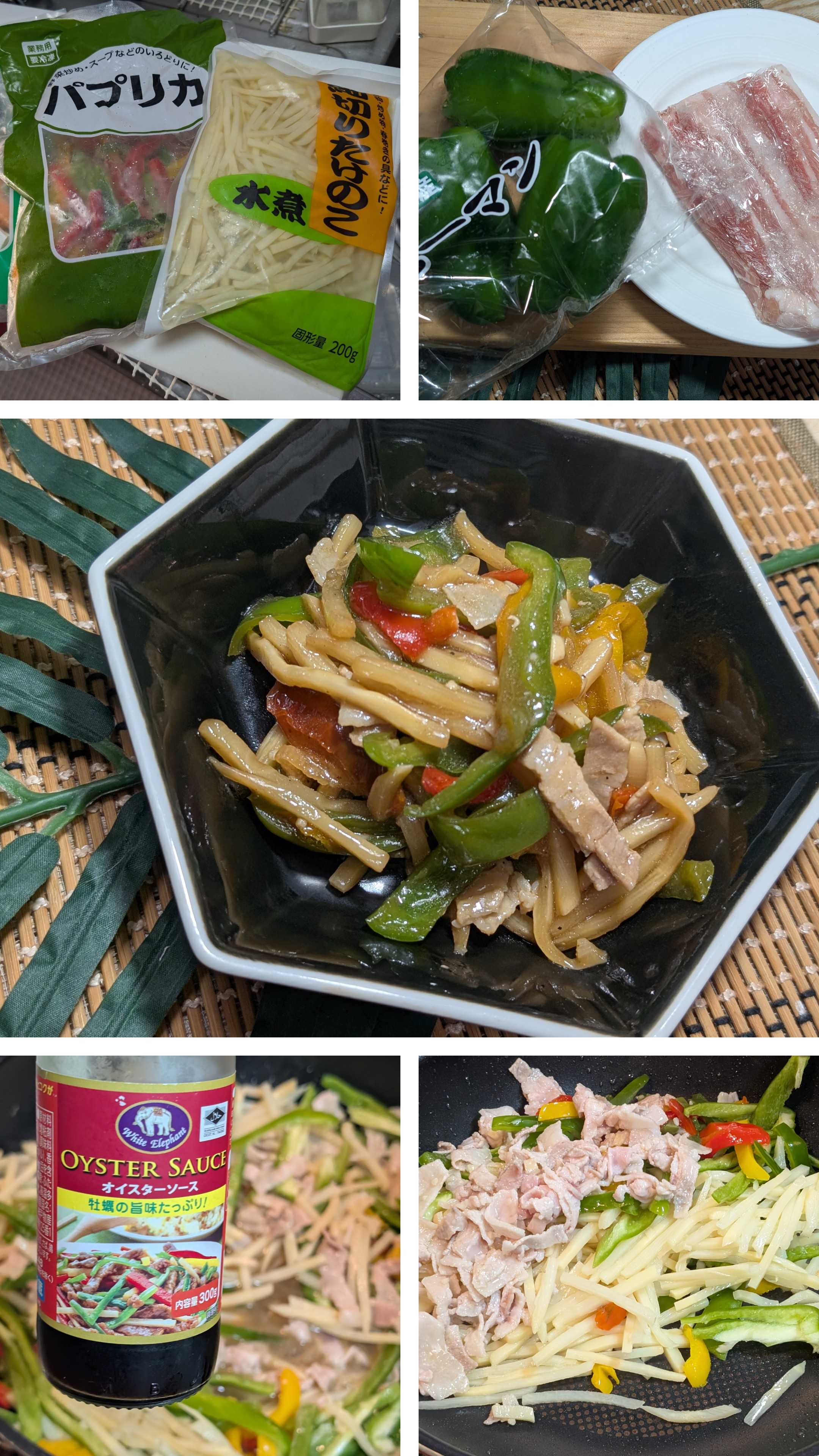 ほぼほぼ業務スーパー材料です✨業務スーパーの冷凍パプリカ🫑と冷蔵たけのこ水煮🎍こちらはスーパーのピーマン🫑と、肉のハナマサでまとめ買い小分けの🐷豚肉胡麻油とサラダ油にニンニク🧄&生姜🫚の香りを🐷豚肉投入、サッと炒めてたけのこ、ピーマン、パプリカ投入油絡ませて、取り敢えず味つけ😤酒、醤油、味醂、塩コショウでうっすらやっぱこれでしょう😁オイスターソースこちらも業務スーパーの激安👛ちょいとピリッが欲しくて、、、山椒さん登場こちらも業務スーパー仕上げに水溶き片栗粉でトロミをつけてテリテリクッキング💡激安食材で美味しい「青椒肉絲」の完成です✨創意工夫で「生」と「冷凍」と「チルド」上手く使っていきましょう😋
