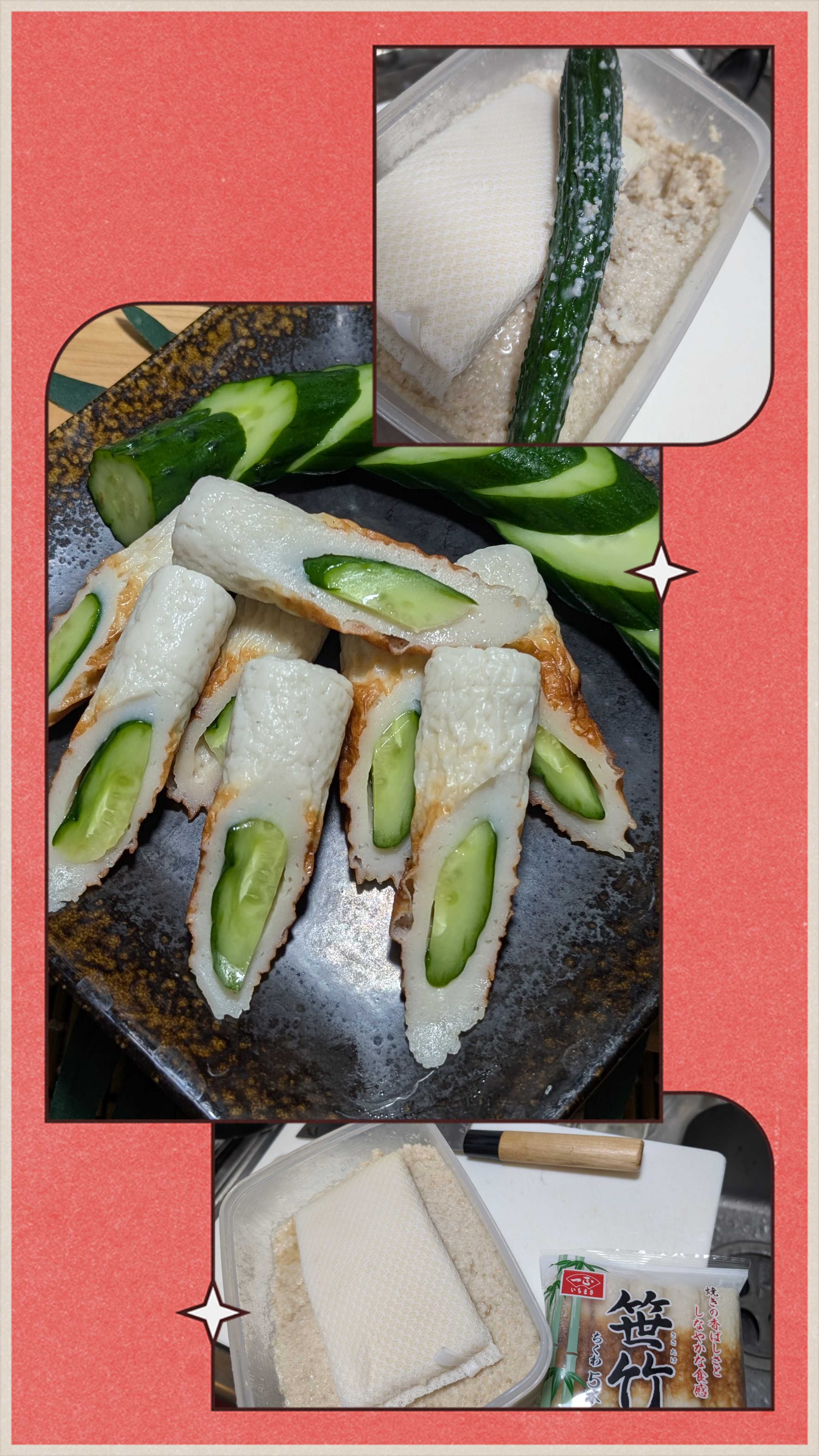 ちくわが目に入って激安ちくわとお家🏠の三五八床一晩漬けやきゅうり🥒ちょっと塩味+で美味しいお塩盛り付けて完成です✨サッパリちくきゅー🥒いかがでしょうか😋