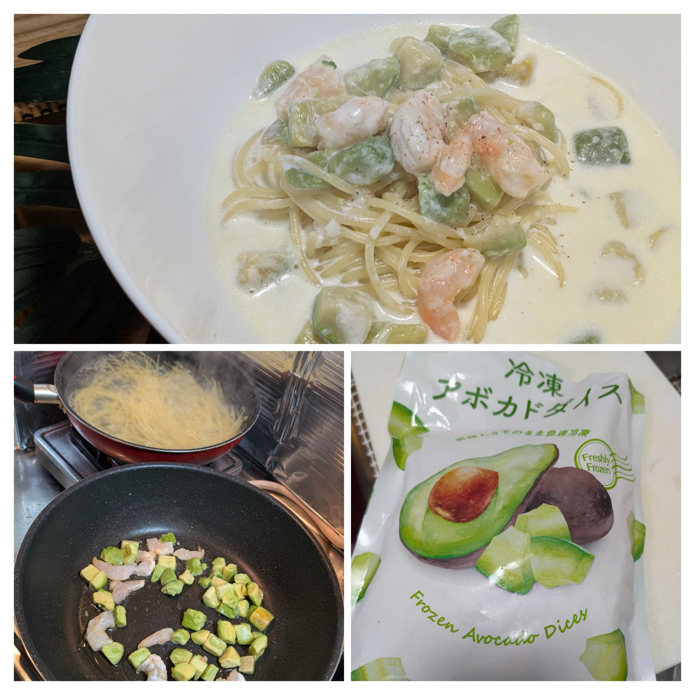 激安材料で本格的🤔クリームスパゲッティ🍝業務スーパーで購入、激安冷凍アボカド🥑冷凍アボカド🥑と海老🦐を解凍チーズは2種、パルメザンチーズとピザチーズ🧀塩味強めのお湯を沸かして、オリーブオイルにニンニク🧄入れて加熱🔥タイミング見て同時進行今回は牛乳のみで、味付けは、塩胡椒、貝系顆粒だしスパゲッティが良い感じになったので、チーズ投入、よく混ぜてスパゲッティ投入、しっかり加熱🔥して激安冷凍食材で「本格的」、、、風😜海老🦐アボカド🥑のチーズ🧀 クリームスパゲッティ🍝の完成です✨