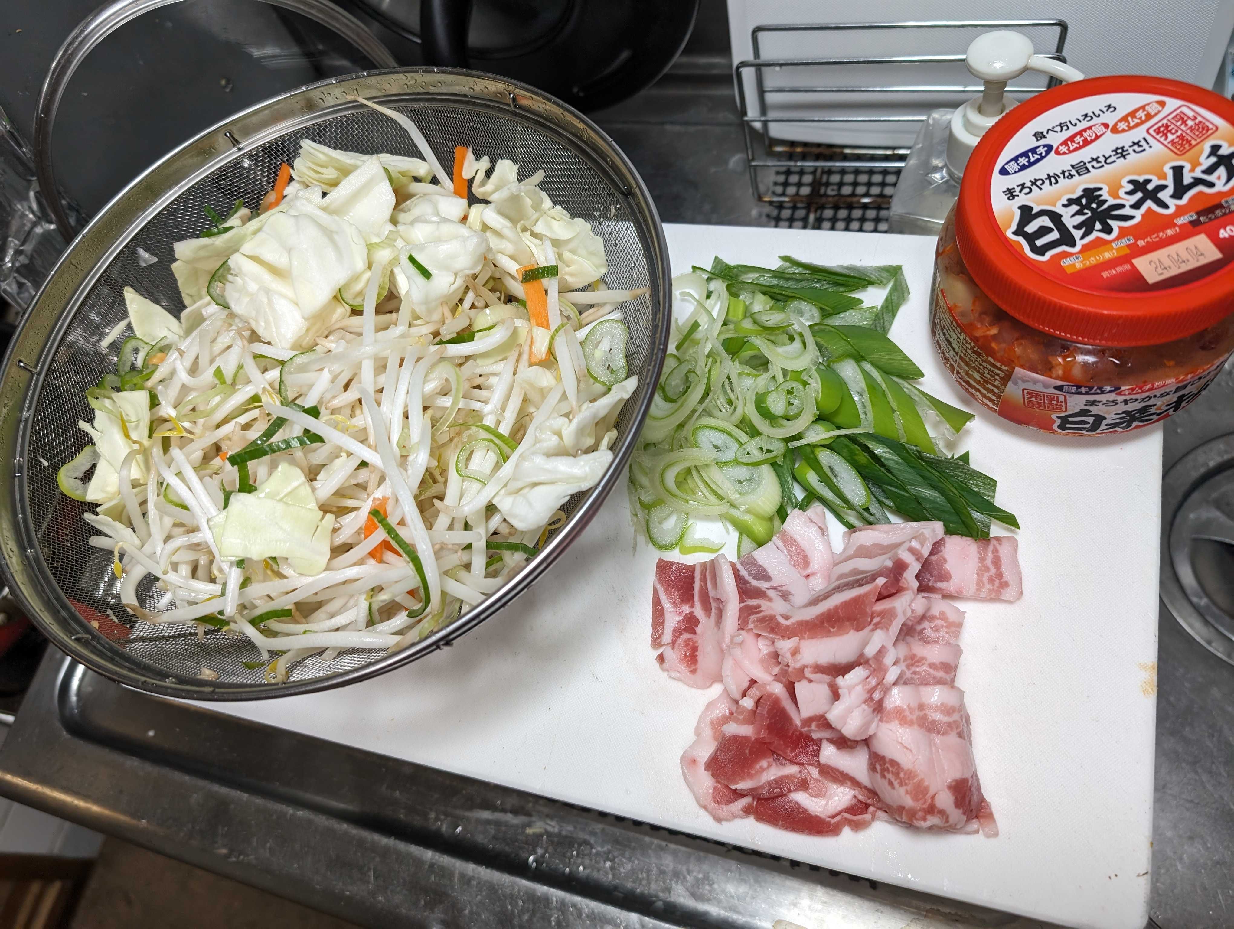 スーパーで売っている、もやしミックスと豚🐷肉を準備