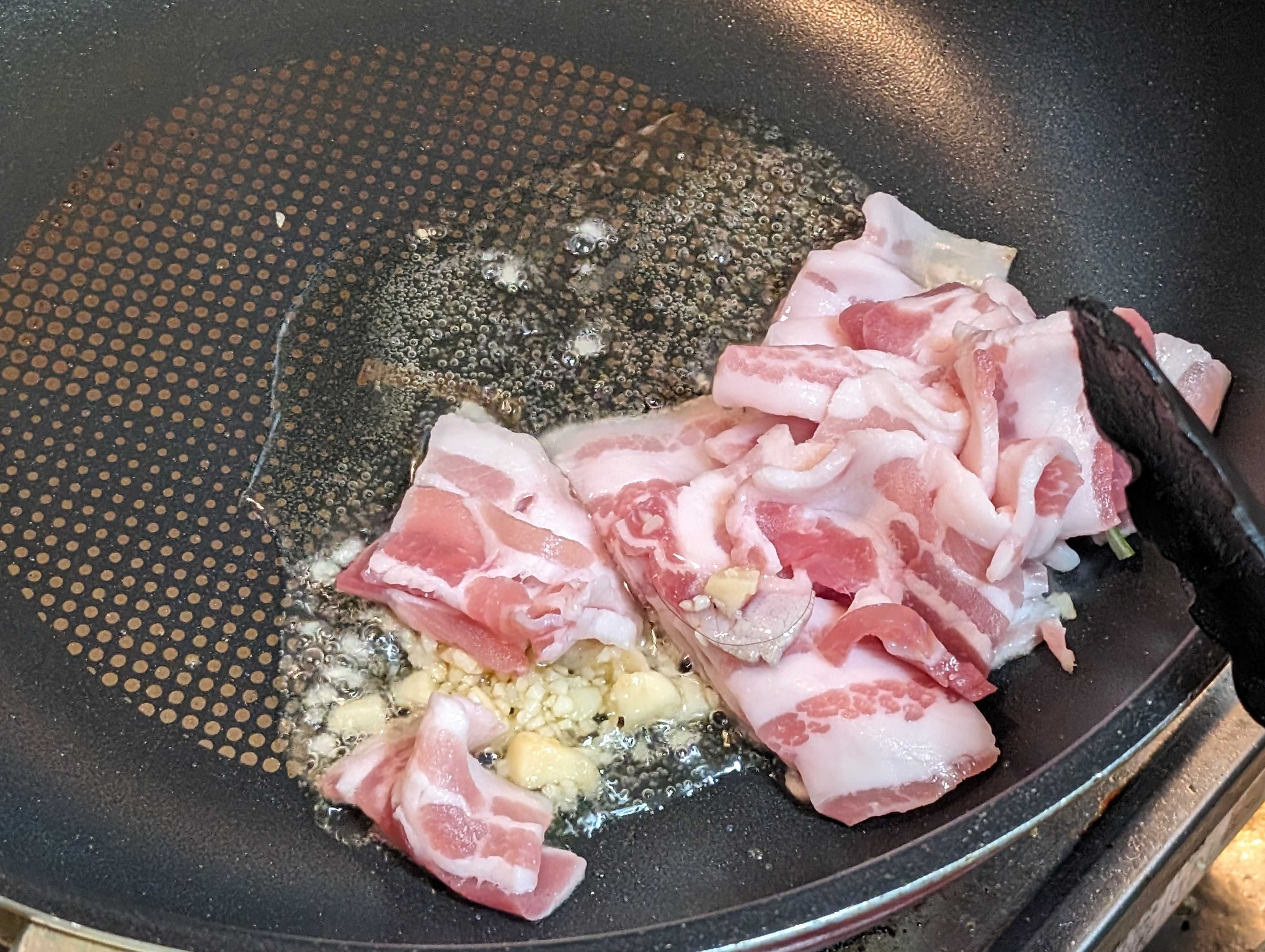スタミナパワーアップと思い、にんにくと豚肉を軽く炒めて