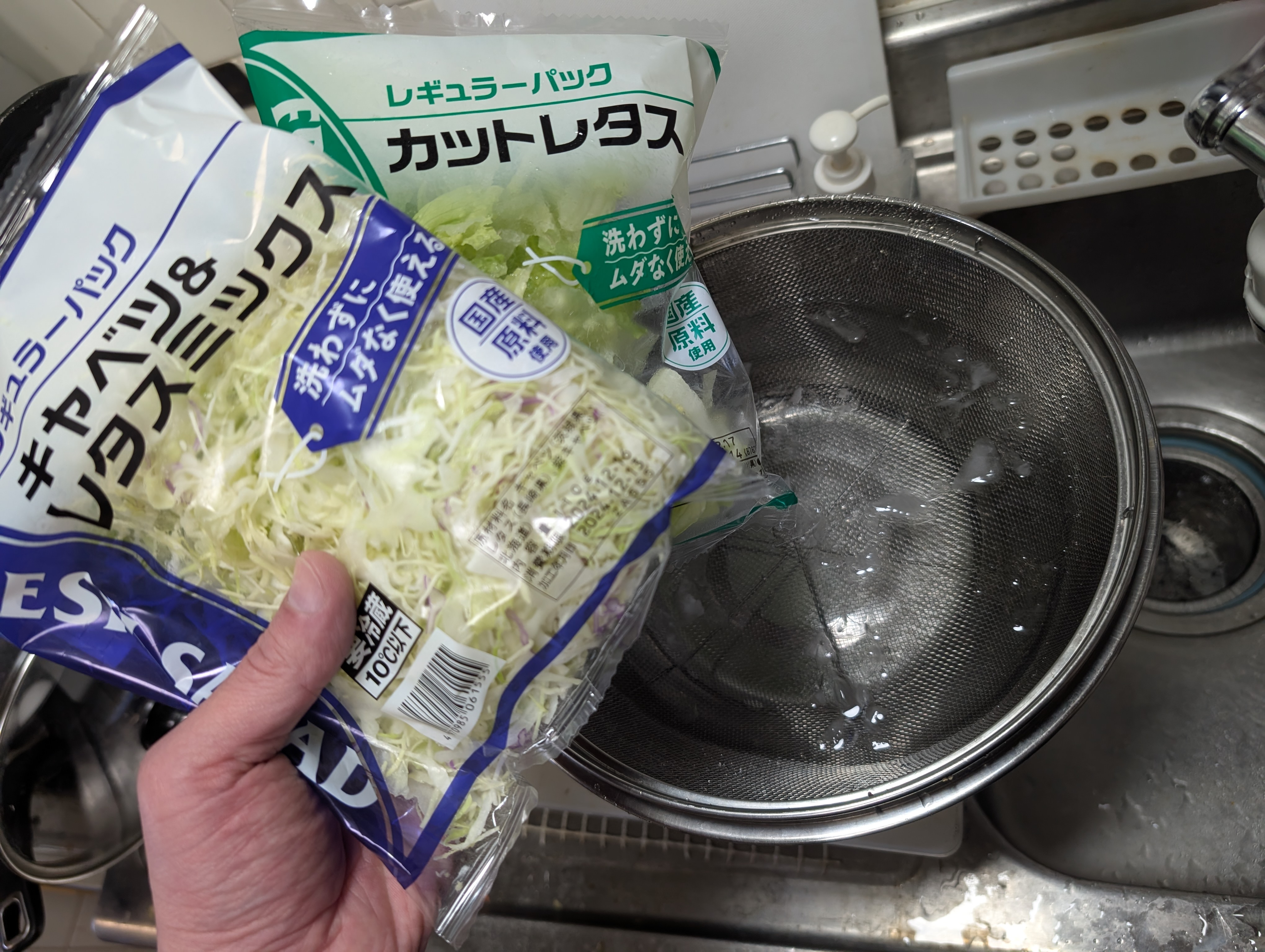 キャベツとレタスのカット野菜袋があった、、、確か、、、¥100ローソンだったかなぁ🤔、、、微妙