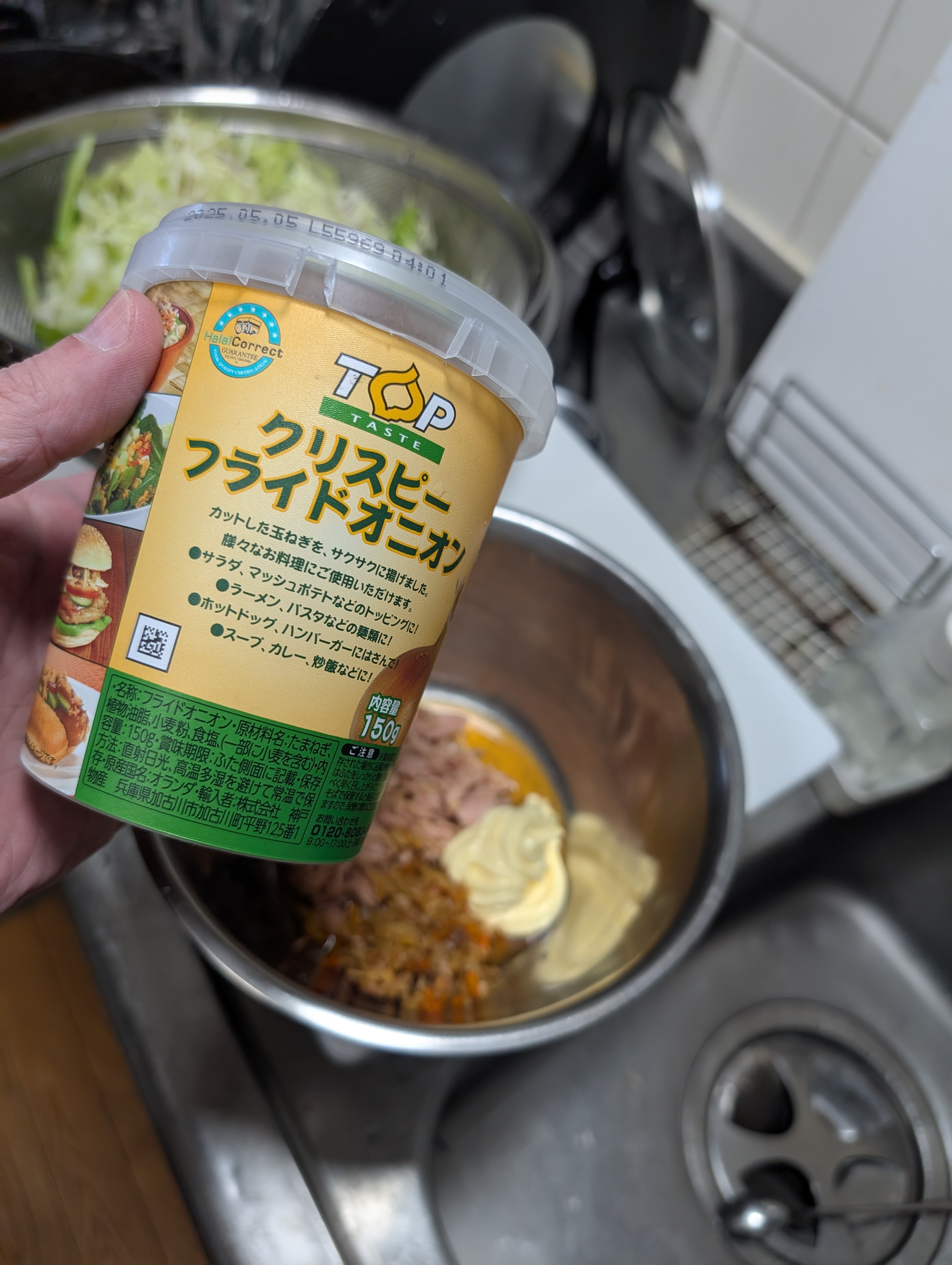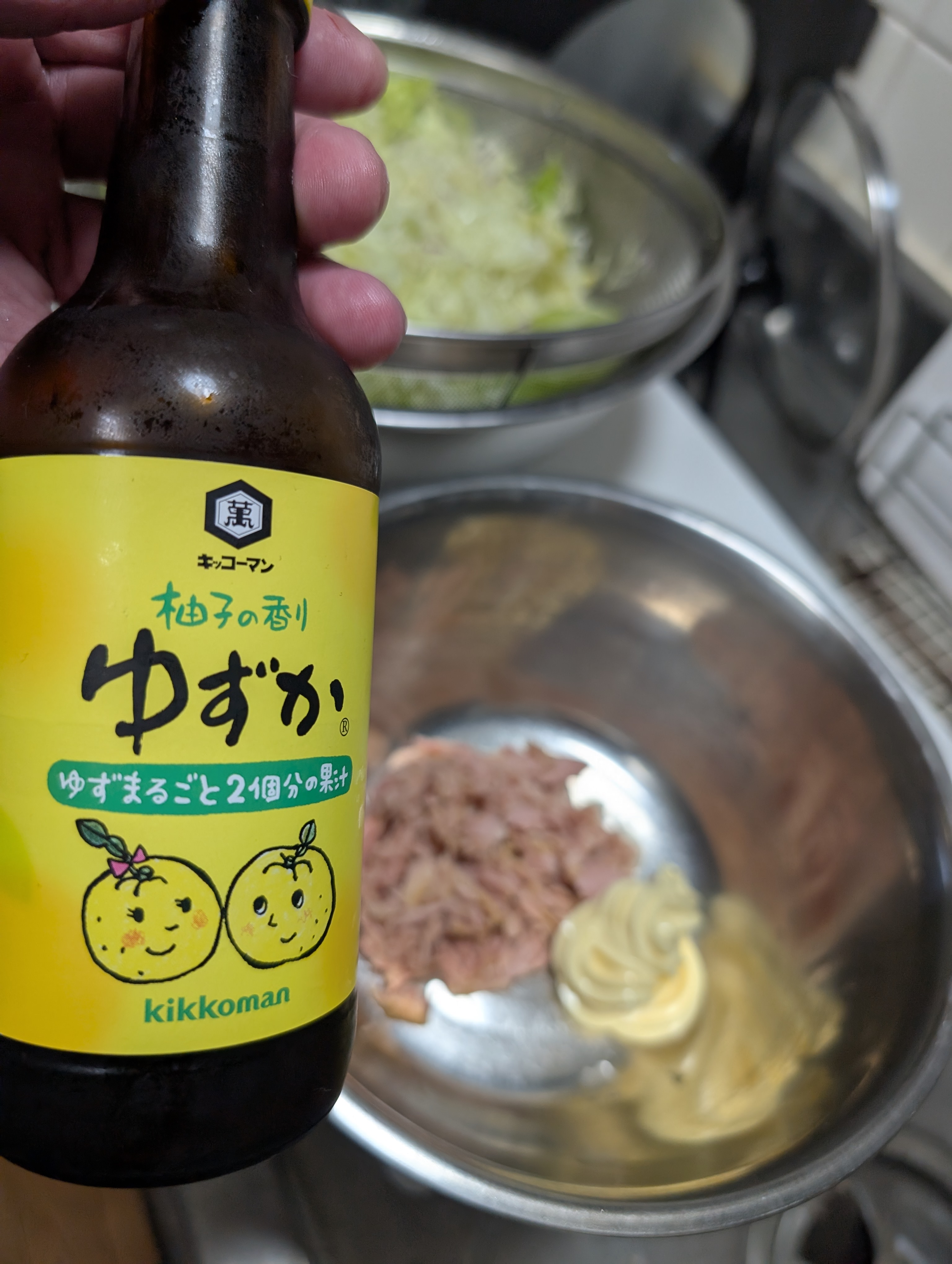 ボウルにツナ缶、マヨネーズ、柚子ポン酢