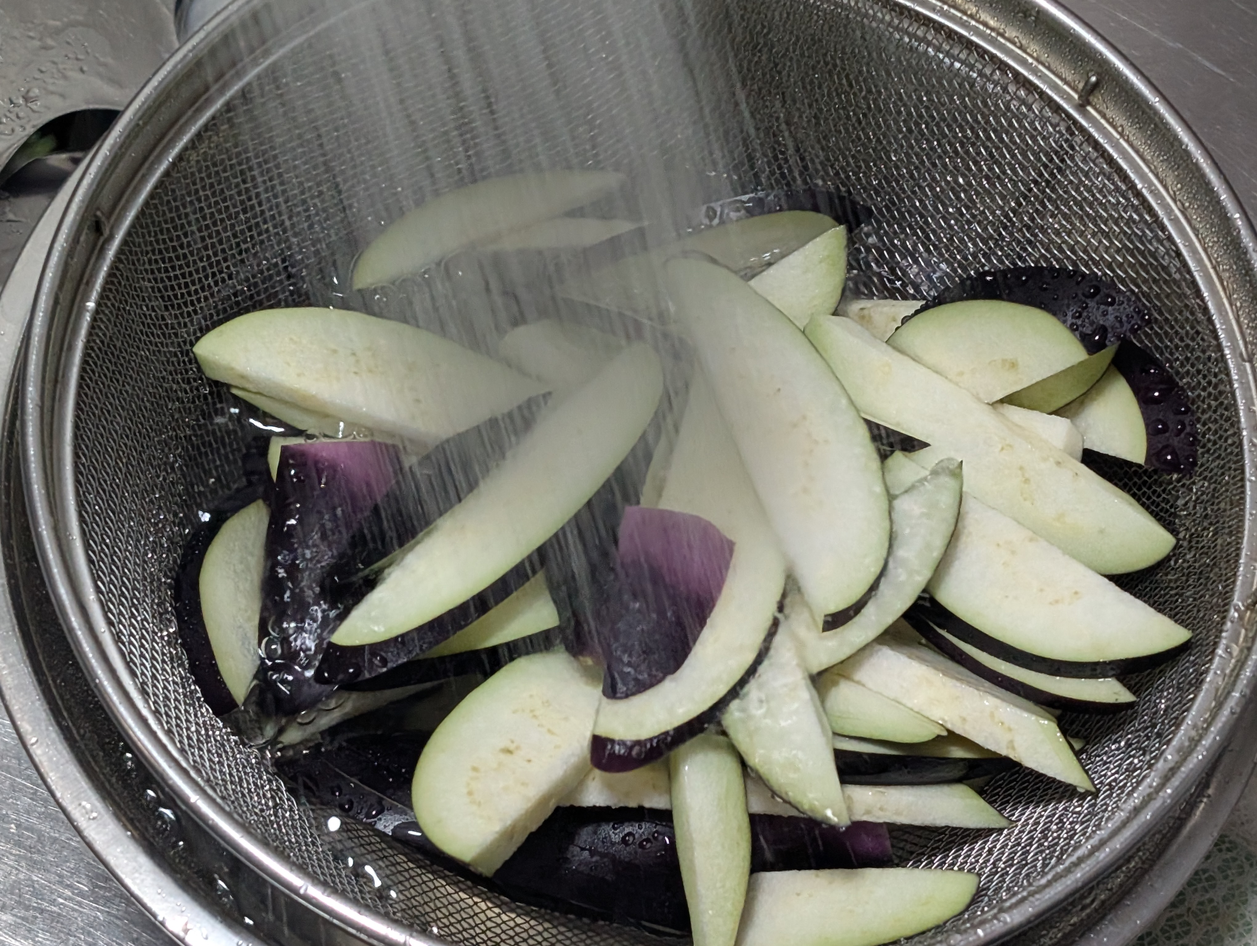 なす🍆は水にさらしてアク抜き5分程度で良いかと