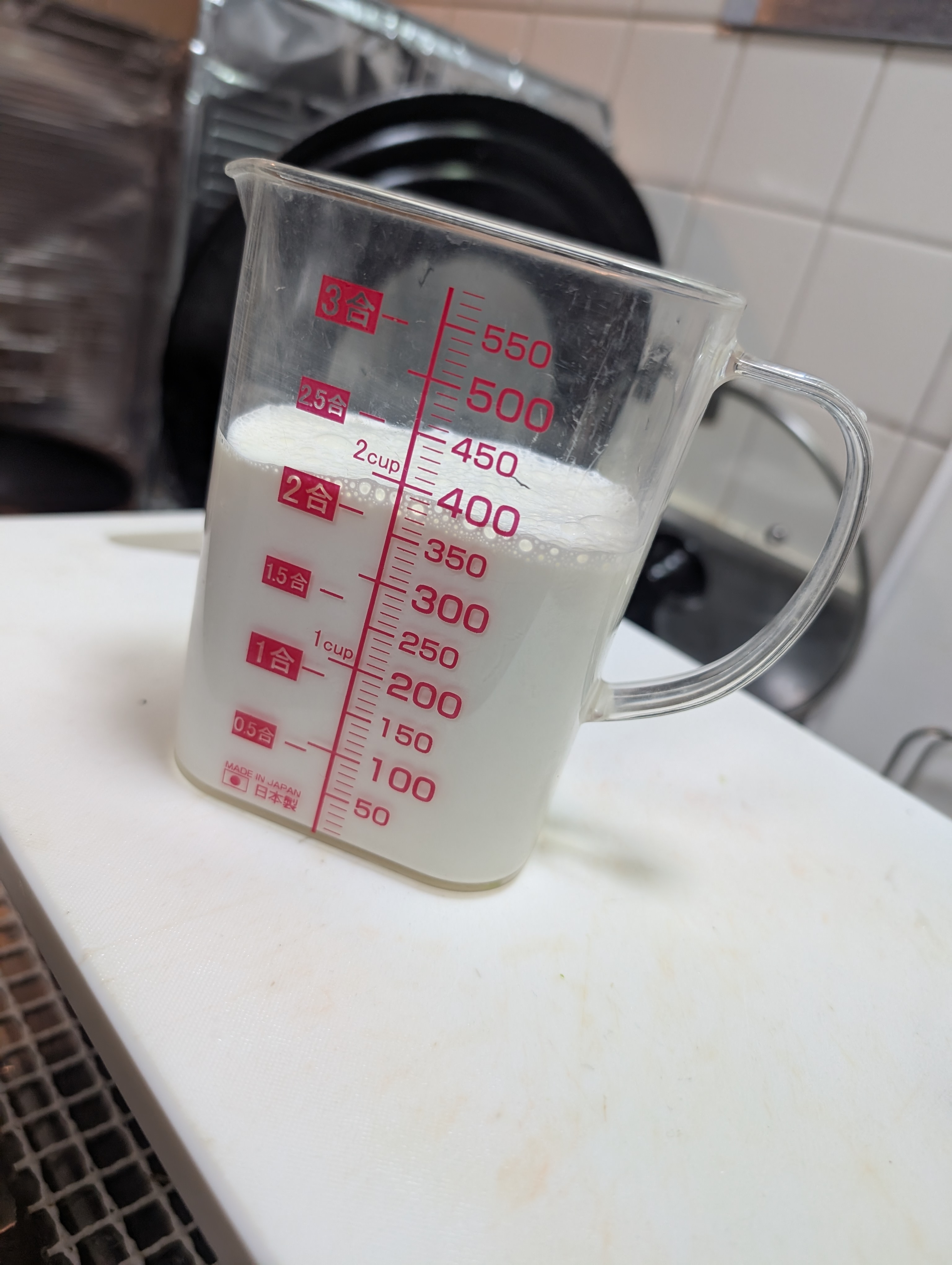割合は 生クリーム100cc 牛乳300cc 粉ゼラチン4g、、、位