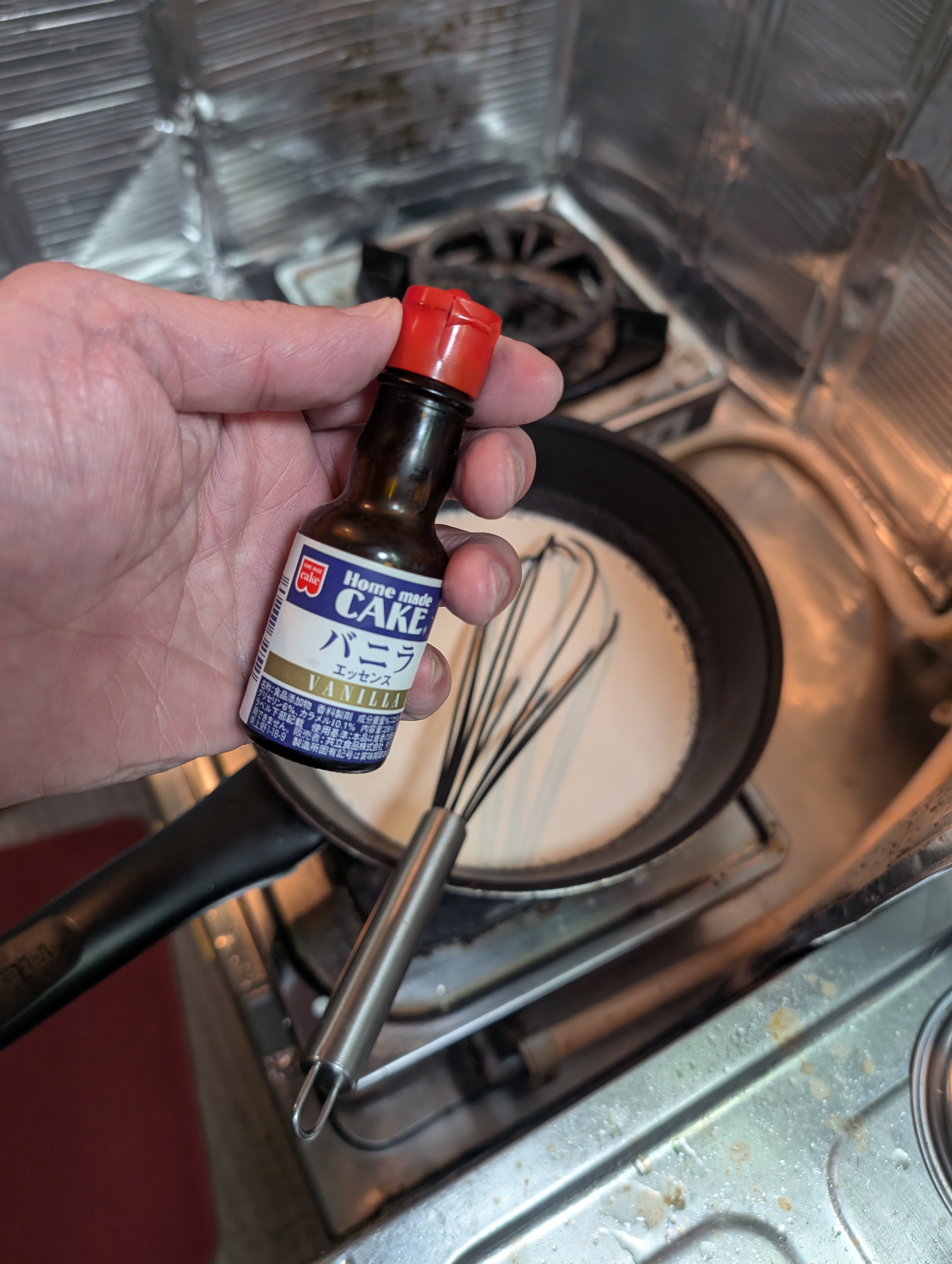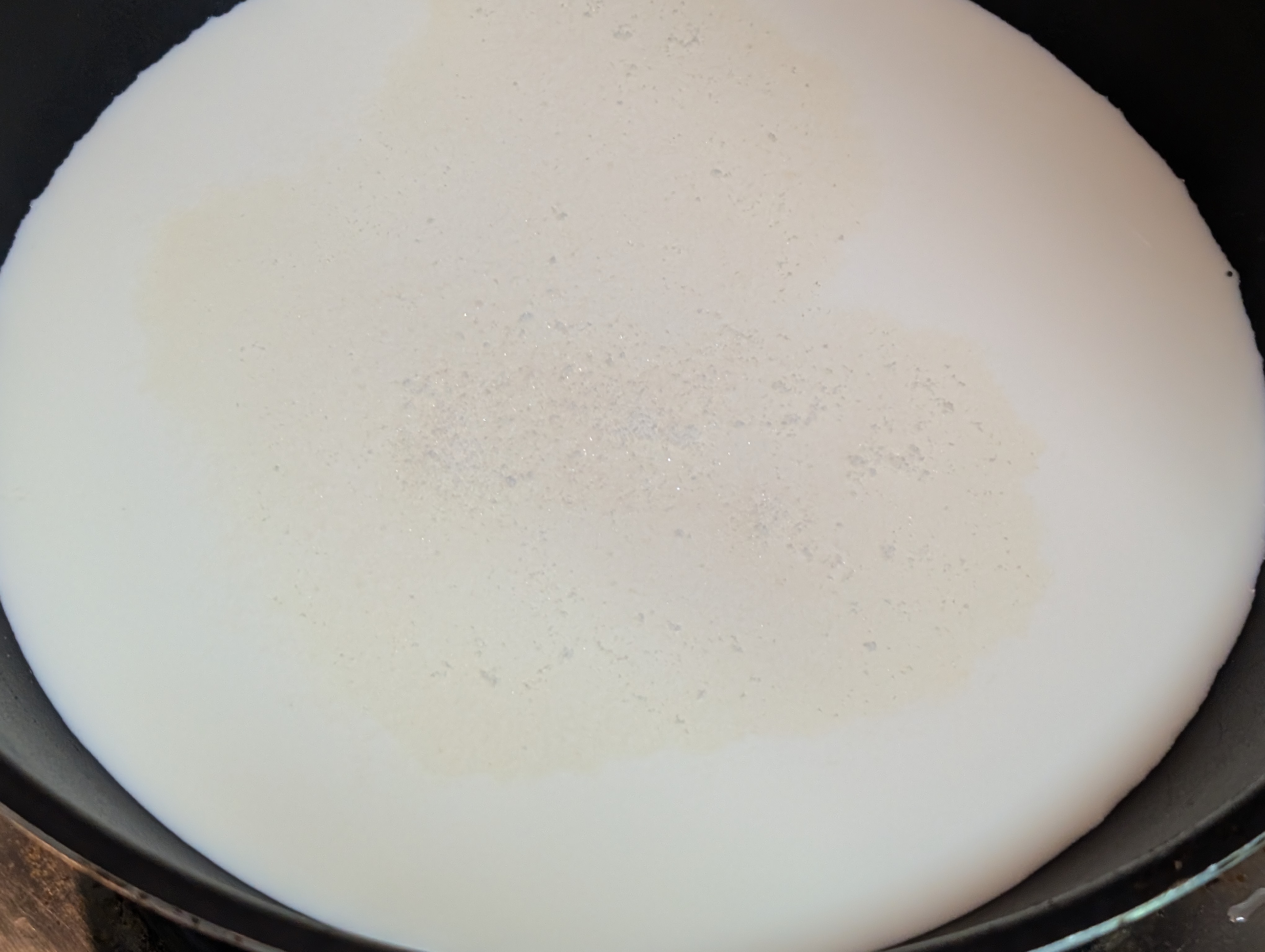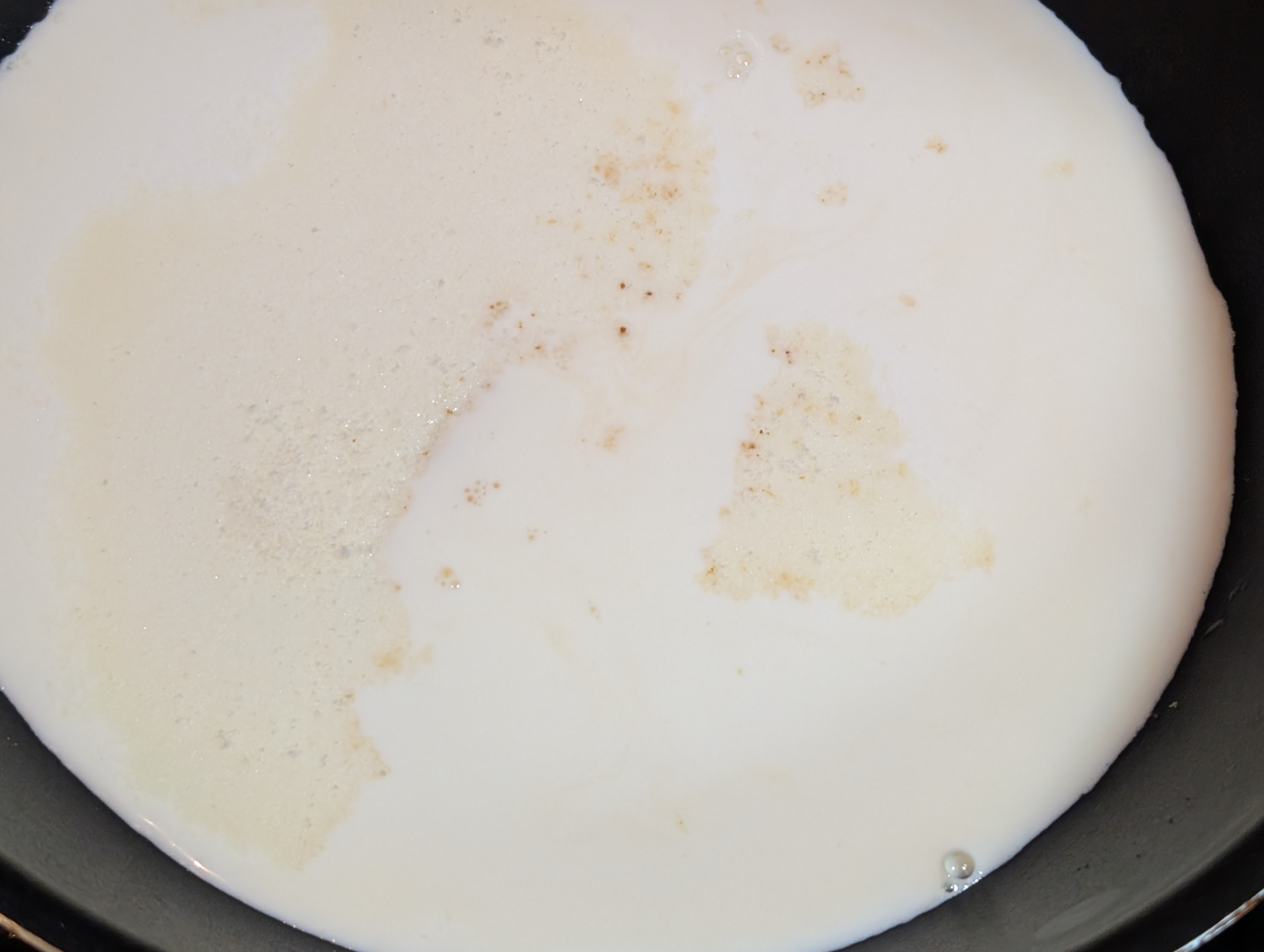 温めながら砂糖系も投入、今回は黒糖、きび砂糖で「和🇯🇵」温めながらだまにならないように混ぜながら😤