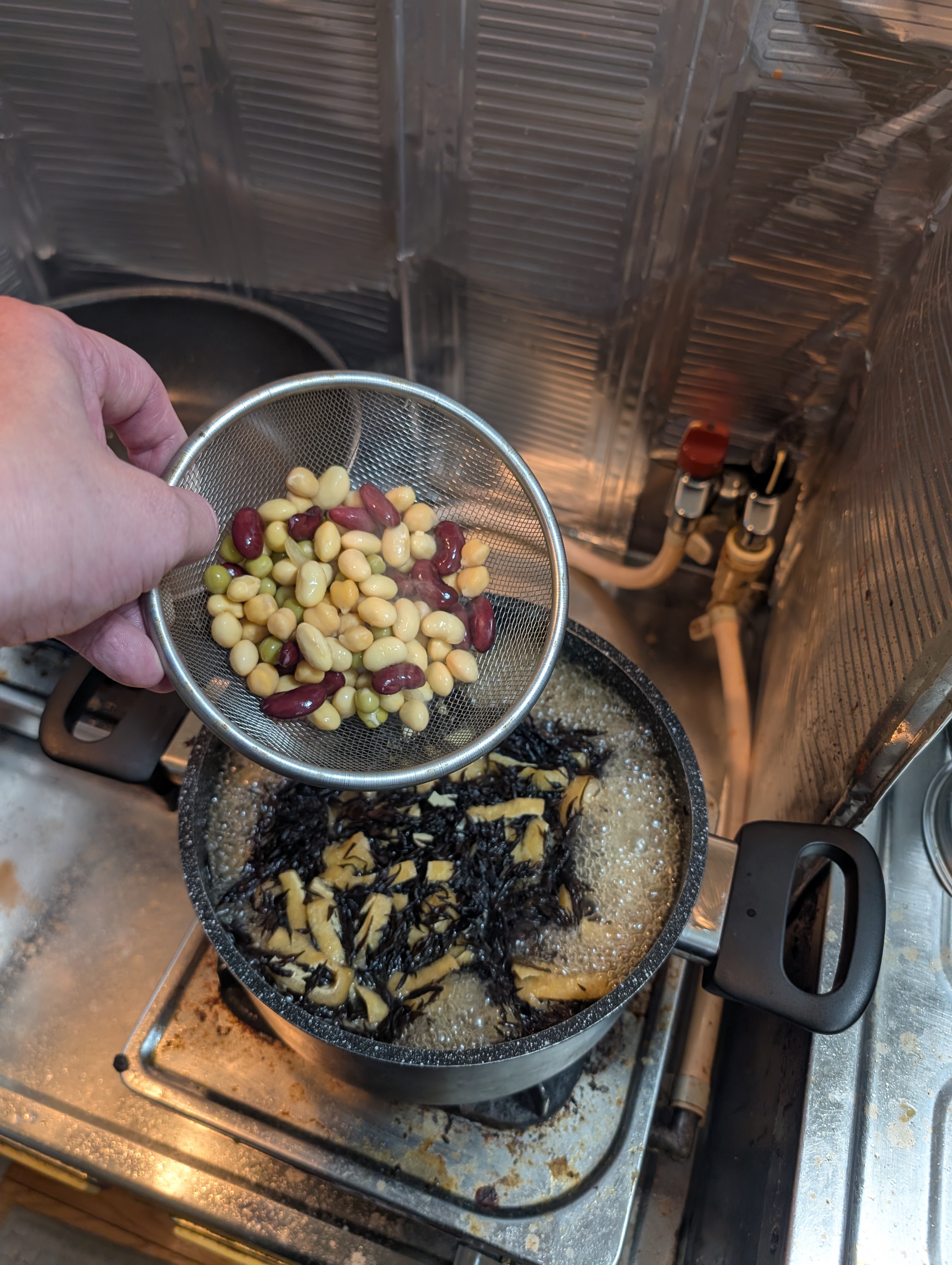 ひじきを戻して、さすがにお安いので数回流水ですすいで使用🫡
