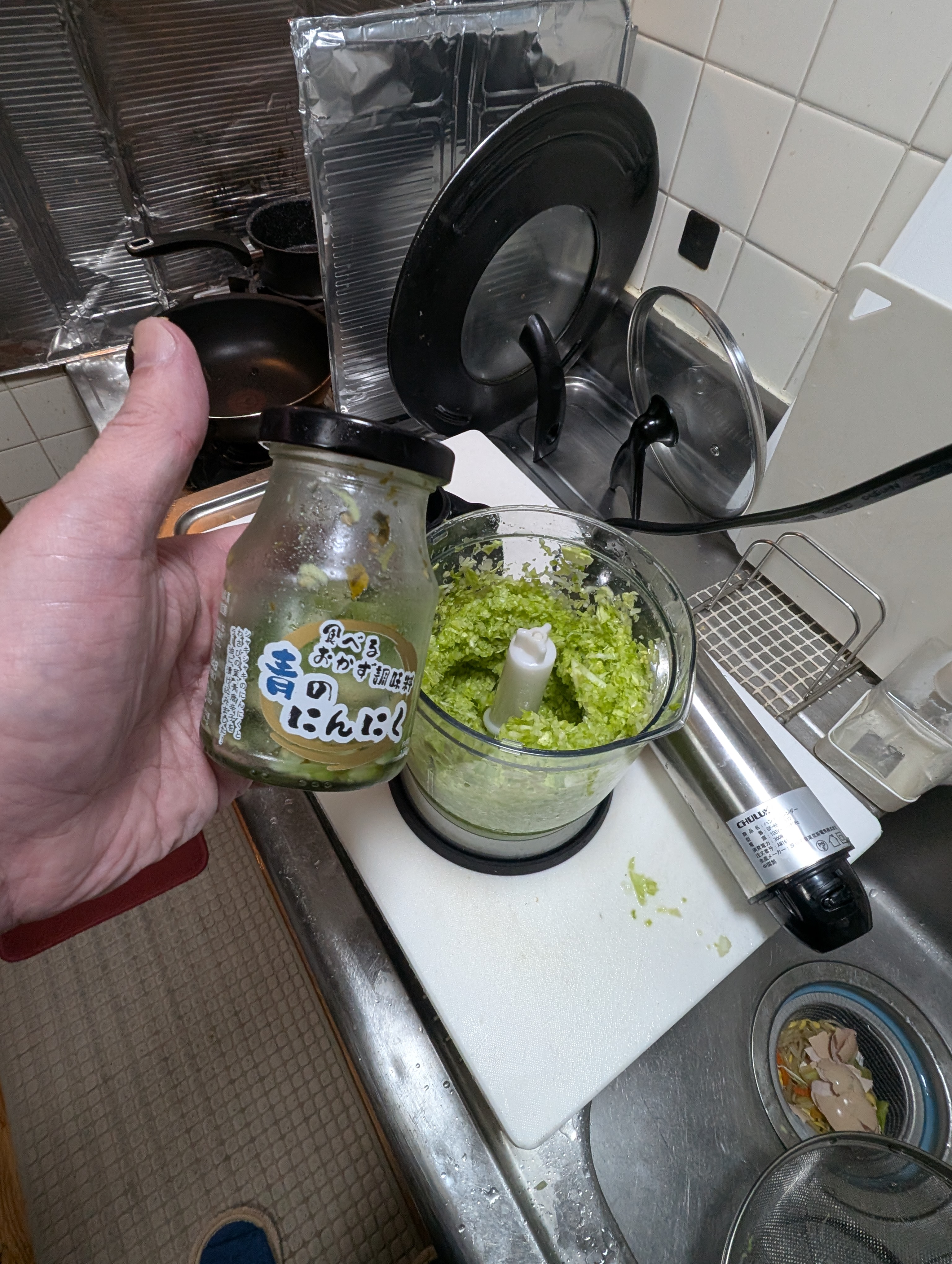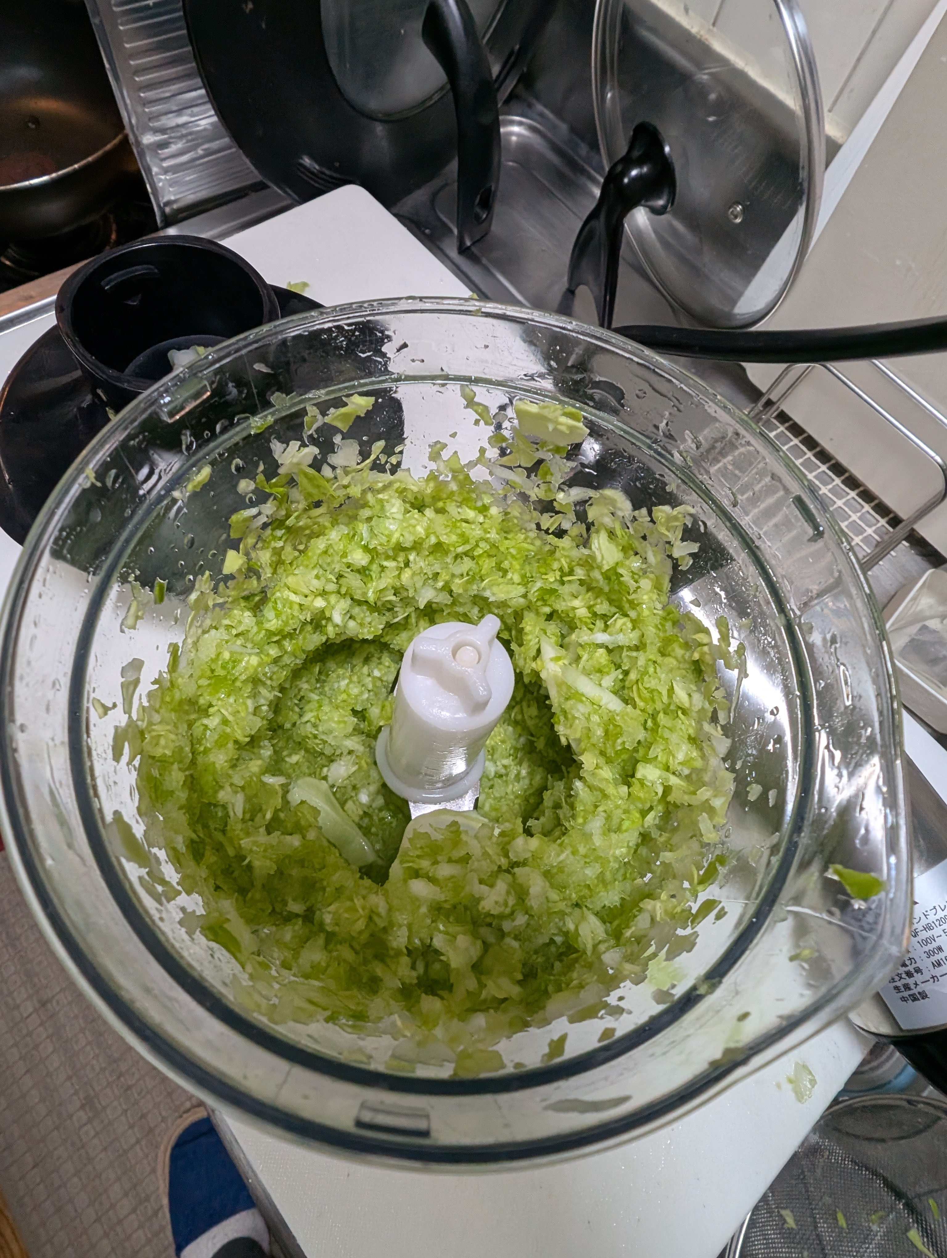 フードプロセッサーでキャベツ、にんにく、生姜をみじん切り