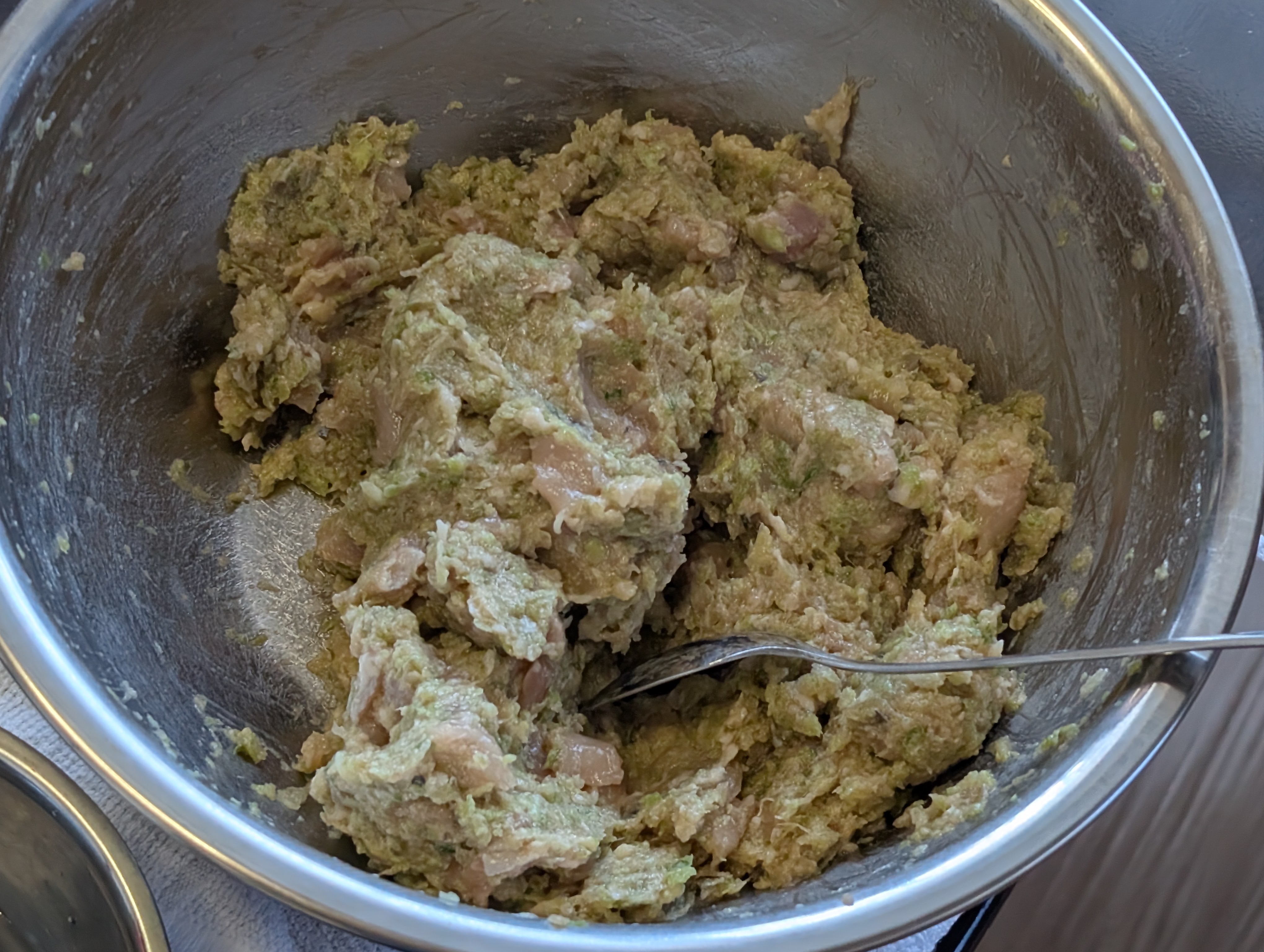 きっちり水抜きした野菜🥬と調味料でよく練り込んで、胡麻油、醤油、オイスターソース、等