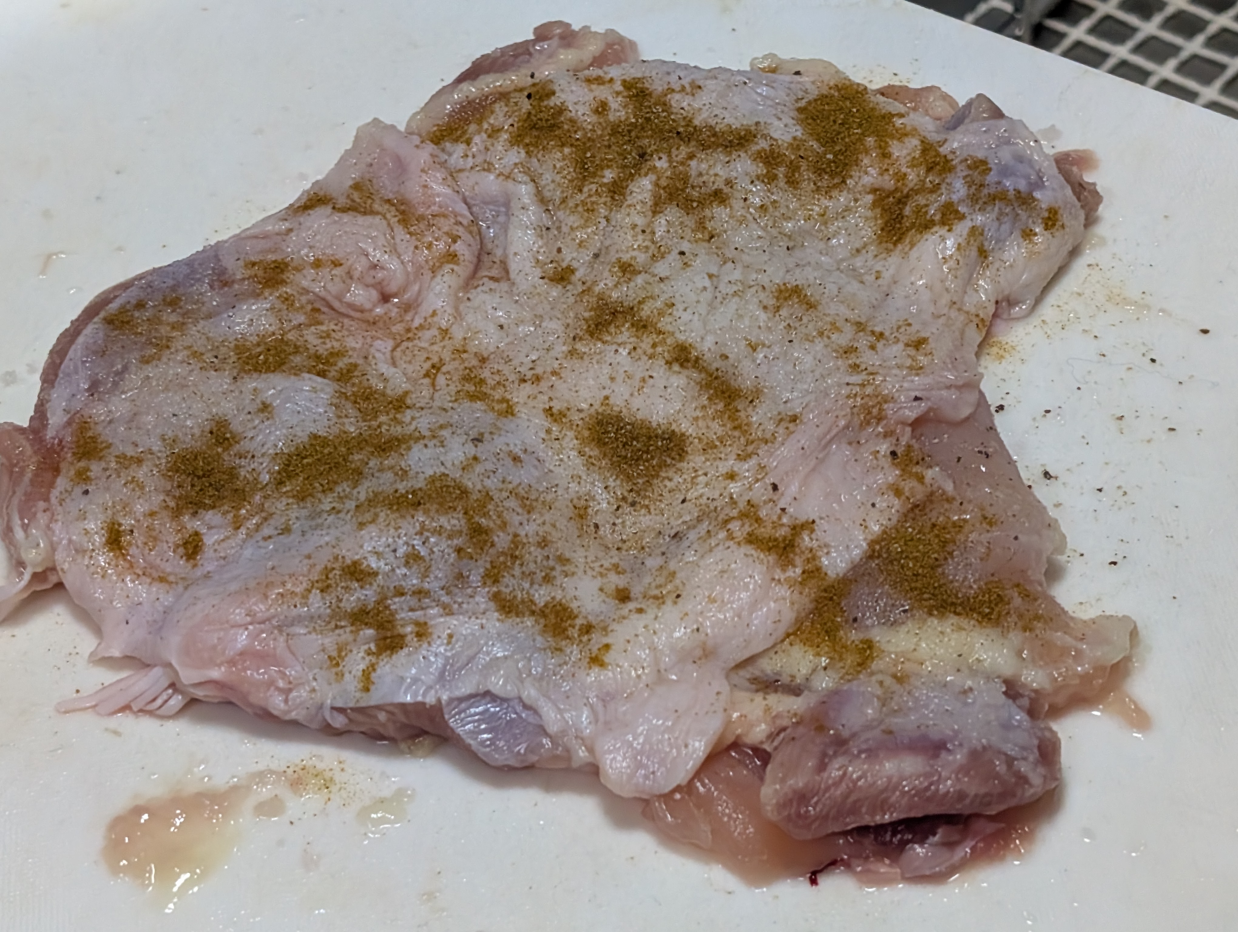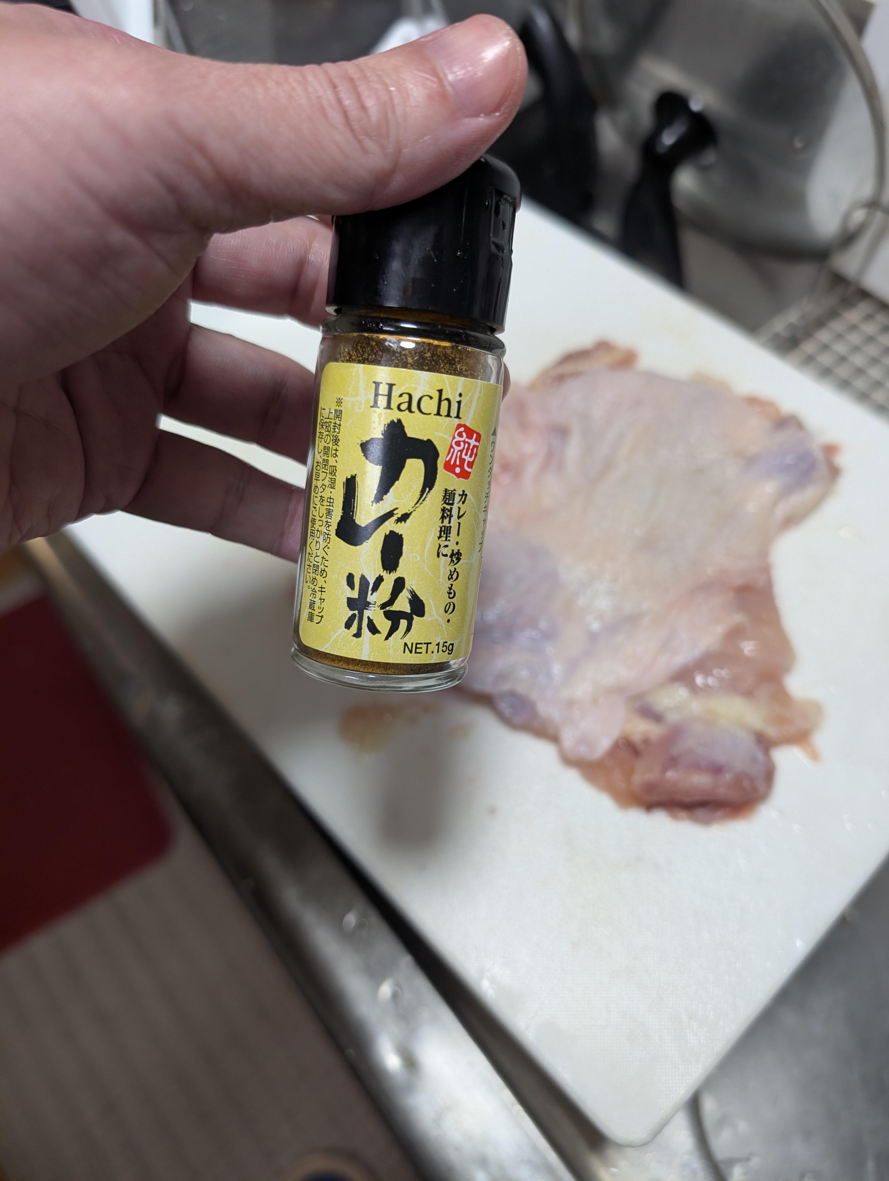 常温解凍して開いて、塩コショウと業務スーパーの激安カレー粉を散布😜