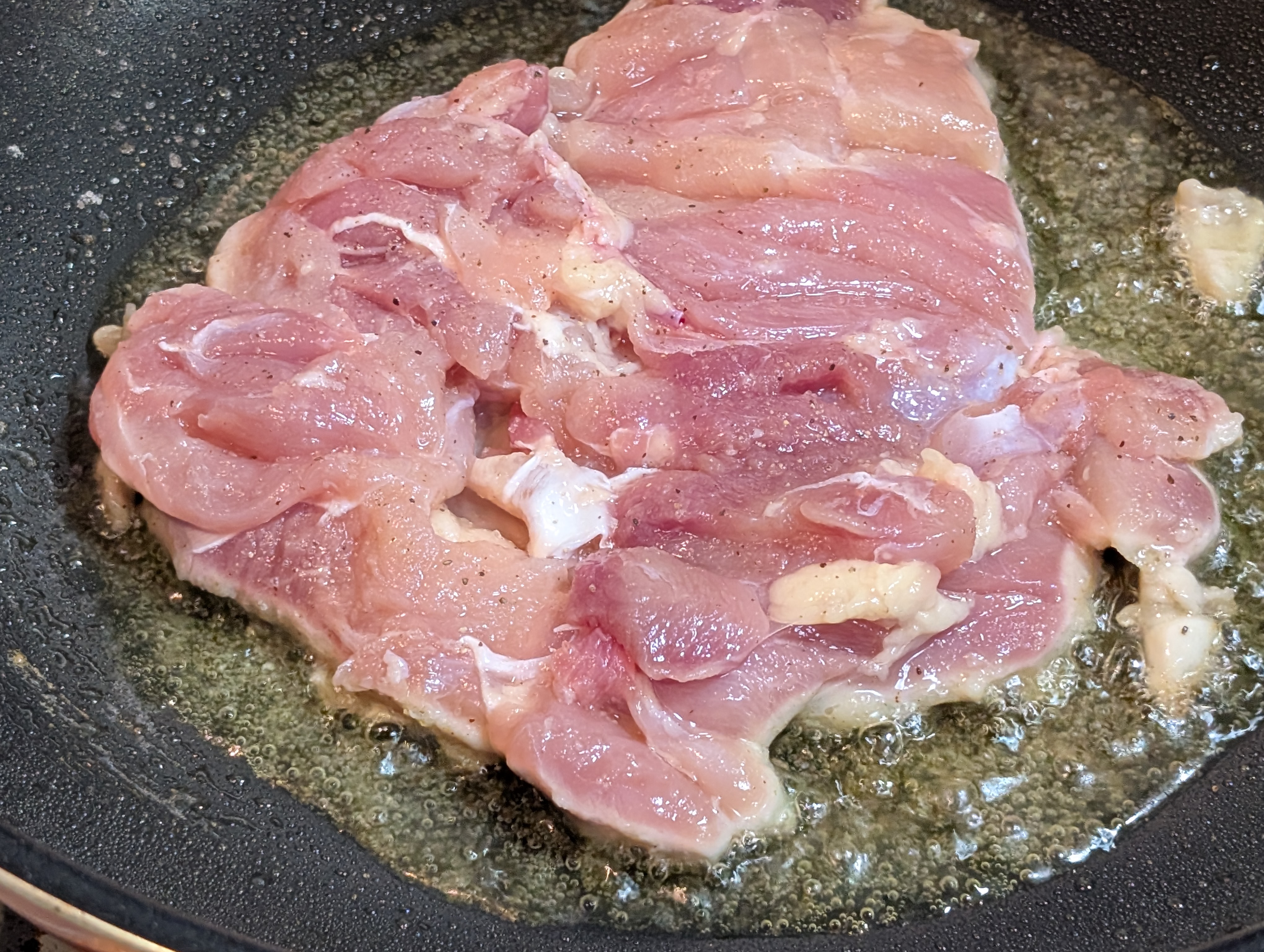 ちょっと多めのオリーブオイルで皮目から焼いて