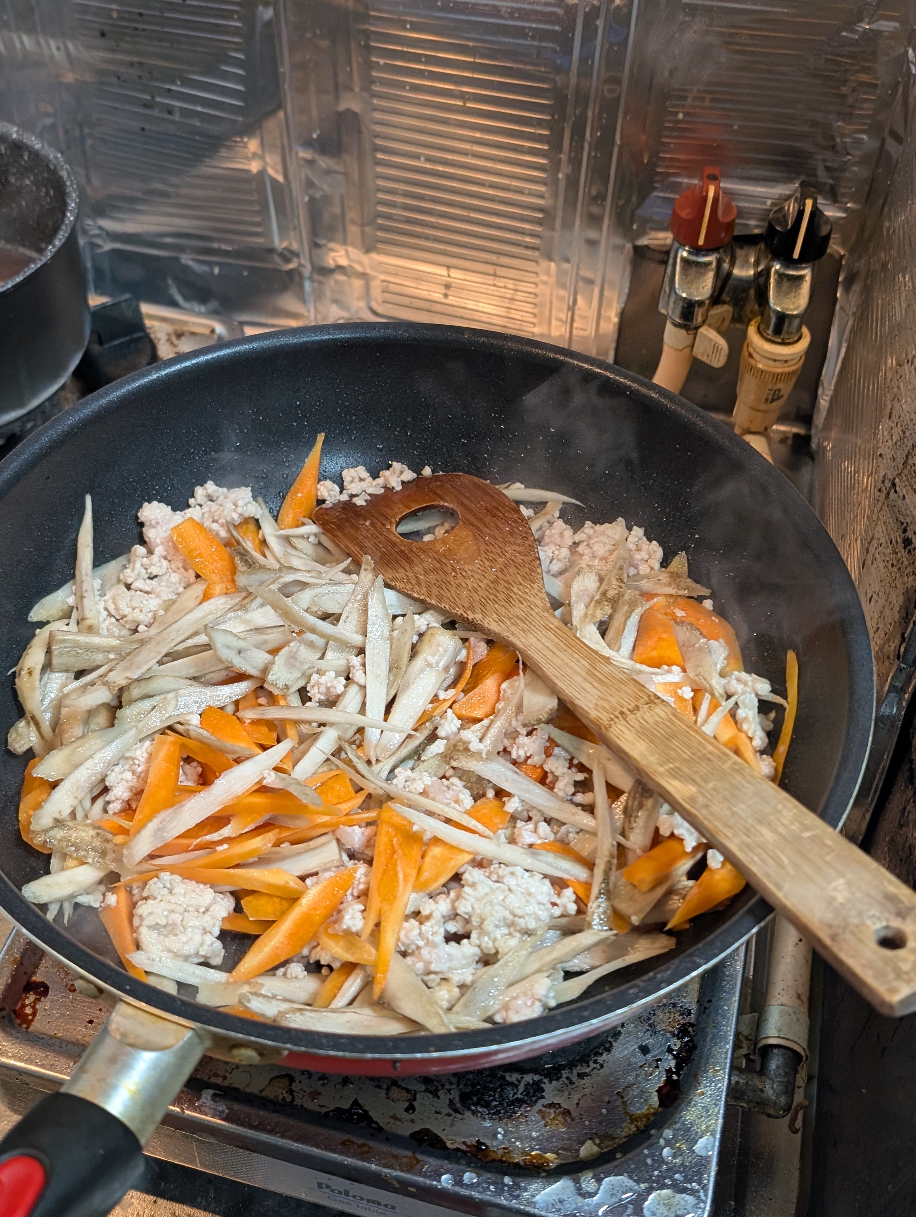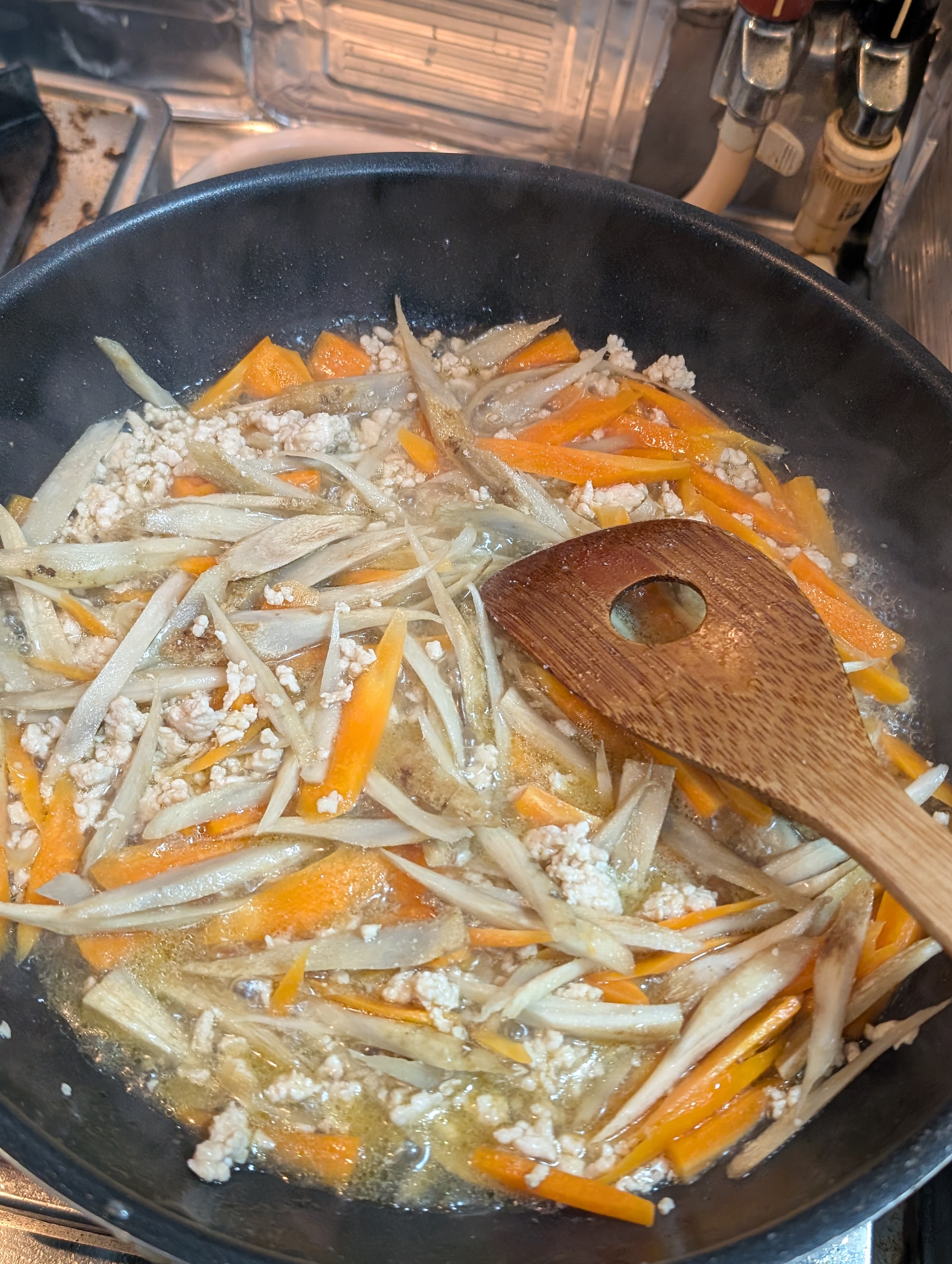 ささがきしたごぼうと人参🥕を投入