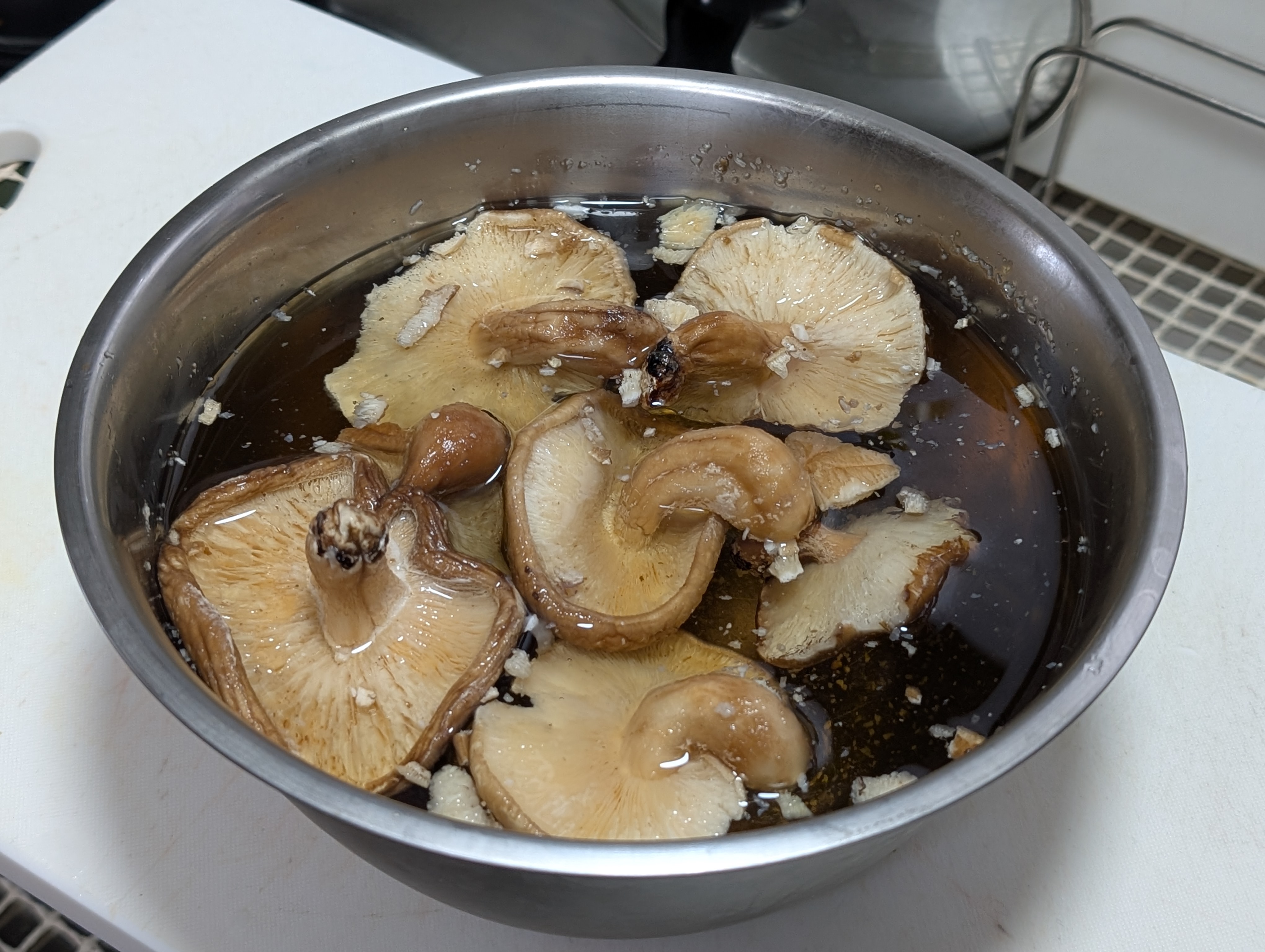 で、他のお料理にも使えるので干し椎茸を一晩😴で戻して