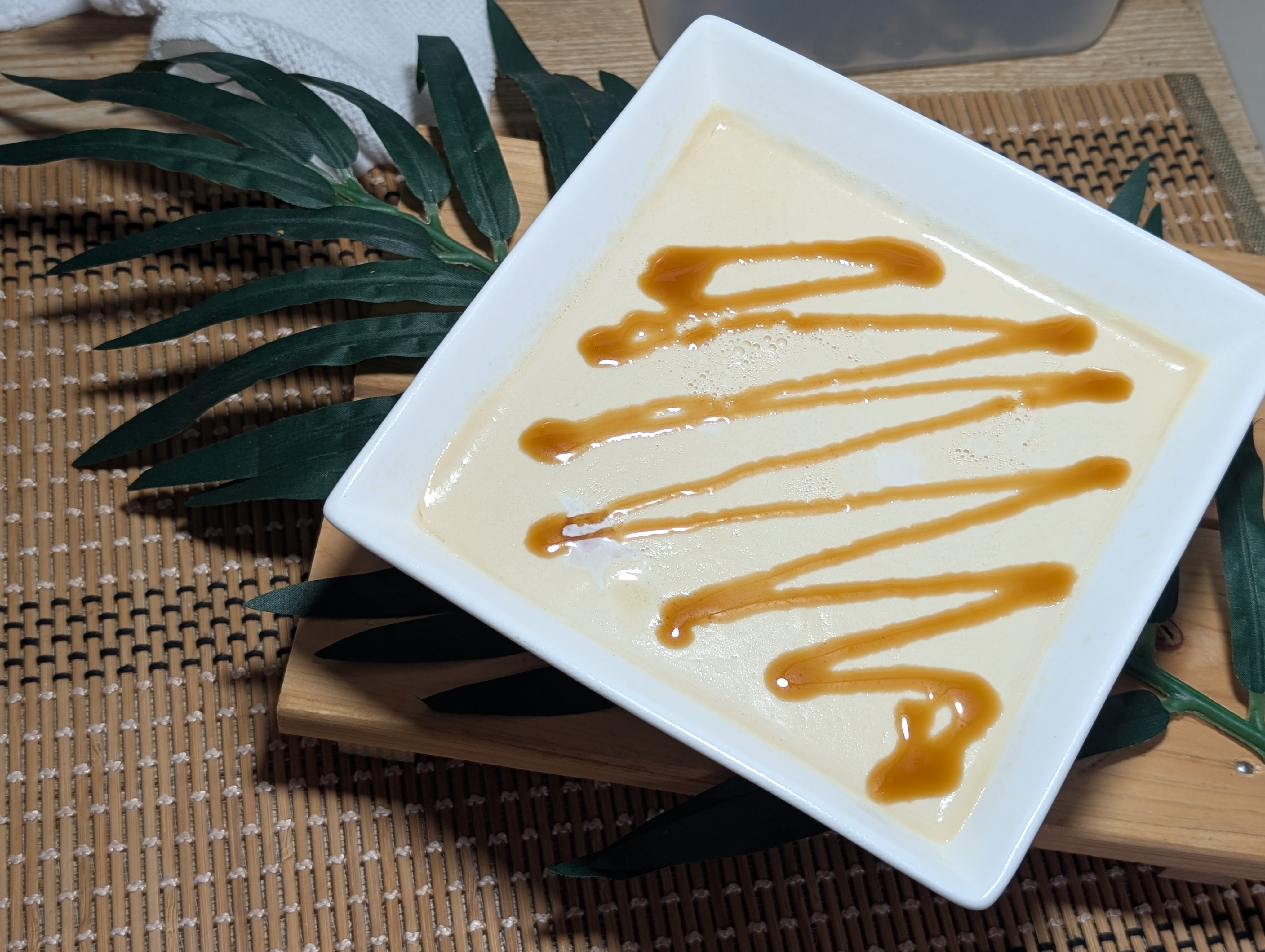 キャラメルソースをトッピングして特大キャラメルパンナコッタ🇮🇹の完成です✨