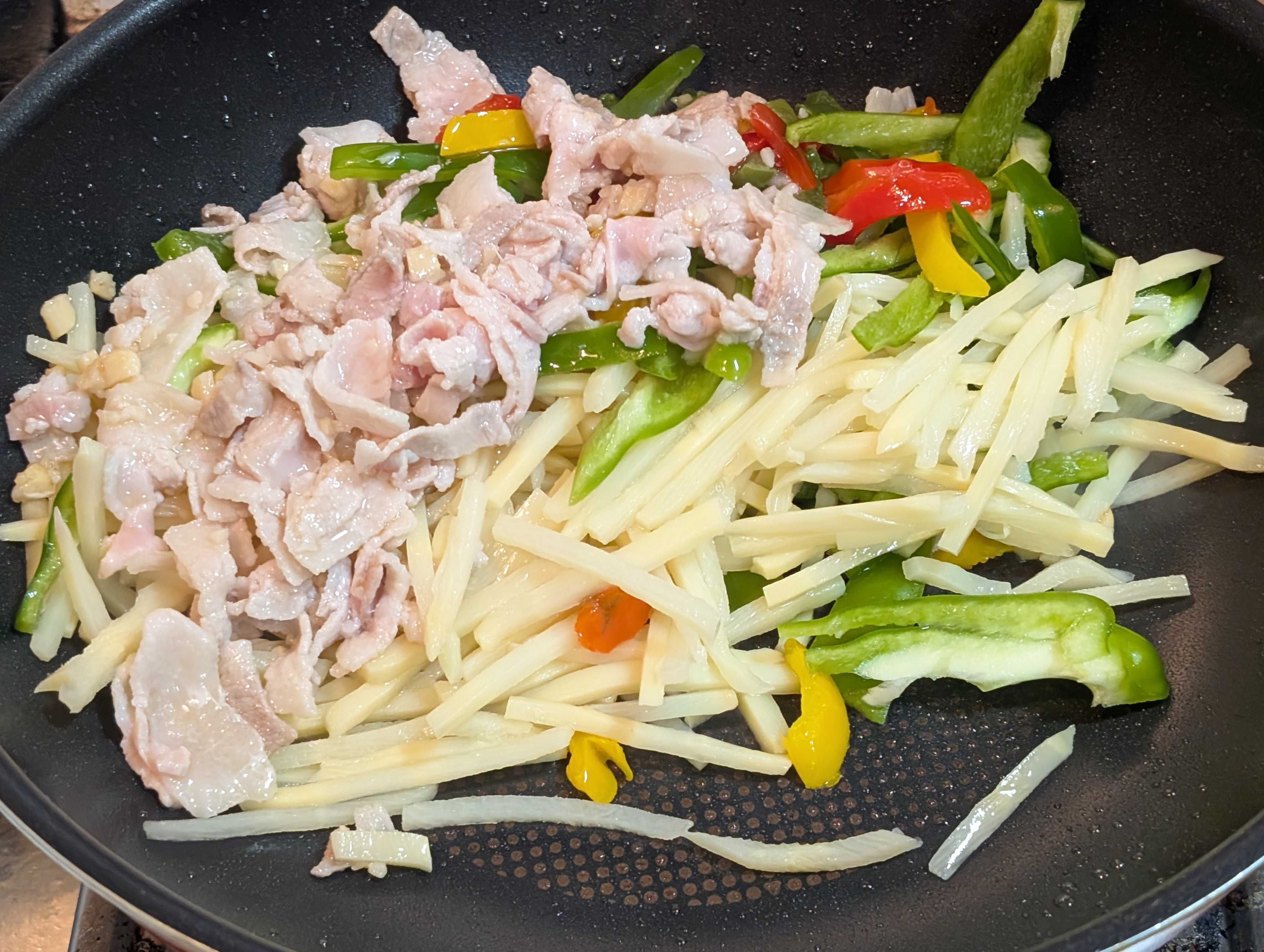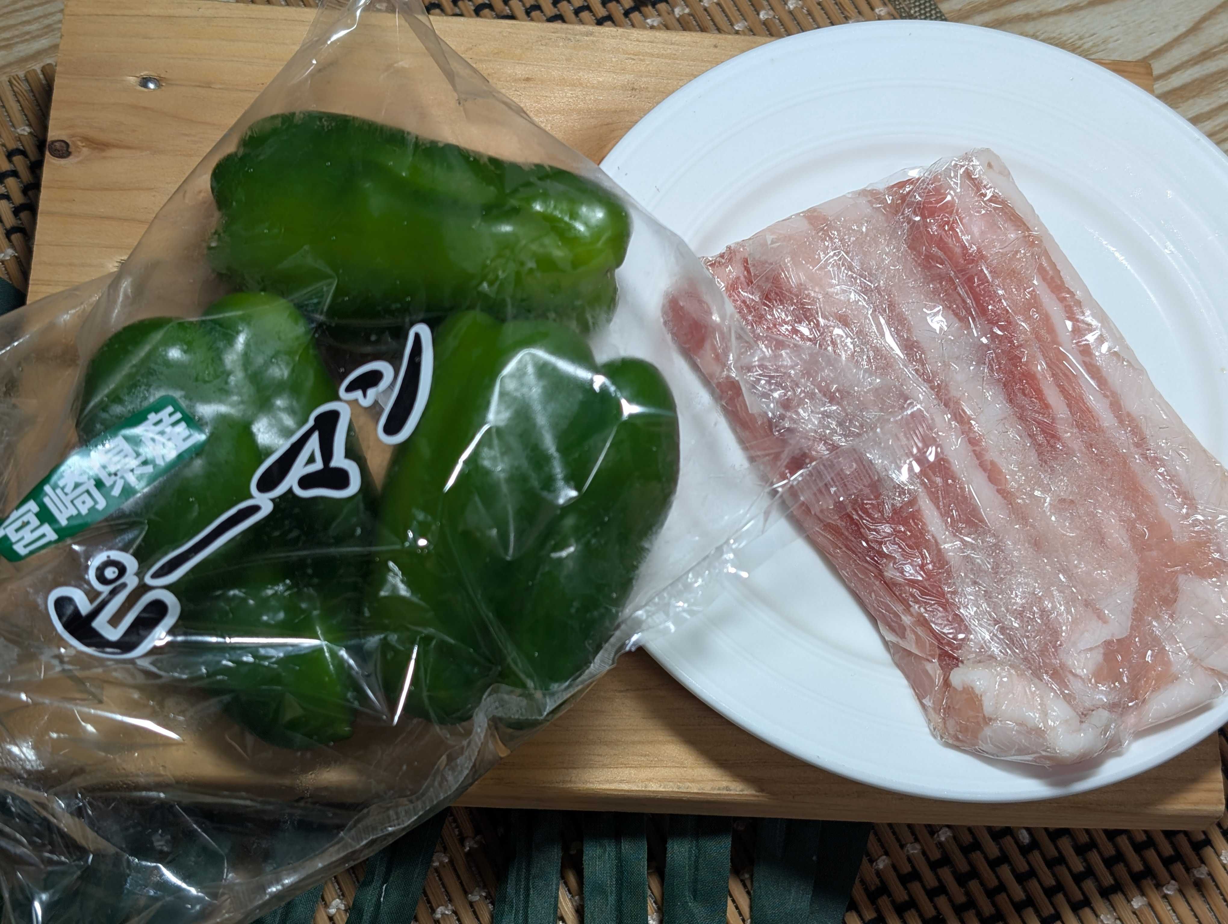 こちらはスーパーのピーマン🫑と、肉のハナマサでまとめ買い小分けの🐷豚肉