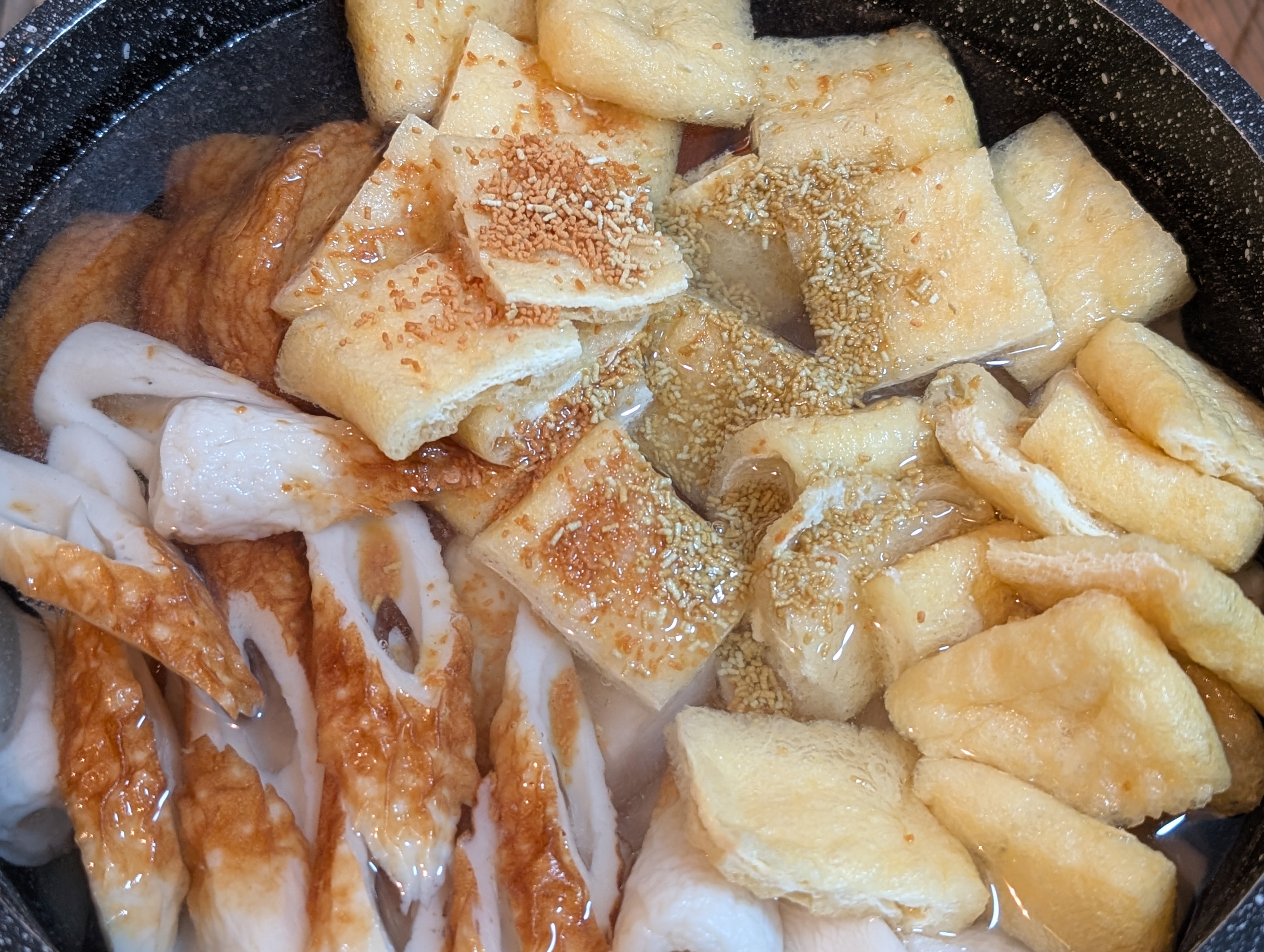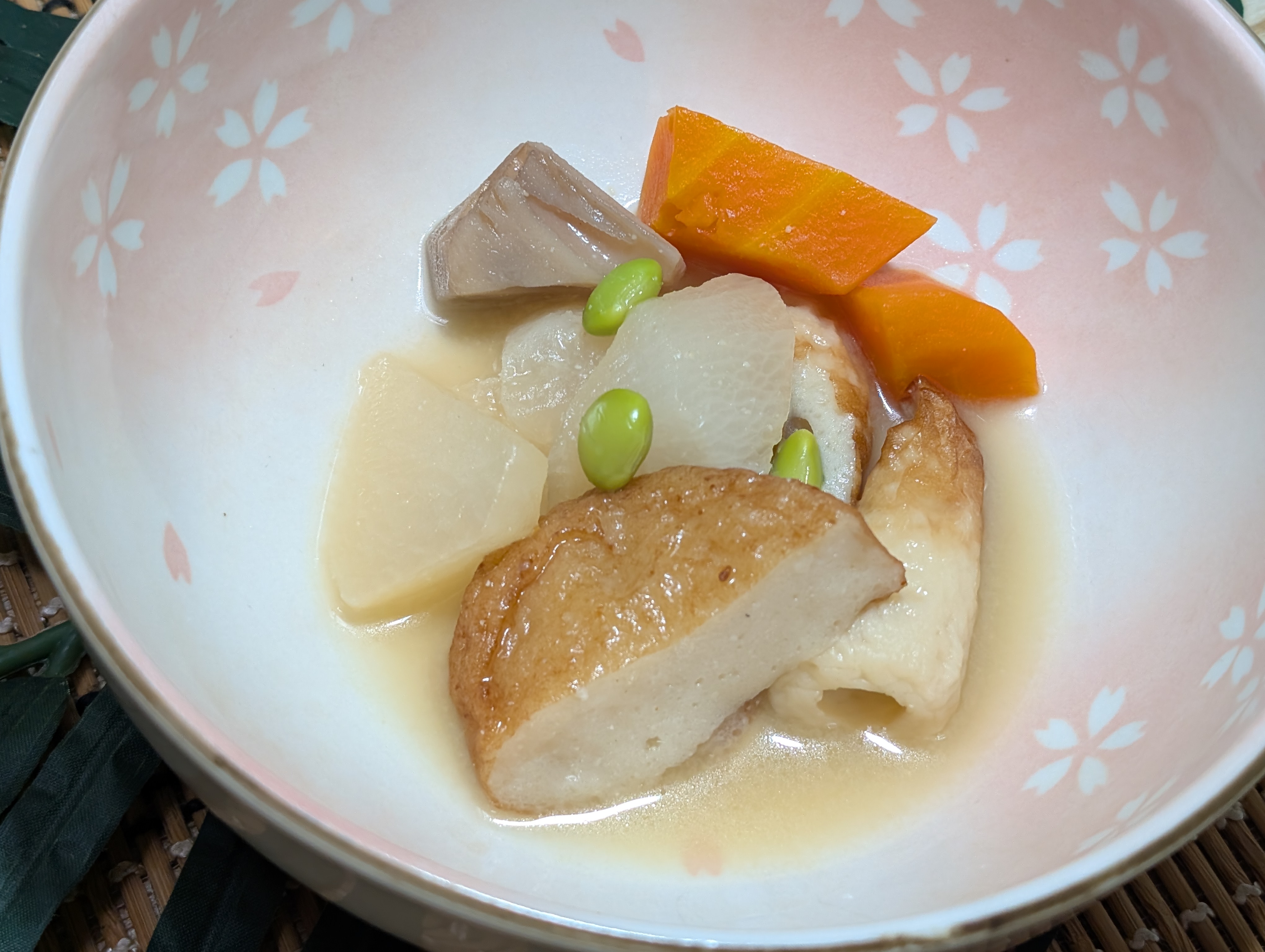 冷凍保存の油揚げと冷凍蓮根もあったので煮物だなと、、、スーパーに🚲️でちくわとさつま揚げ調達