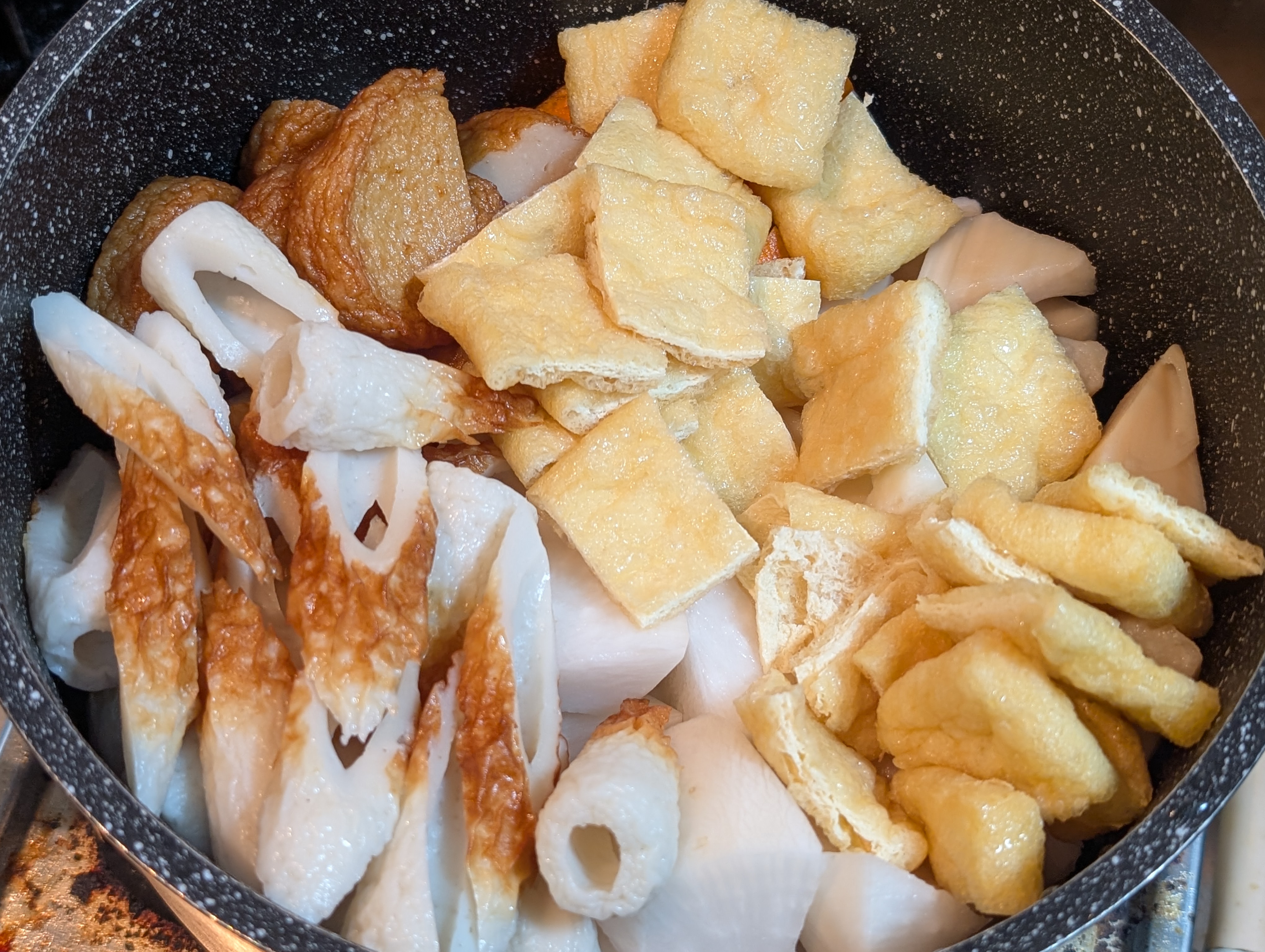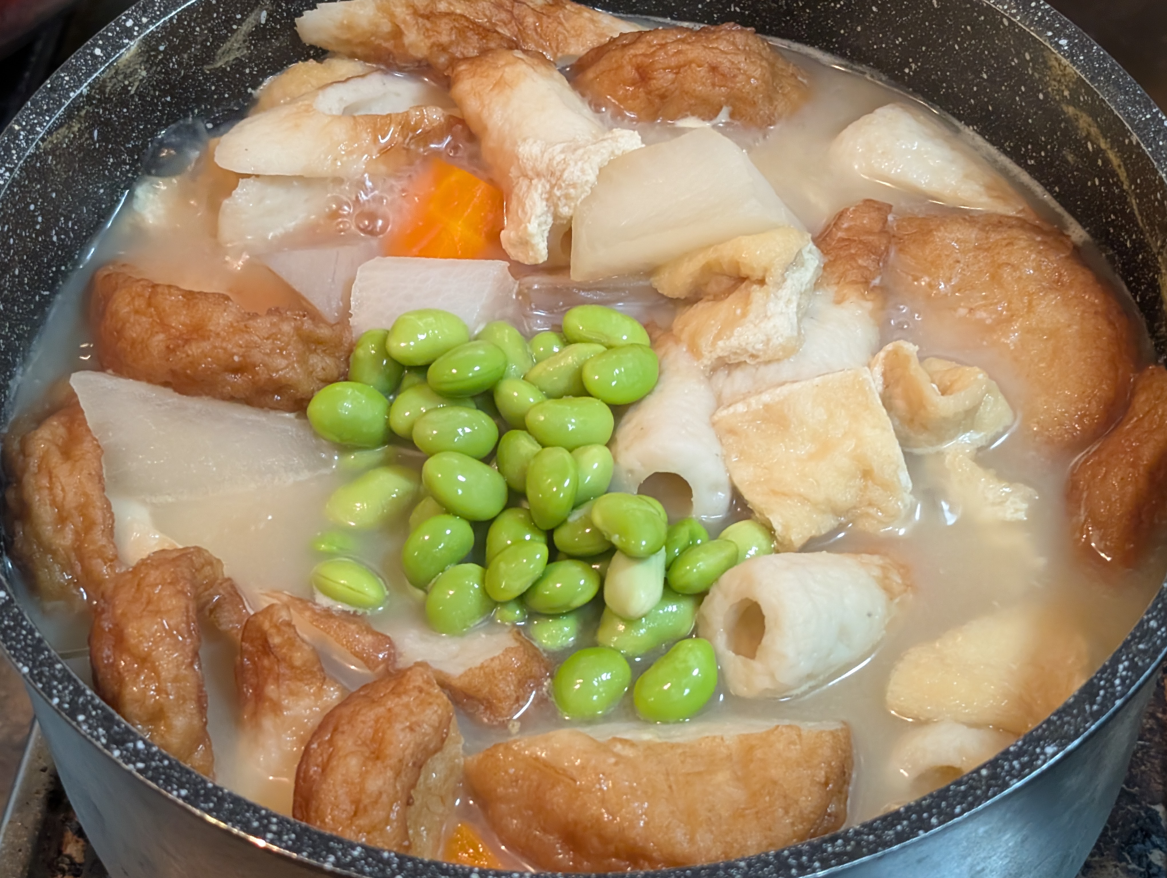 水を張って、顆粒だし「あご」と「こんぶ」で煮ていくだけ
