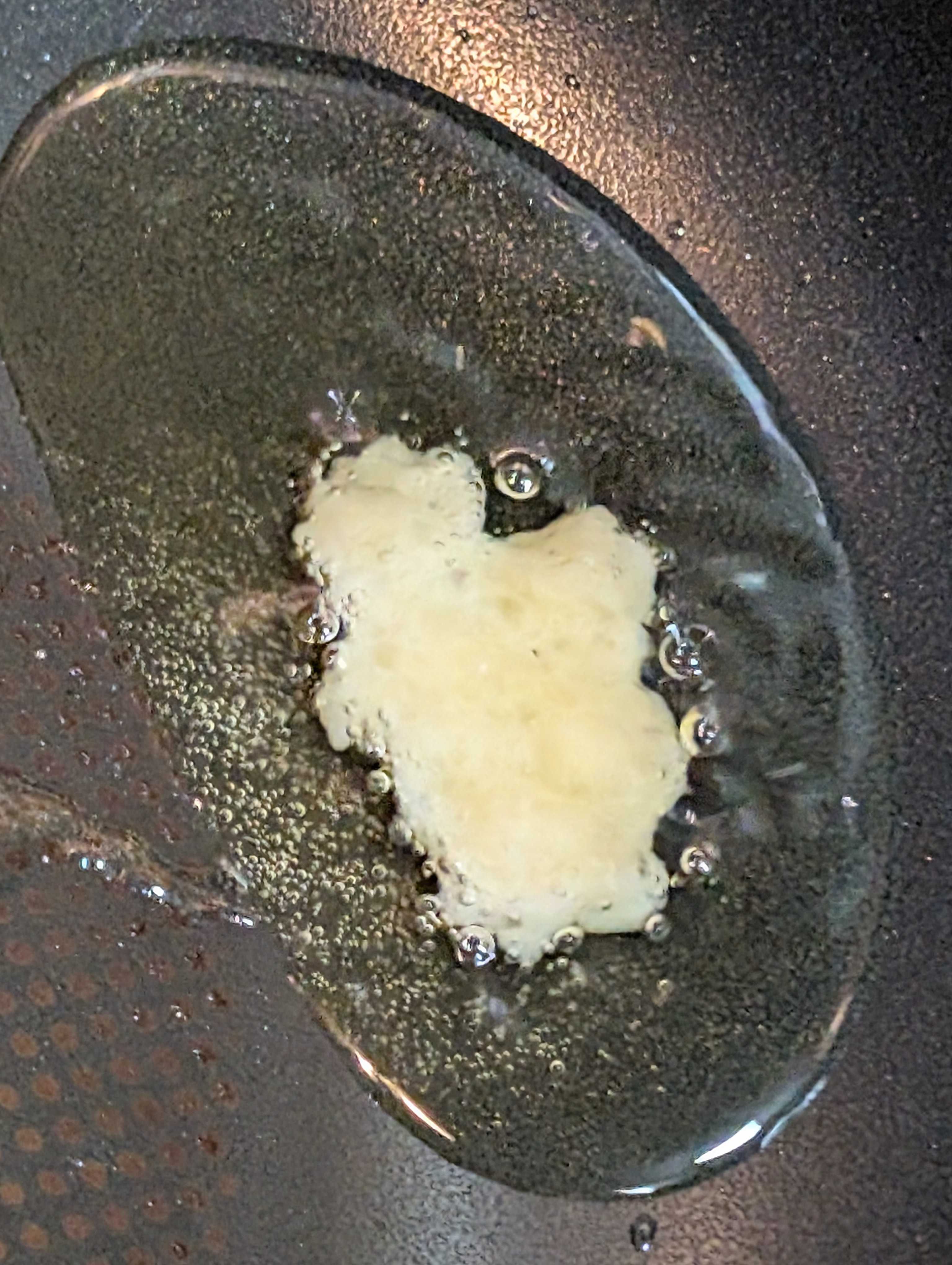 まずはオリーブオイルにニンニク🧄の香りをうつして