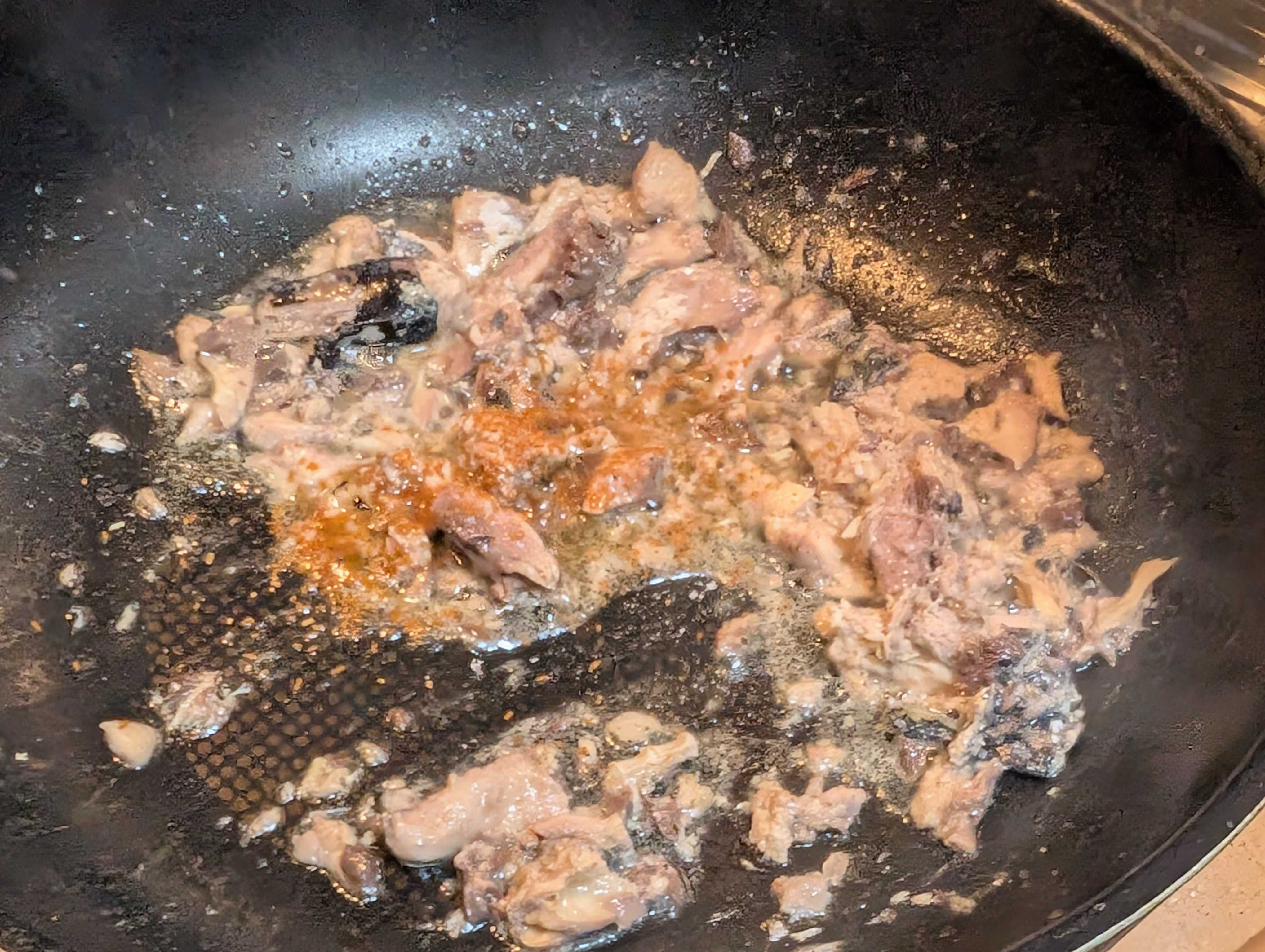和風🇯🇵なので、サラダ油でさば缶を炒めていきます。塩と顆粒、アゴだし、醤油で味を調整