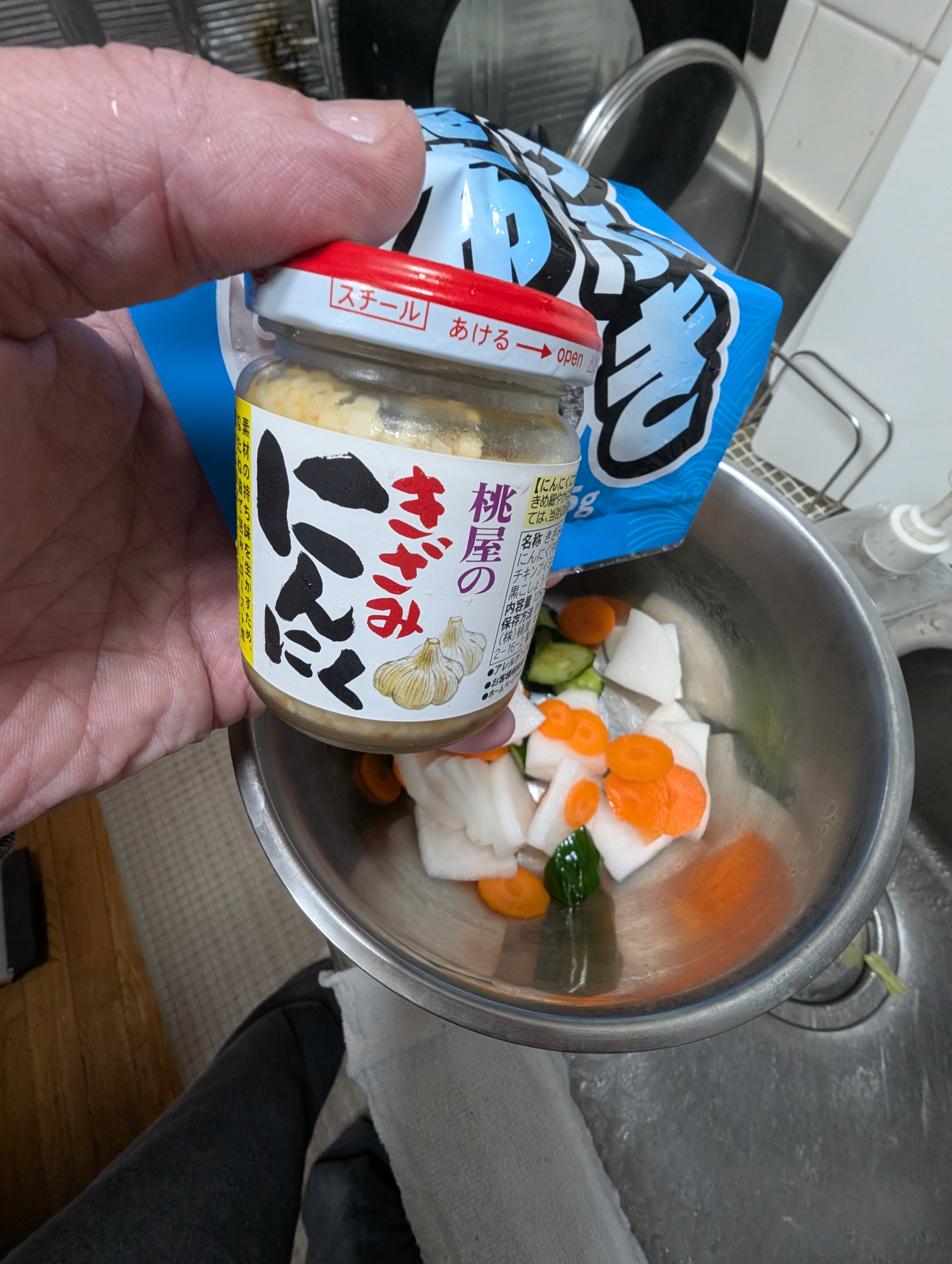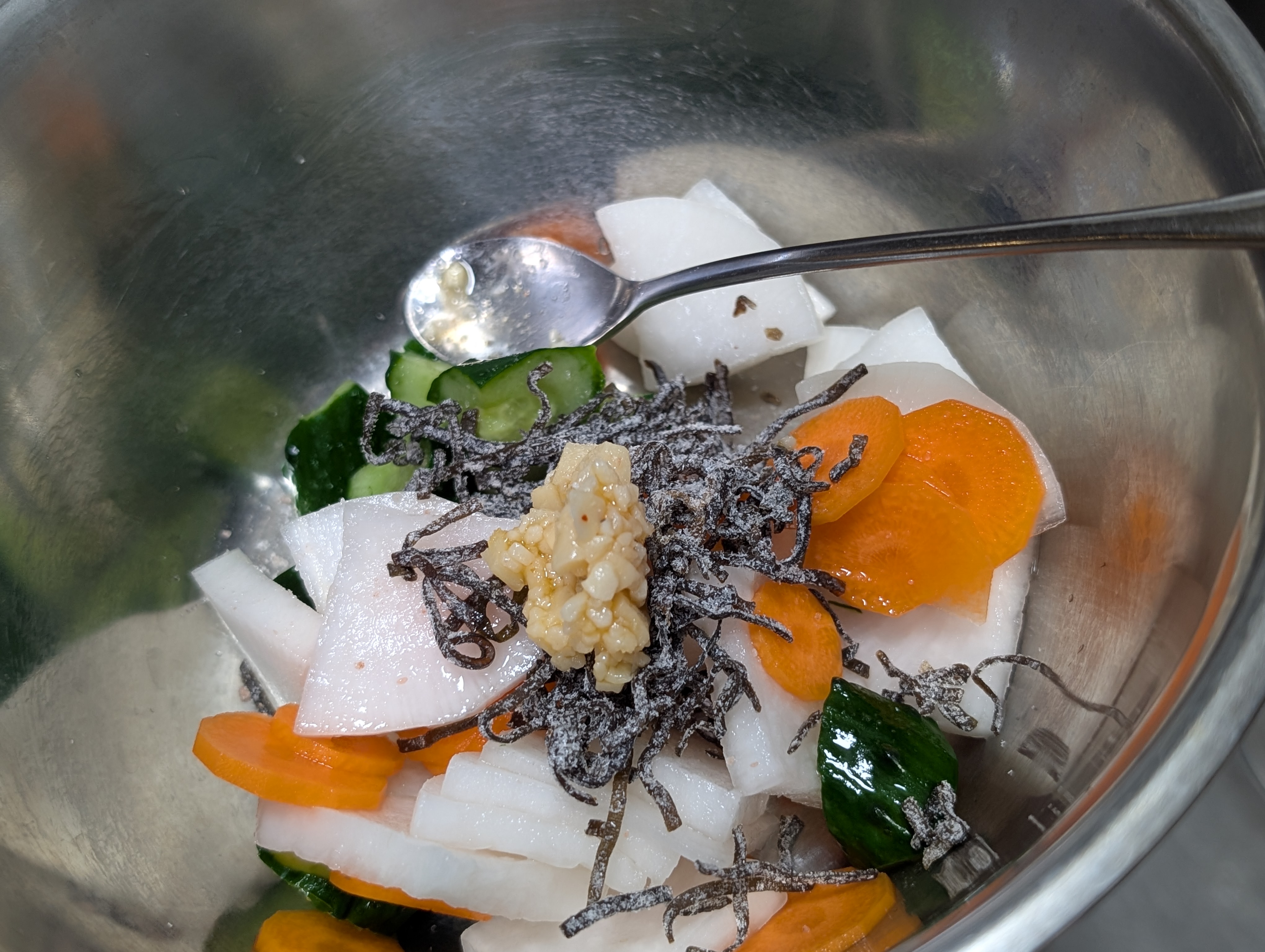 うっすら塩味はついているので、きざみにんにく➕️塩昆布で