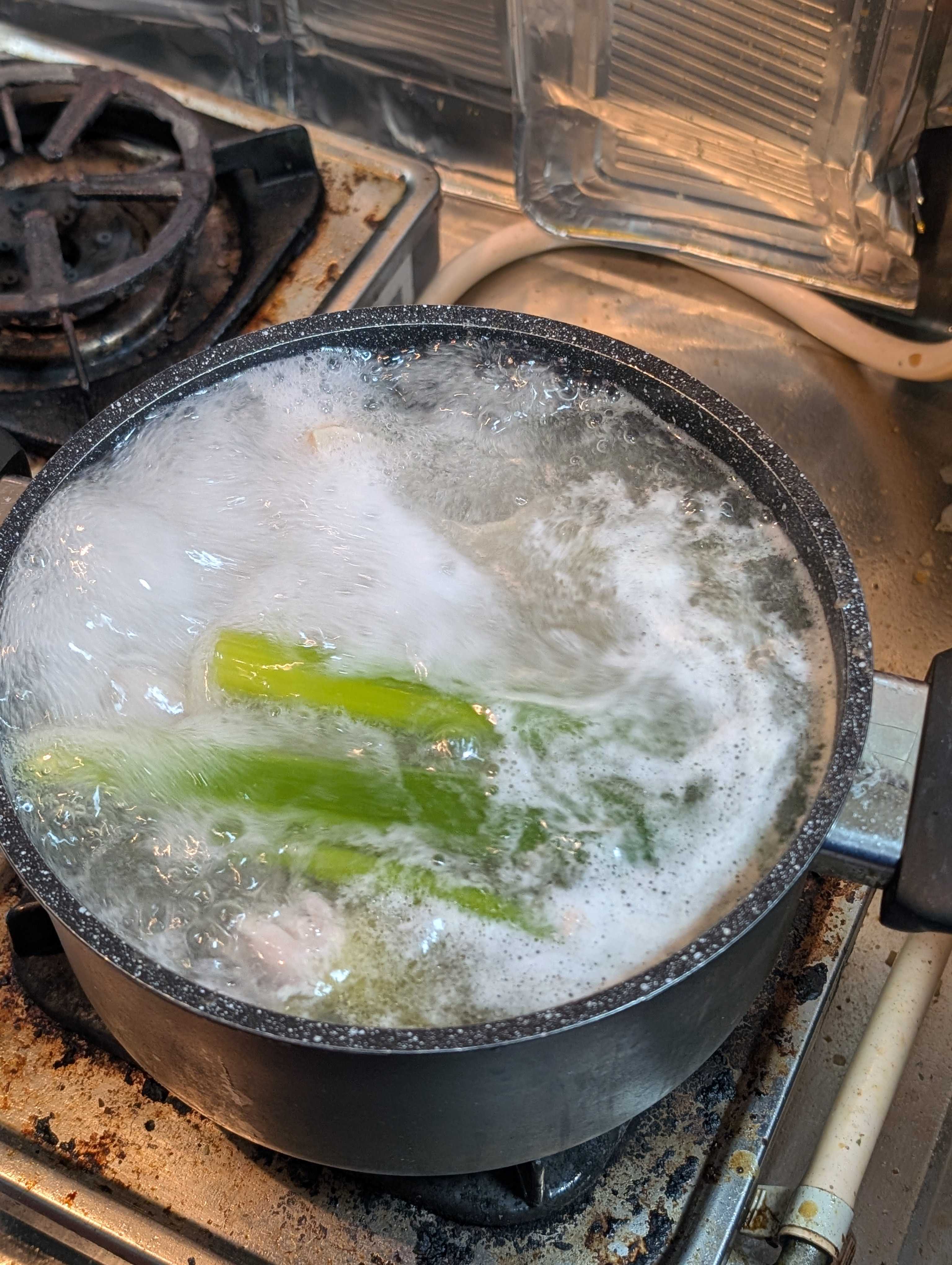 最初グツグツ強火🔥で煮てアクを取ってちょいと澄んだ感じ