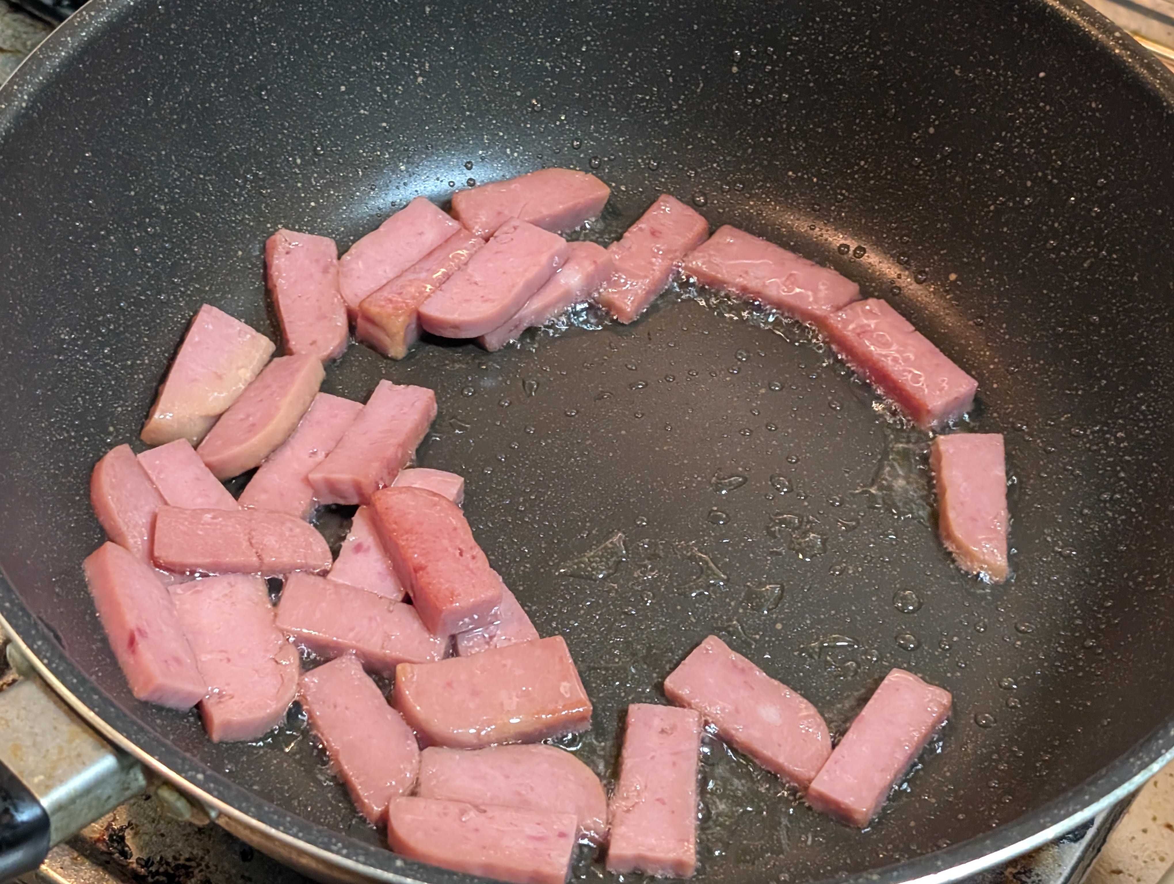ランチョンミートを炒めて
