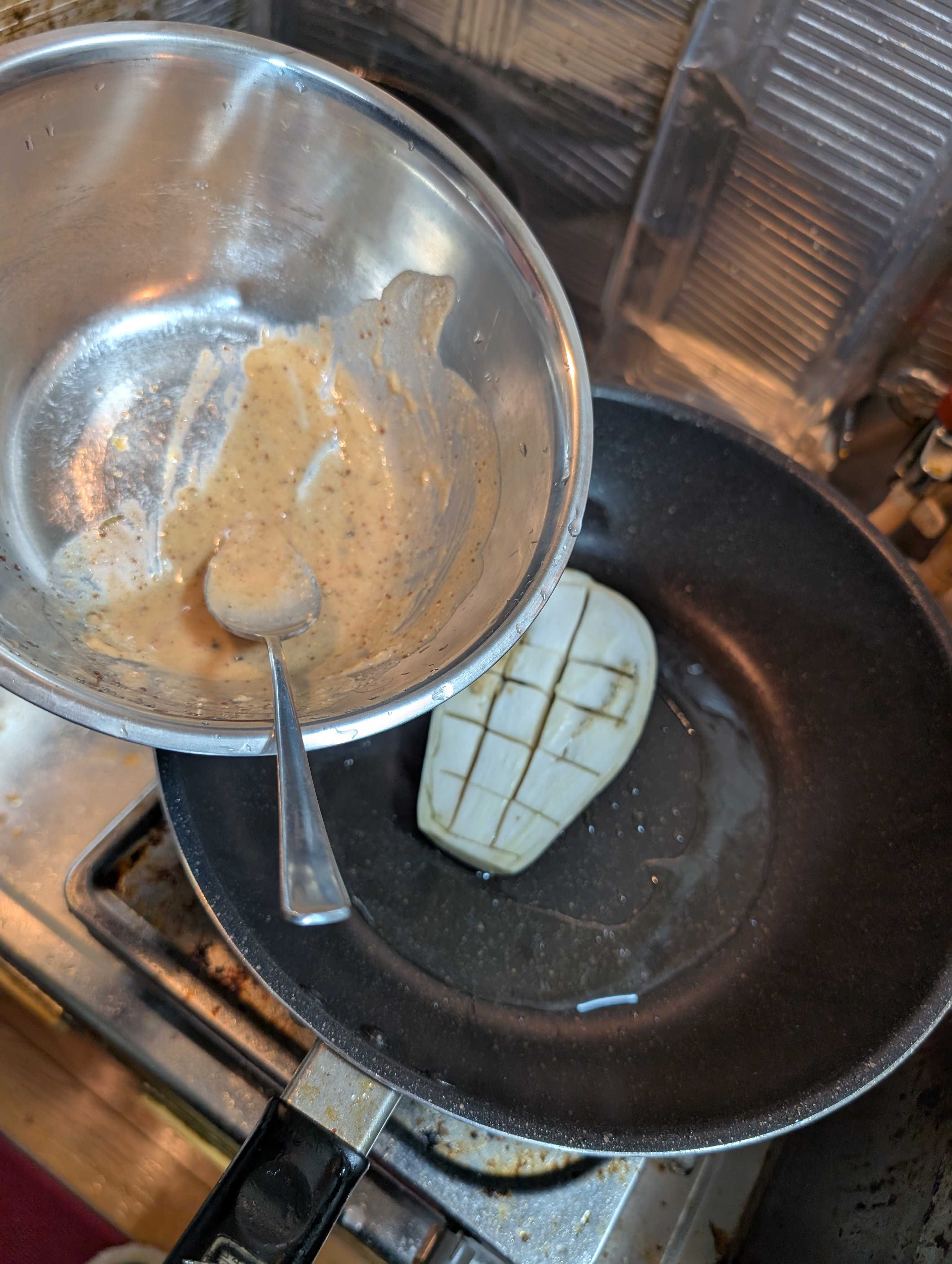 白味噌、白ごま、酒、七味🌶️で合わせ味噌