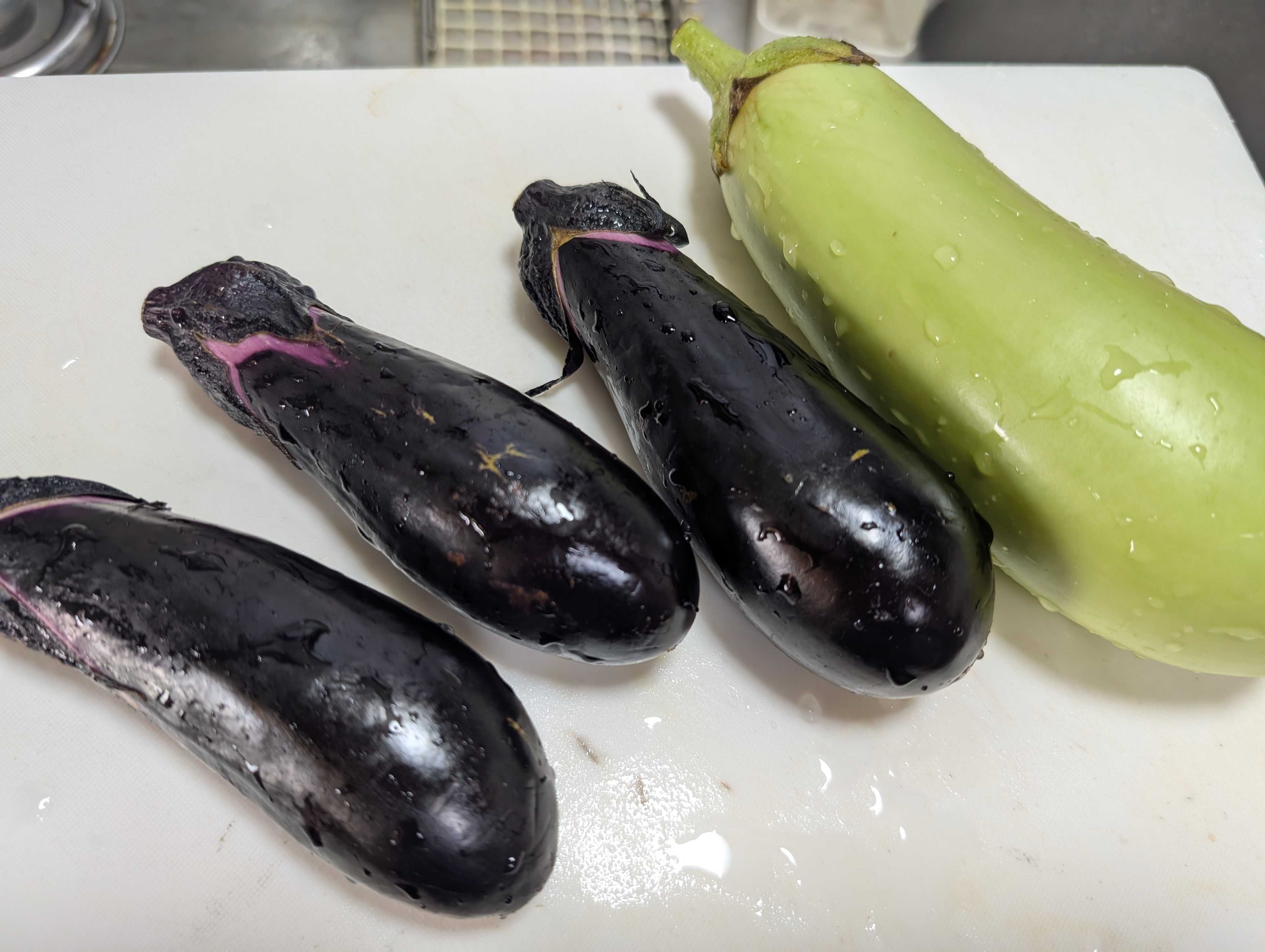 ご近所スーパーの生産者コーナーでお安かったので、後ナス味噌🍆🫑炒め作るので