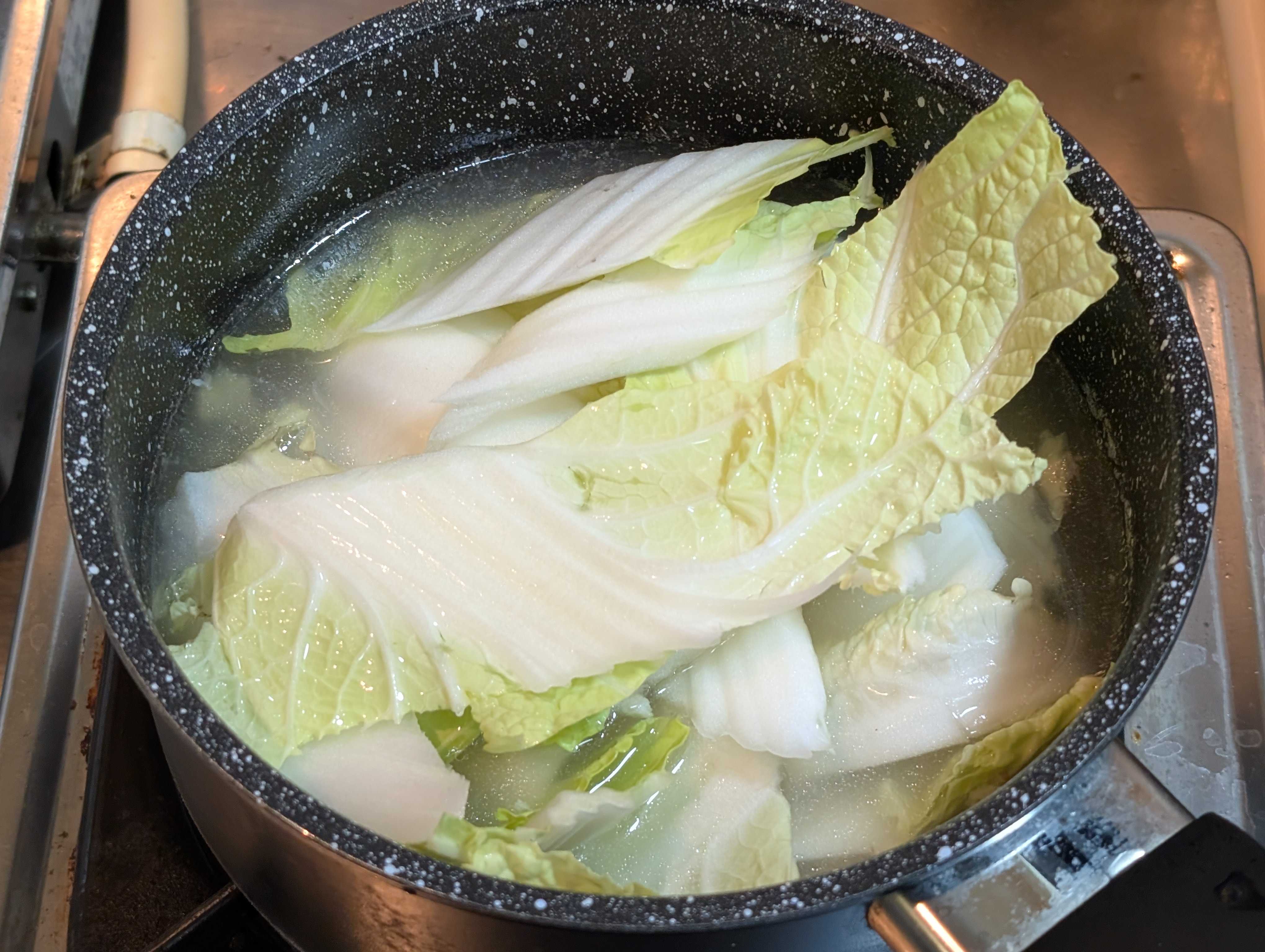 白菜🥬を投入、一煮立したら