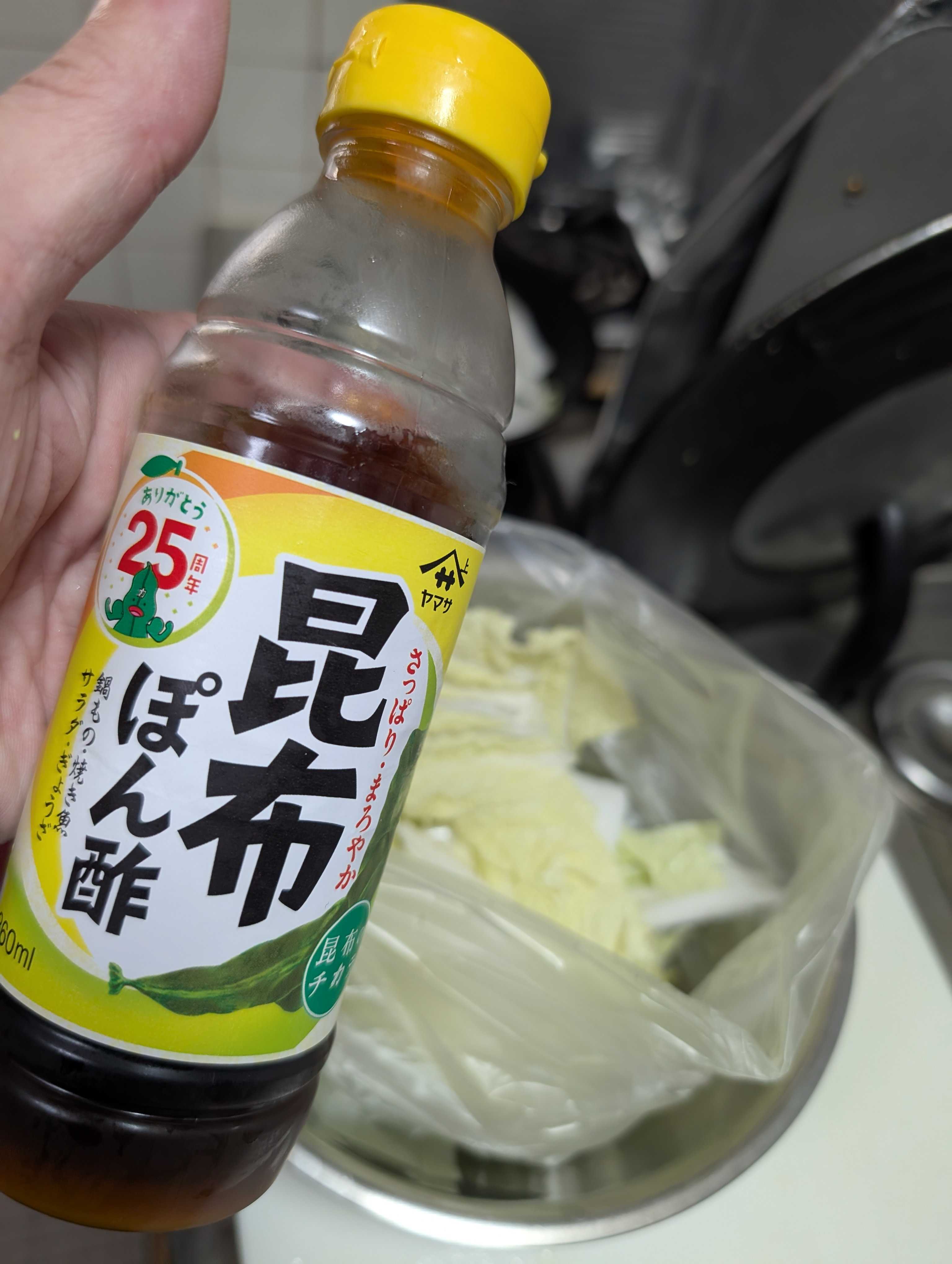 冷蔵庫にあったポン酢ポン酢、塩、和風顆粒だし、水とビニール袋にフリフリシェイクして、ギュッと縛って冷蔵庫で2〜3時間今回、、、始めてノリでつくったのですが、、、是非😲お試しあ〜れ🥰