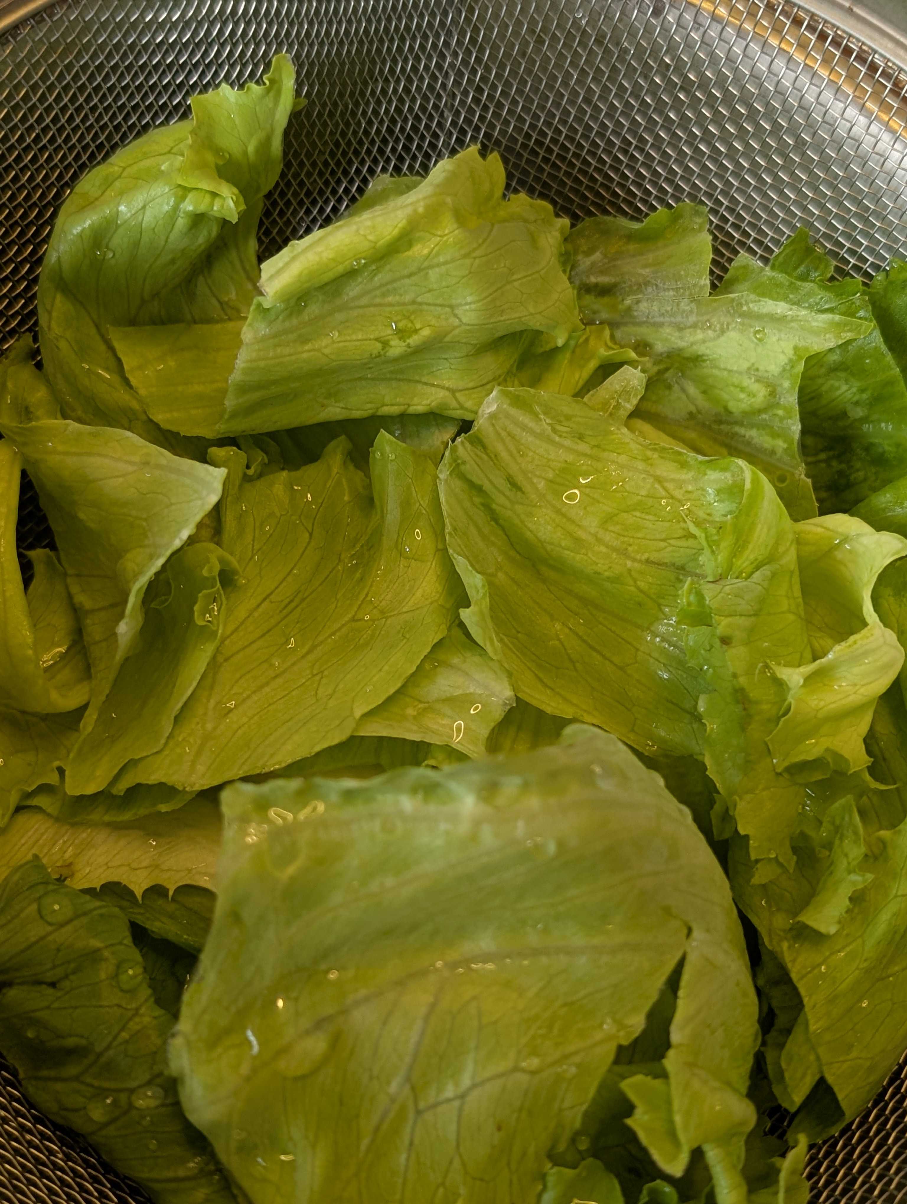 付け合せのレタス🥬、冷蔵庫でシナッテいたので冷水で復活🐦🔥