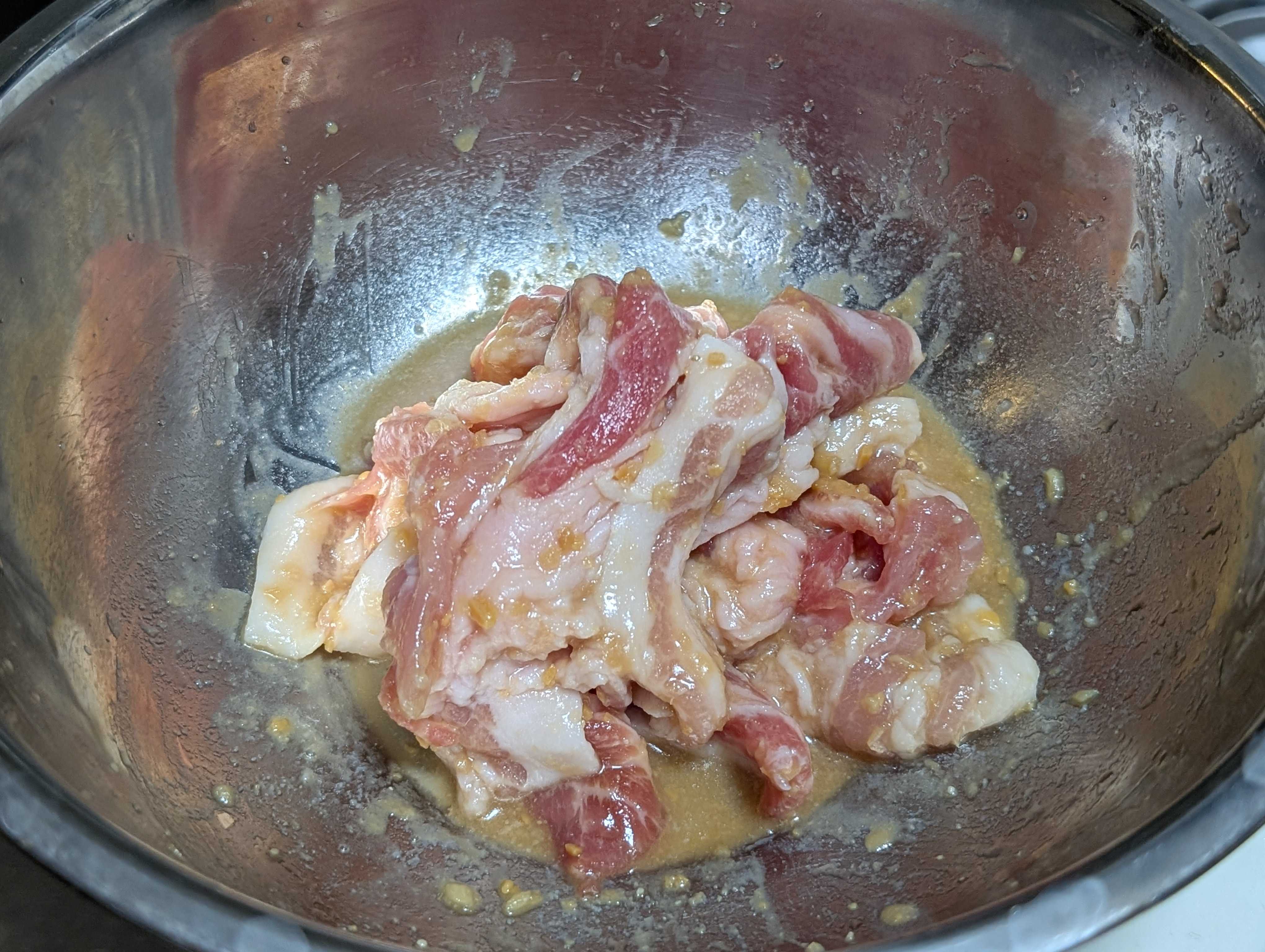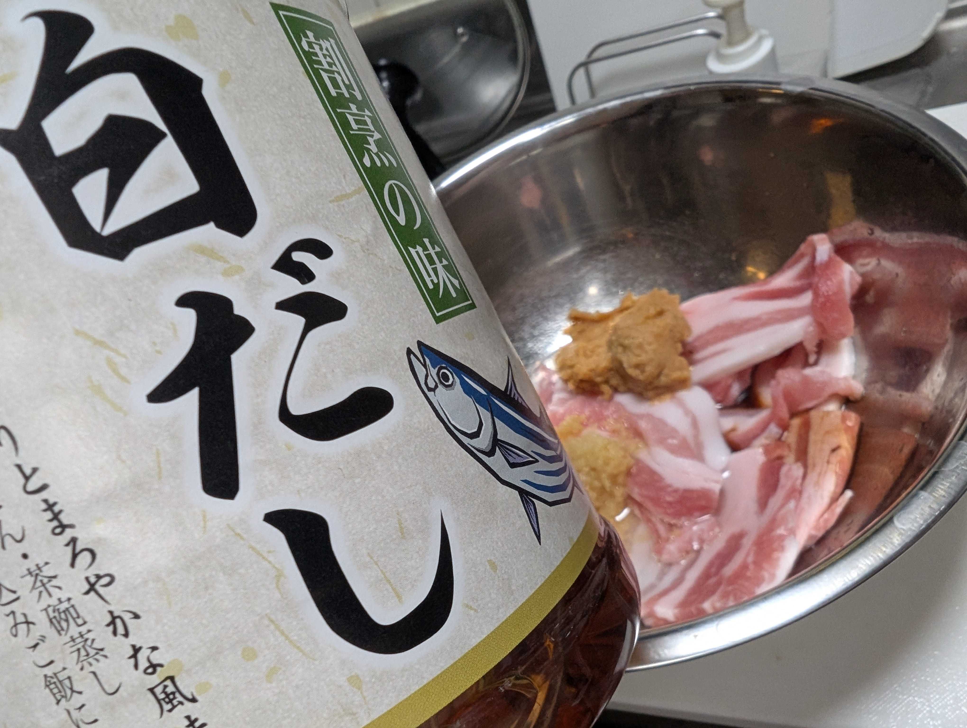 白だし投入、ちょっとお酒でのばしてモミモミ
