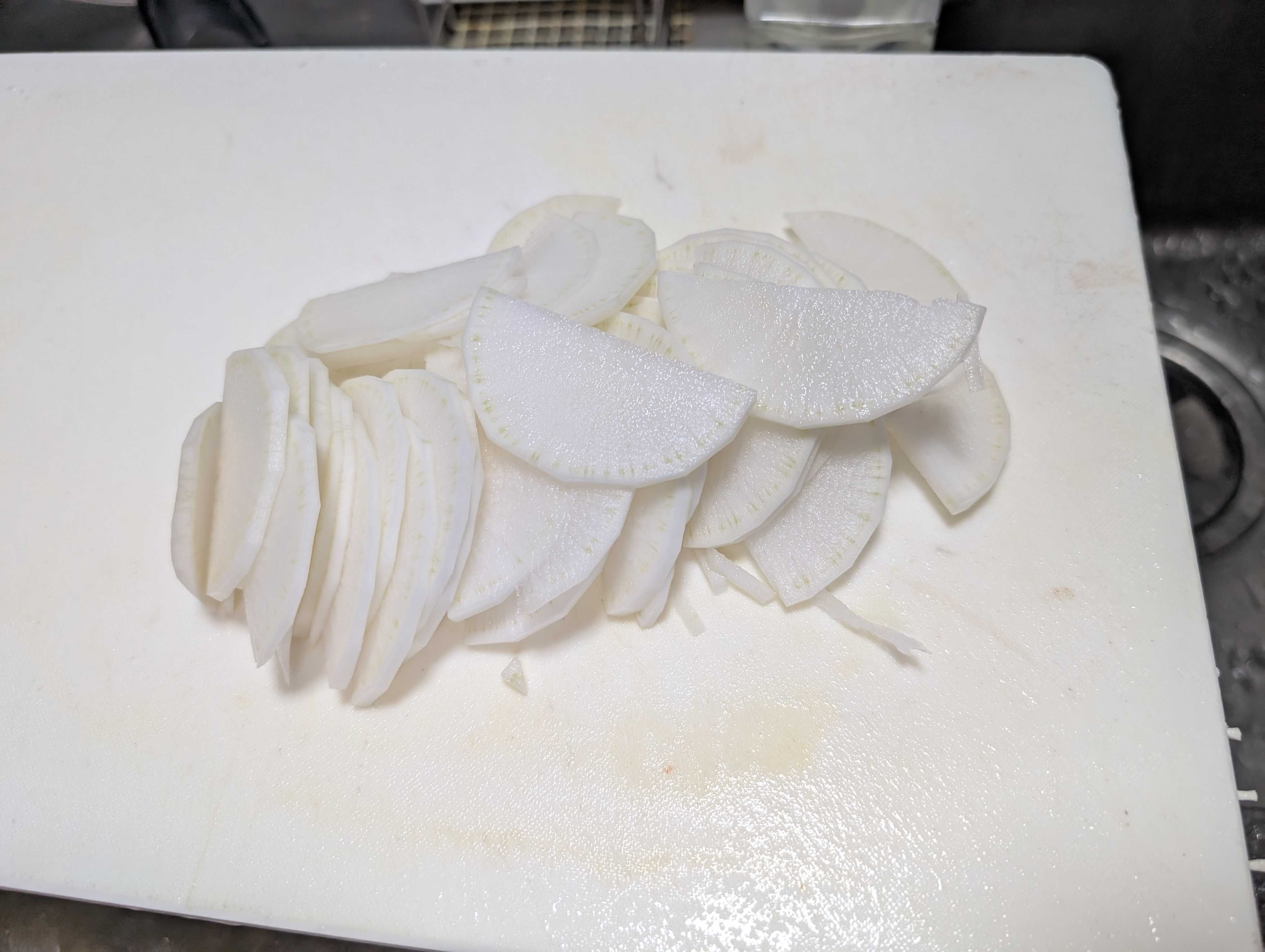 大根のカット次第ですが2〜3時間で漬かってきますよ