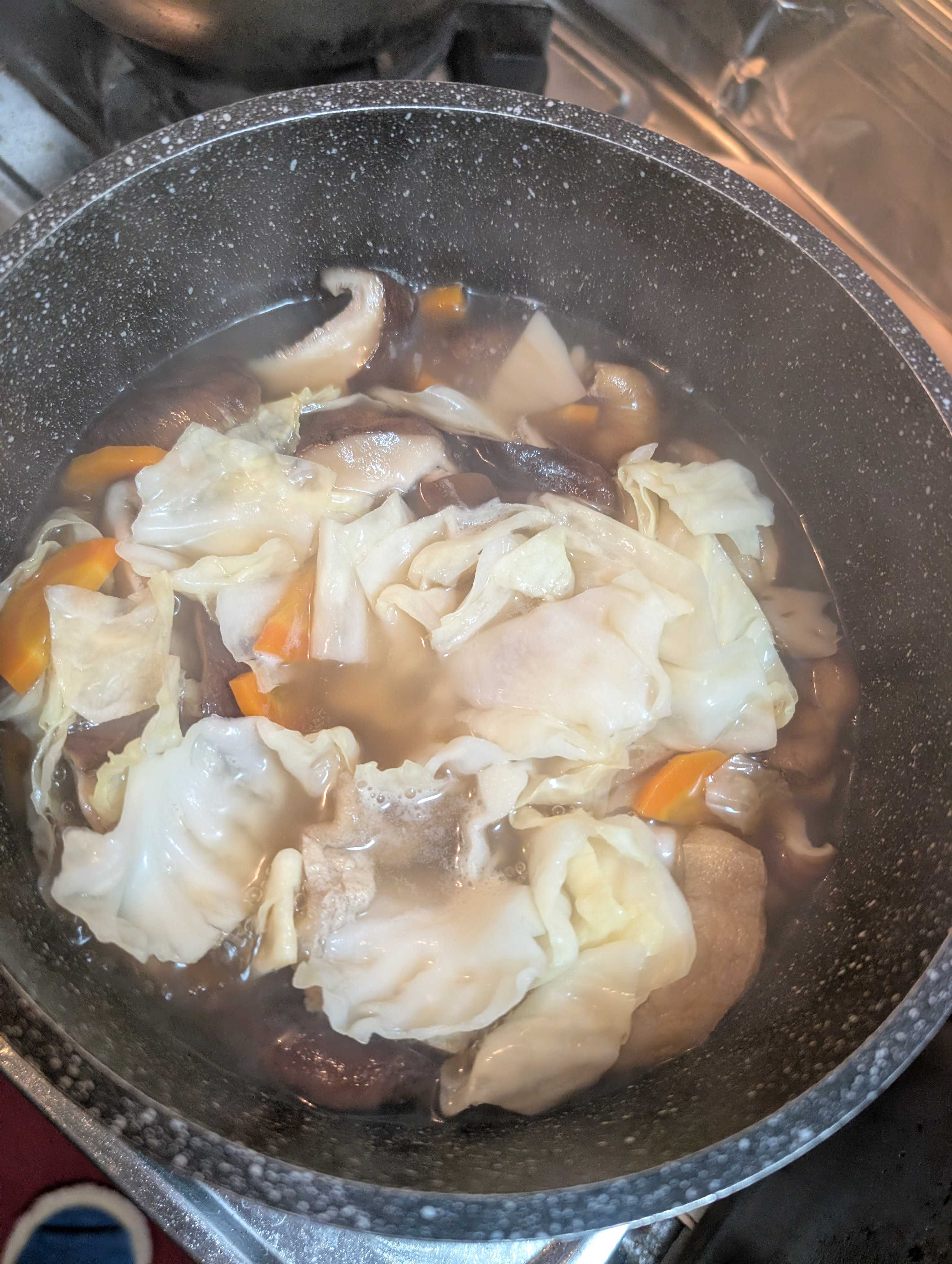 工程写真📷️少なすぎ😱ですが、椎茸スープ、酒、味醂、塩、薄口醤油でお上品な仕上げ