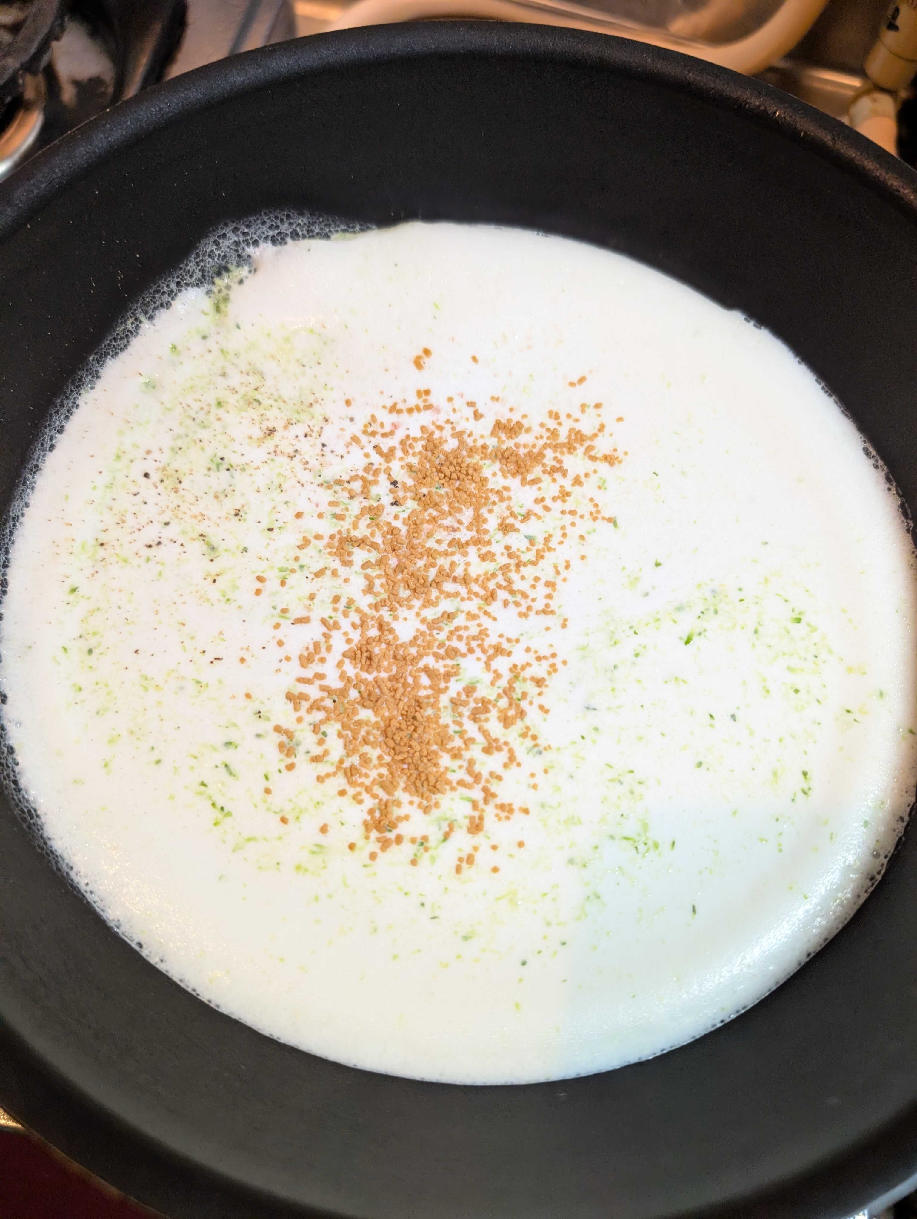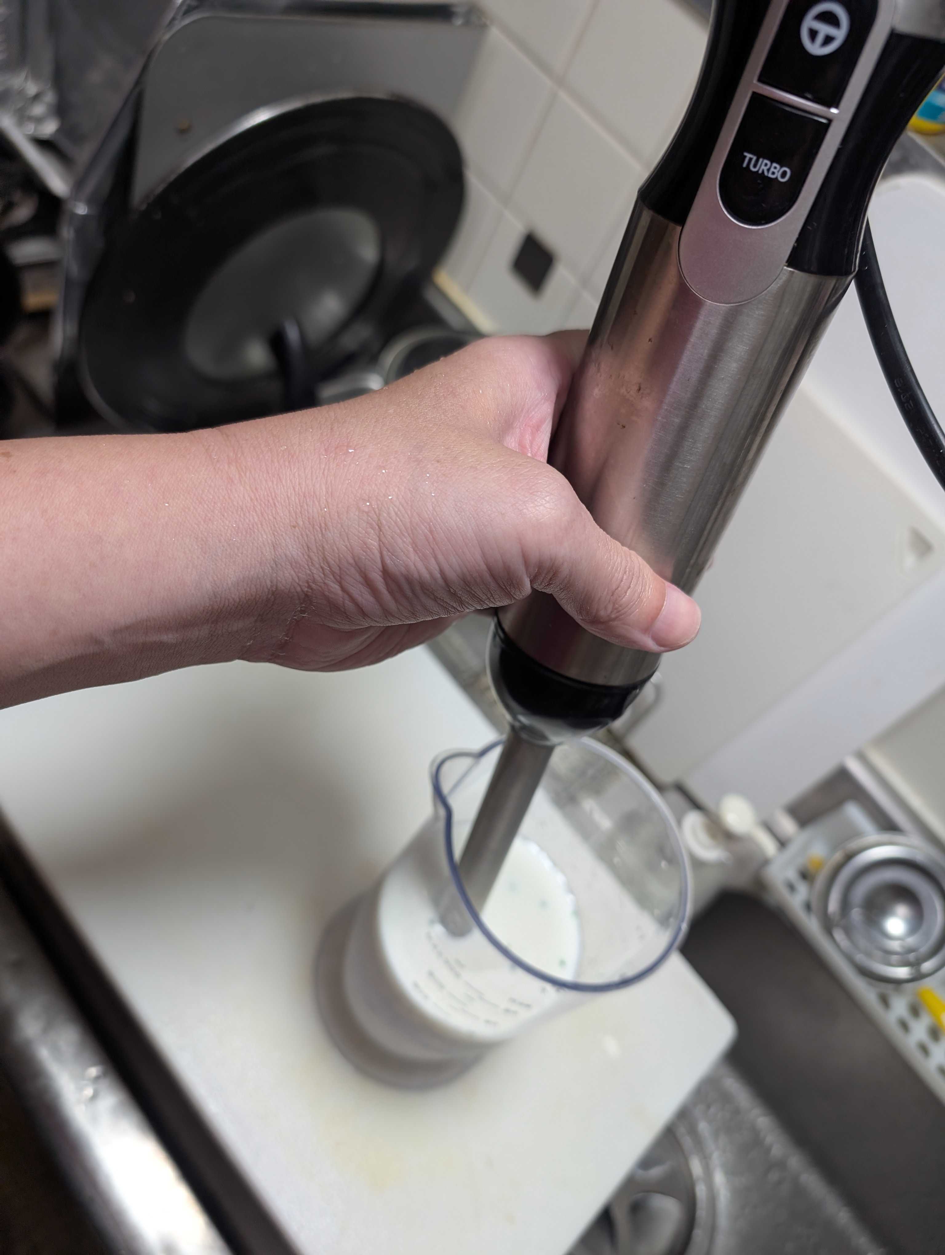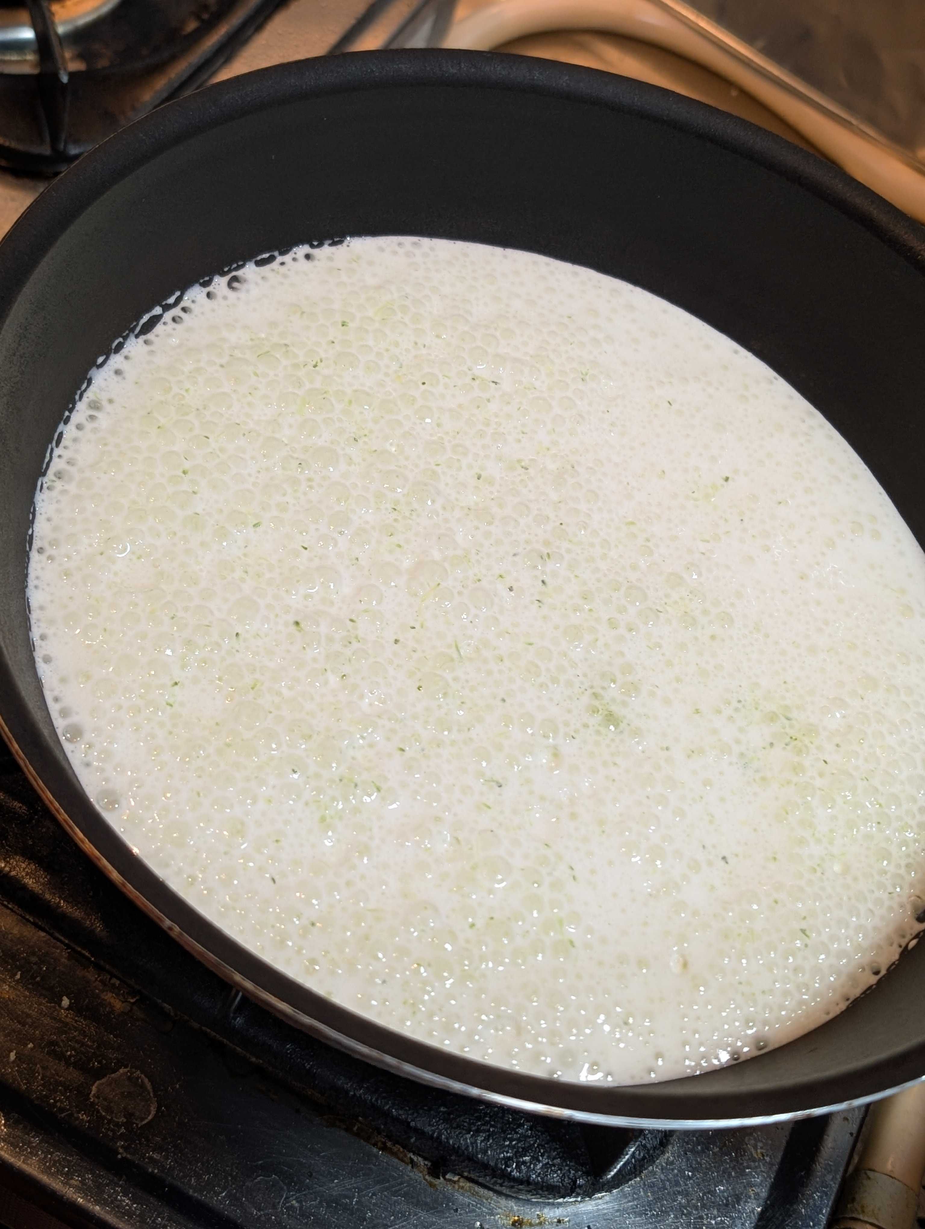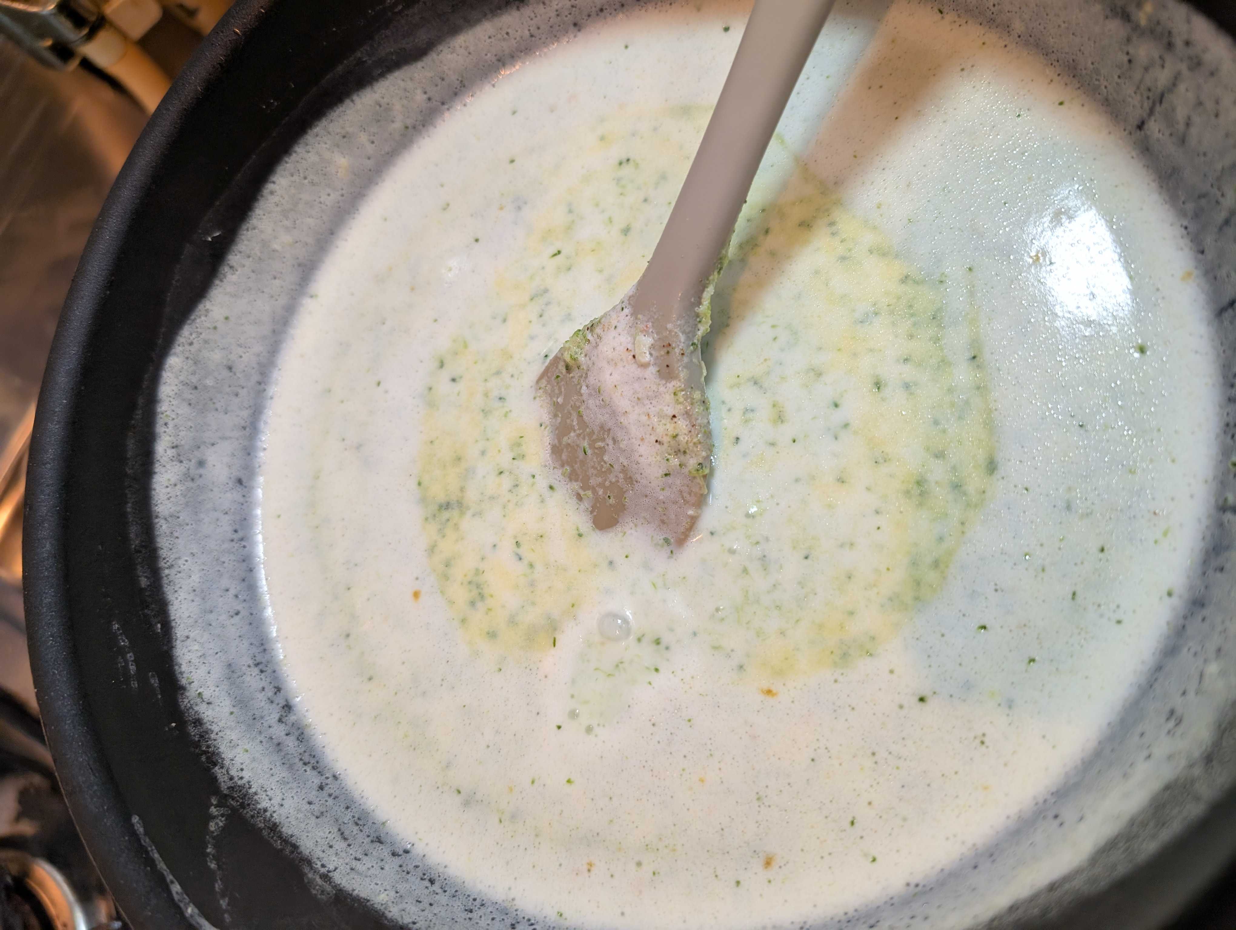 軽く茹でて有り物クッキングなので牛乳のみでブレンダーにかけて煮ていきます、一煮立てしたらご家庭によくある、コンソメと塩胡椒で味付け軽く煮て業務スーパーの激安ブロッコリー🥦でお手軽簡単ブロッコリー🥦ポタージュの完成です✨