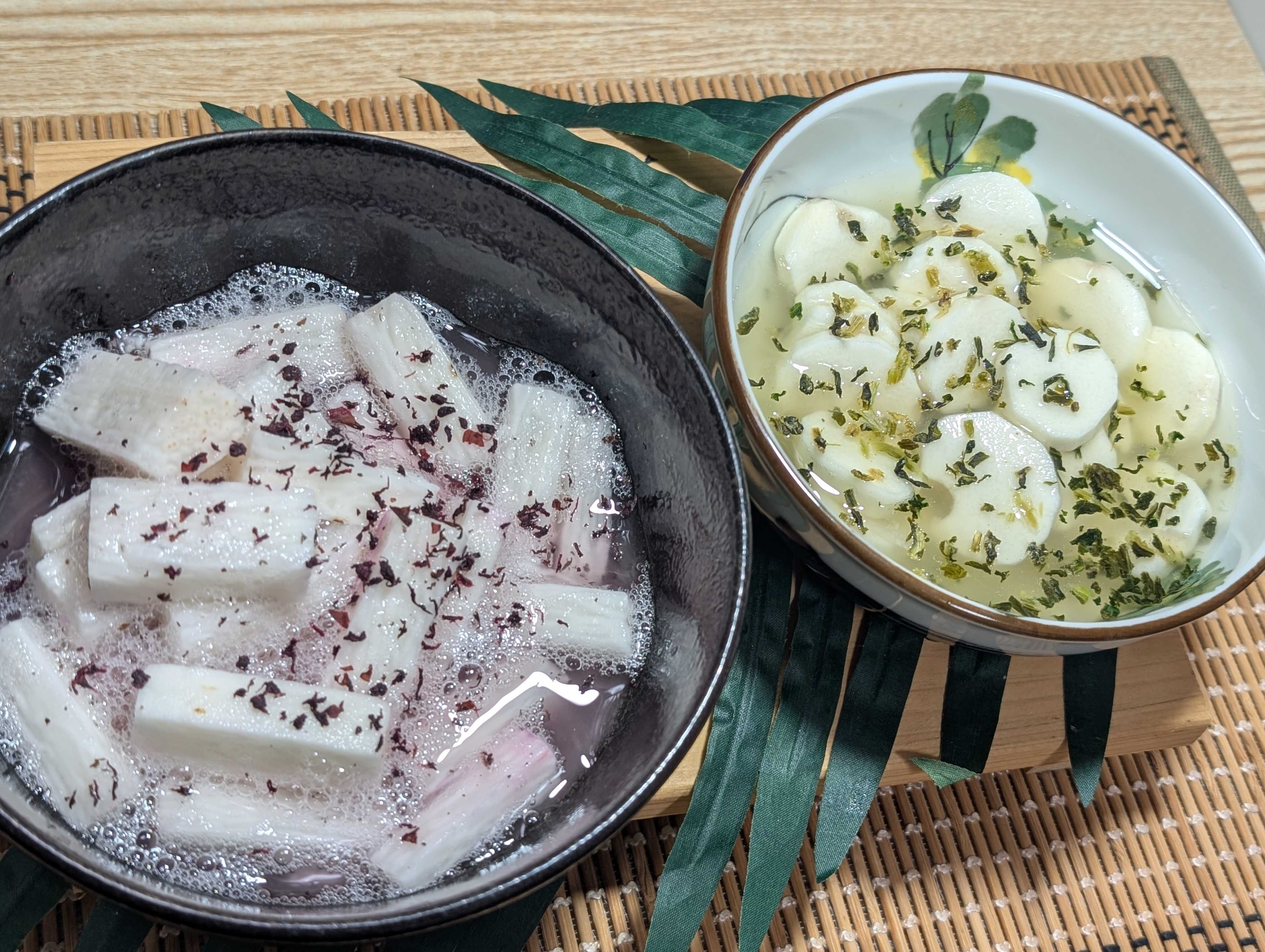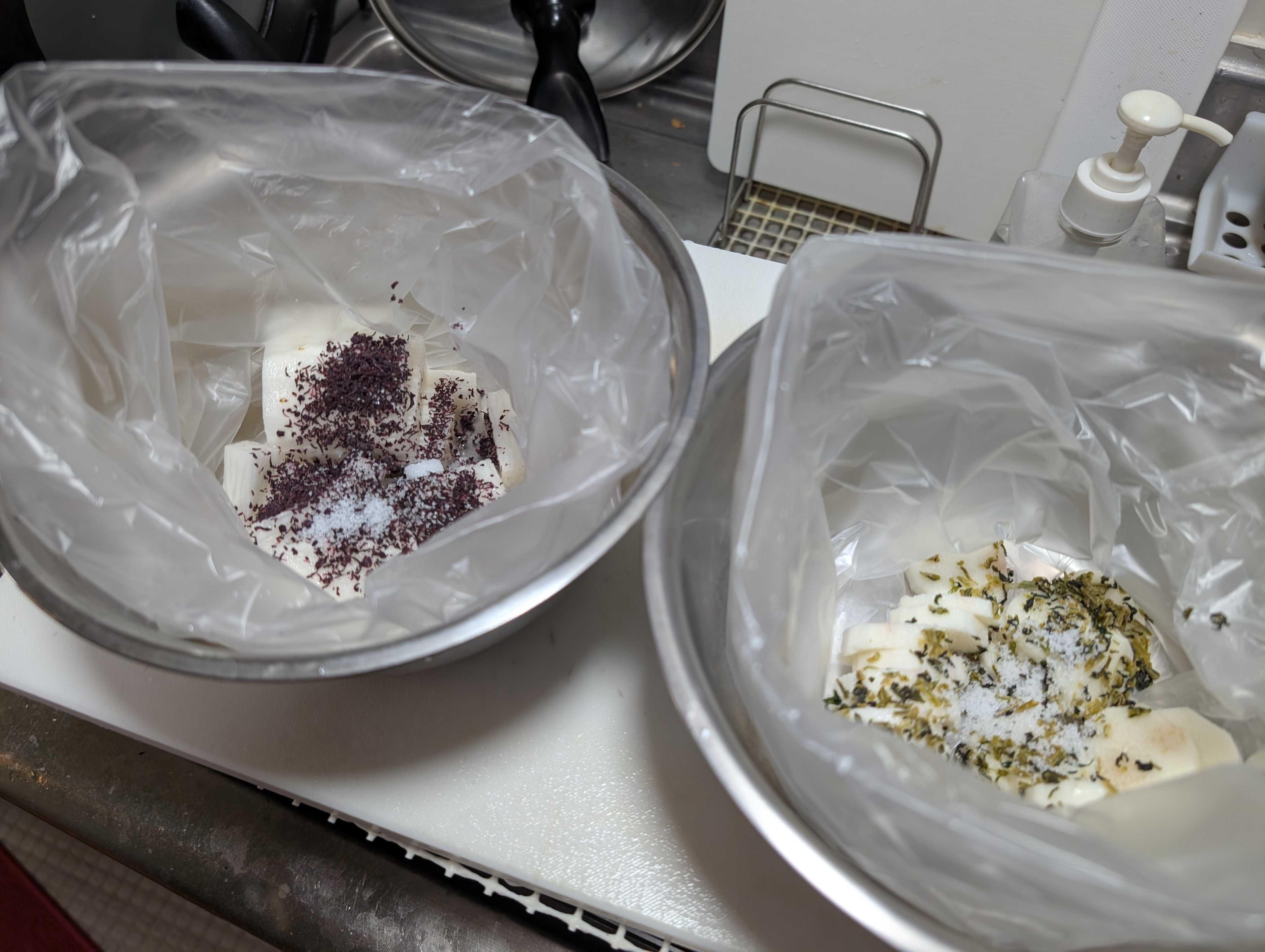 ビニール袋にカットした長芋と各ふりかけちょいとお塩→浸る手前位の水入れてシェイク