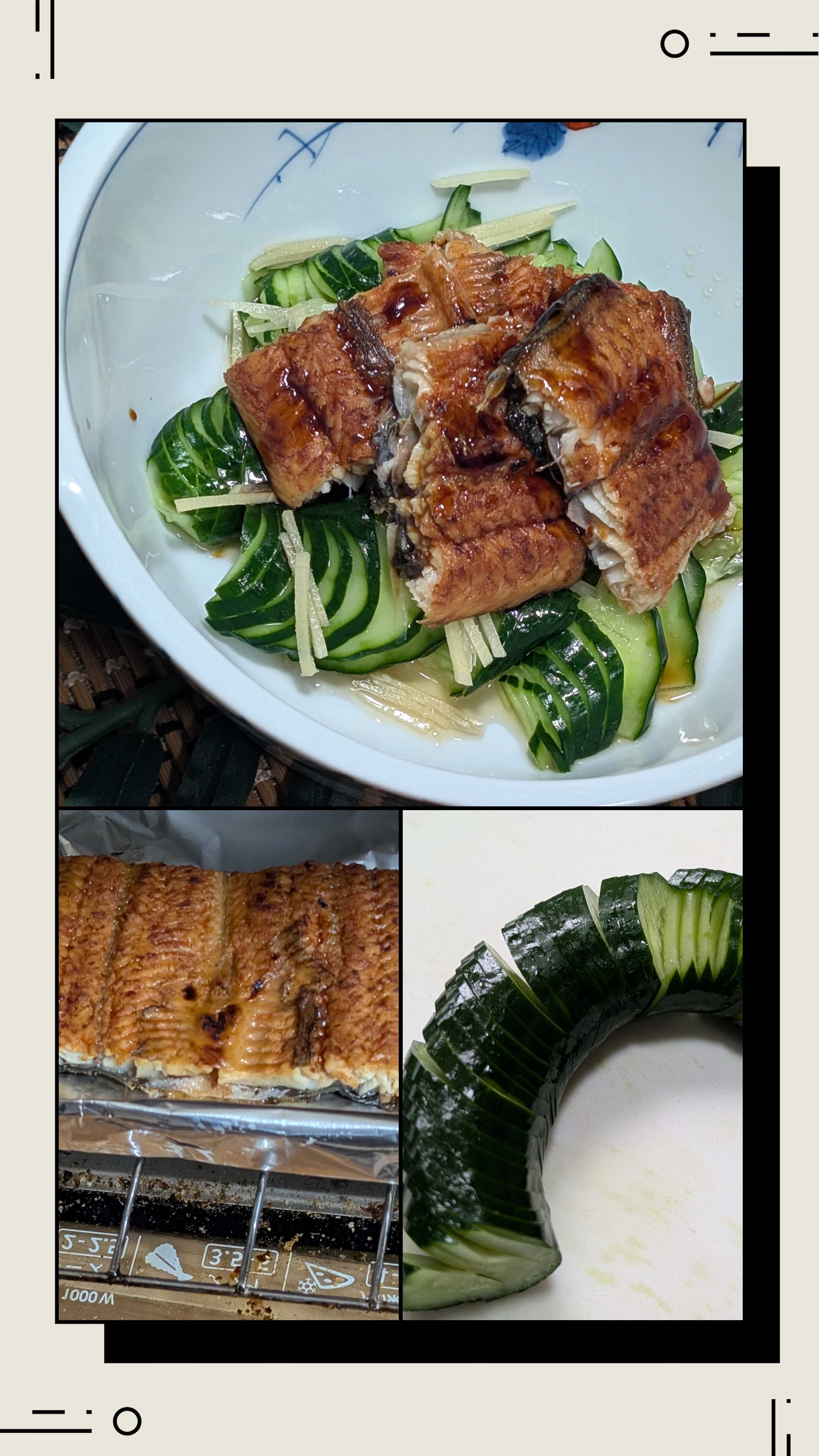 ご近所スーパーでうなぎがお安かったので数年ぶりにきゅうり🥒のジャバラ切ボロボロ😭うす塩水で数時間漬けますうなぎは熱湯に90秒程つけて温め&ふわっとします♥水分をよく切ってオープントースターで軽〜くパリッて感じで焼いてきゅうり🥒に生姜🫚をトッピング白だし、りんご酢、薄口醤油、レモン汁、水で三杯酢を作って馴染ませて予熱をとったうなぎを乗せて、ちょっとうなぎのタレをかけて今年の暑〜い夏🎐をサッパリでスタミナアップ😤お手軽簡単「うざく」の完成です✨