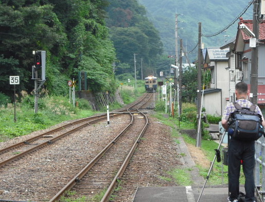 糸魚川市はフォッサマグナで有名、ジオパークに初めて認定されたと福井新聞一面トップで載っていた。糸魚川ジオパーク新潟の新聞は高校野球の記事一色、ジオパークはベタ記事、前夜祭で市のお偉いさんが残念がっていた。糸魚川市ではジオパークと日本海CCRを看板に街の活性化を図るそうだ。旧車が街の中心イベントになるのは・・・素晴らしい。タクシーはロンドンタクシーにし、ミニSLも走らせる予定らしい。土曜日は糸魚川到着が早すぎたので白馬までドライブ。白馬駅前のマクドでコーヒーを飲み、糸魚川に帰ろうと車を走らせると、踏み切りやトンネル出口に鉄チャンがいっぱい、溢れるほどいた。これは何かあると思い、途中の無人駅(根知駅)に行くと鉄チャン二人スタンバイしてた。「何が走るのですか?」 国鉄最後のキハ何とかが走るそうだ。待つこと5分、煙を吹きながらディーゼルカーが来た・・車体色も国鉄時代らしい。この電車、満員。鉄チャンのパワーは物凄い・・・乗客(全部鉄チャン))はこちらを見ていた正統派鉄チャン二人はOKとしてもにわかミーハー鉄道オヤジは浮いてるかも、カメラも安物だし・・・ただし、これが本命ではないそうだ。ジオパーク記念号が三両編成で1日に1回だけ走り、これが人気らしい。日本海CCR会場のフォッサマグナ・ミュージアムに展示してある日本最後の蒸気機関車。保存状態が良いのでレストアすれば動くかも。糸魚川には意外と旧い建物が少ない。目だったところでは市内の酒屋さんと、この車庫。しかし、まもなく歴史ある赤レンガ車庫は取り壊されるそうだ。これを壊すとは・・・・旧車とSLで活性化するなら、この車庫は絶対に必要だと思う。日本海CCR審査委員、ネコ・パブリッシング滝澤さんブログ。