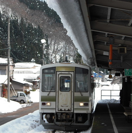 岐阜県までドライブに行った。ルートは油坂峠から白鳥、下呂、土岐、岐阜。JR越美北線終点、九頭竜湖駅。この前は何度も通るが電車は見たことなかった。1日数本の電車では会える確立は低いが、ちょうど電車が入ってきた。お客は5名(意外と多い)、18キップ(たぶん)の鉄チャンもいた。福井県の除雪は完璧、道路状態も良くスイスイ走る。岐阜県に入ったとたん・・・・寒波が過ぎて2日も経ってるのに除雪してない。路面凸凹で動けなる車もでて大渋滞。この道は白川郷や飛騨高山に行く重要な道路158号線。上の道路は高速道。白鳥から高山方面の状況。岐阜県の平野部で雪は降らないためか、山間部での除雪は・・・・前日、NHK夜の7時半から「ローカル鉄道の旅」長良川鉄道が放送された。良い番組で面白かった。あれを見て白鳥に来ると・・雪でえらい目にあう。クリスマス、キャンドルサービスの下呂温泉。有馬・草津・下呂の日本三大名湯で泉質が一番良いのは下呂、さすが日本一。