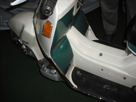 昨年の金沢クラシックカー・ミーティングで日本自動車博物館に入場した。 地元(北陸)なので何回も見学してるが、それまでは隅っこに展示してあったアペが、売店の陳列台になってた。アペも大出世したもんだ、これほど目立つ場所に展示とは・・・実際、子供たちには大うけで、乗ろうとするのでドアをロックしたそうだ。ところが最近、アペは元の場所に戻ったそうだ。残念、模様替えかな~たぶん、チビッ子が下にもぐりこんだりして危ないのかも?この場所は目立って、同じオーナーとしては喜んだのに。元の三輪車展示コーナーに戻った。説明パネルも一新して展示中。説明パネルはブログなどの書き込みを取り入れたそうだ。展示アペは初期輸入型・丸型テールライトに車検用反射板。
