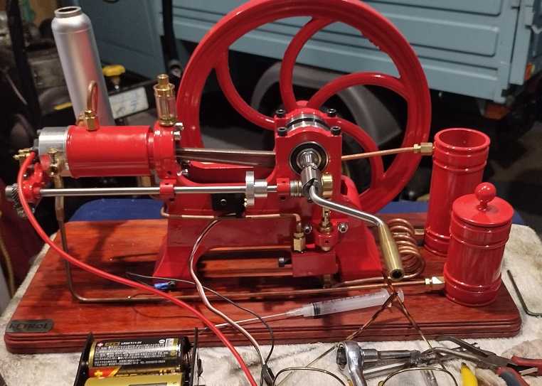 若き発動機愛好家の羽鳥士さんブログ見てたら模型蒸気エンジン購入した。小型ながらガバナーに警笛まで付いてる、お座敷エンジンと呼ぶ物で室内で楽しめる。実は発動機運転会に行くと小型エンジン数台出てくるが自作、こんな技術無いので当時物(イギリス)お座敷エンジンを見ると欲しいが、売ってくれとも言えないし見るからに高価そう。ほぼ同じような石油発動機載ってたので購入、排気量17cc、フライホイール径27cm、重さ5kgほど有る、この数日間試行錯誤で回るようになった、長時間運転にスピードコントロール(低速)も出来るようになった。工具は付いてない、8mmのプラグレンチと極細6角レンチセット必要、後は通常の工具でOK。ハッキリ言って石油発動機やってない方にはお勧めしない商品。全てが小さく繊細、逆止弁のベアリングはゴマより小さい、しかも固着してるマフラーのデザイン悪と思ったが排気ガスはドーナツリング、これは優れもの。点火時機調整にタペット調整、なかなか楽しい、燃料はガソリン、静かなエンジンで正にお座敷石油発動機。YouTube動画にアップした。