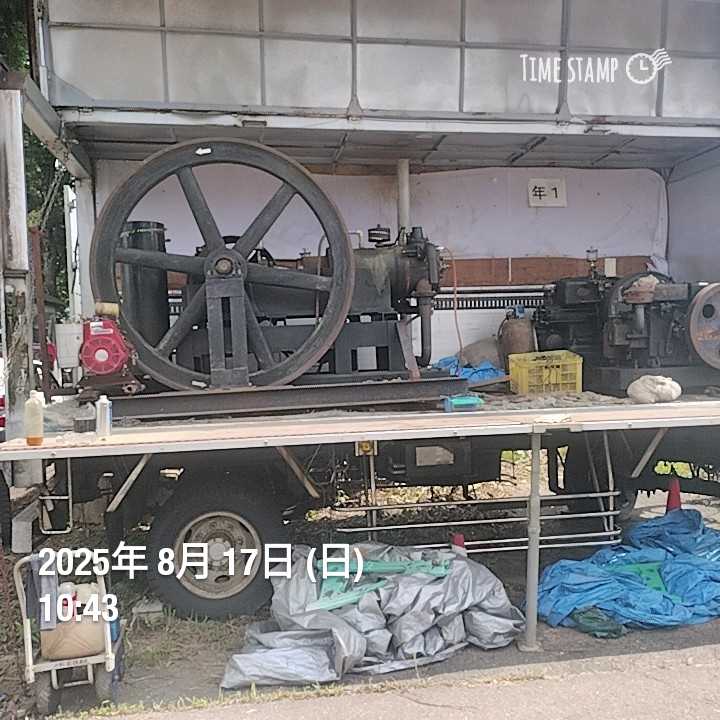 明日、福井県大野市道の駅「荒島の郷」で恒例のお盆発動機運転会開催。158号線通れます、土曜日16日準備かねて夕方から、17日(日曜日は)朝からやってます、参加費無料。県内中心の小規模な運転会だけど少しは増えるかも?今年の岡山県鴨方運転会に浦井さん参加したら福井県から若手2名参加したそうだ、福井県も僅かながら愛好者増えそう、頼もしい。昨年の会場は道の駅裏だった、当日36℃以上の猛暑予報なので200mほど会場変更、こちらは日陰有る。写真正面の道の駅裏手道の真っ直ぐ行くと会場有り、会場狭い、駐車場有り。道の駅裏手に旗立ってます、左手森の下。日本最大の石油発動機アントンシュリューター回す(回ったら?)